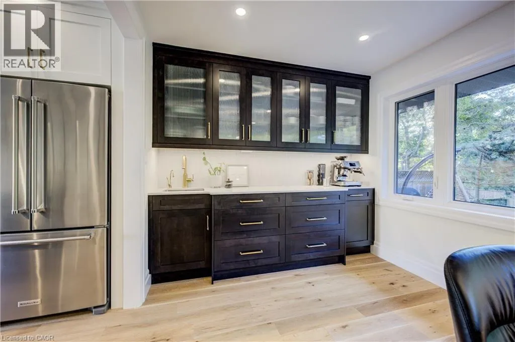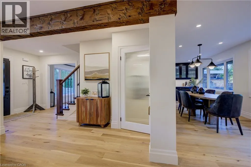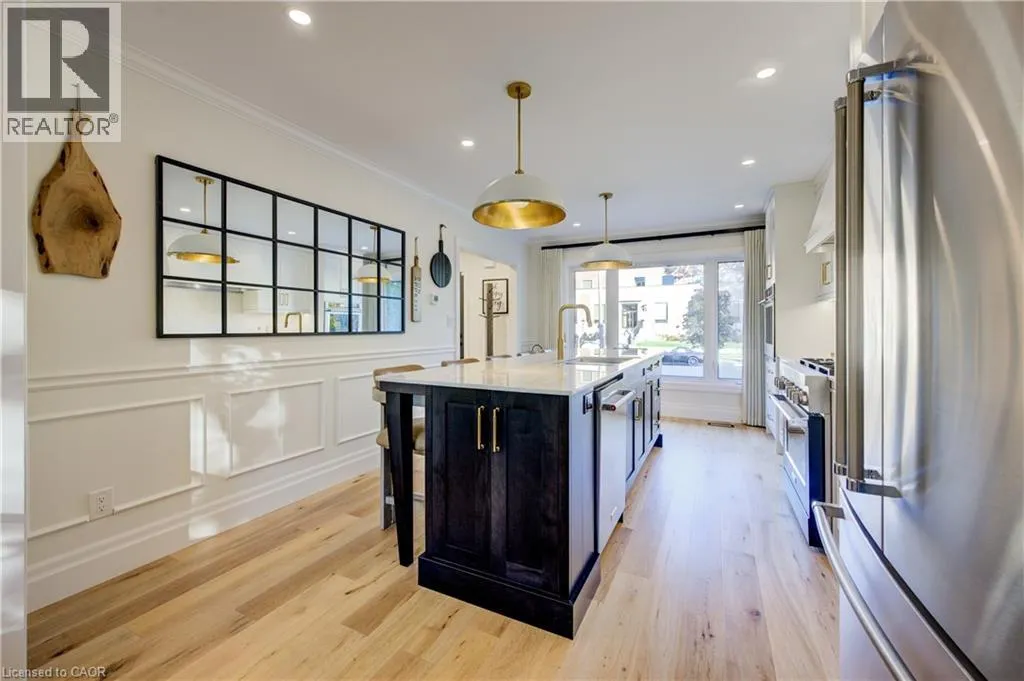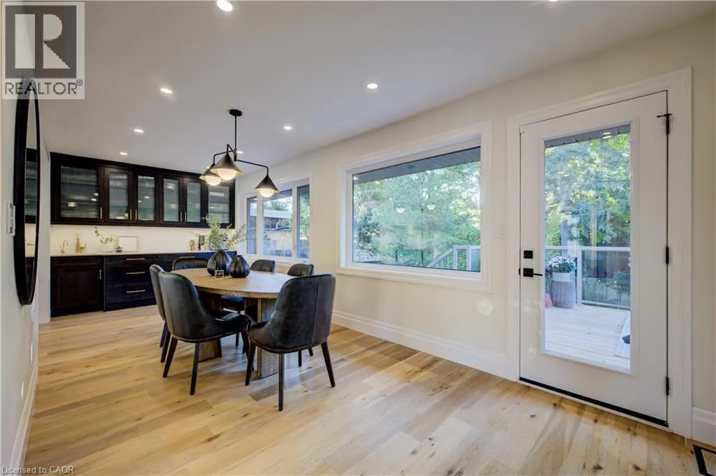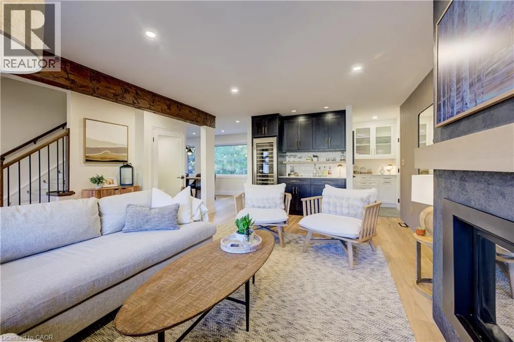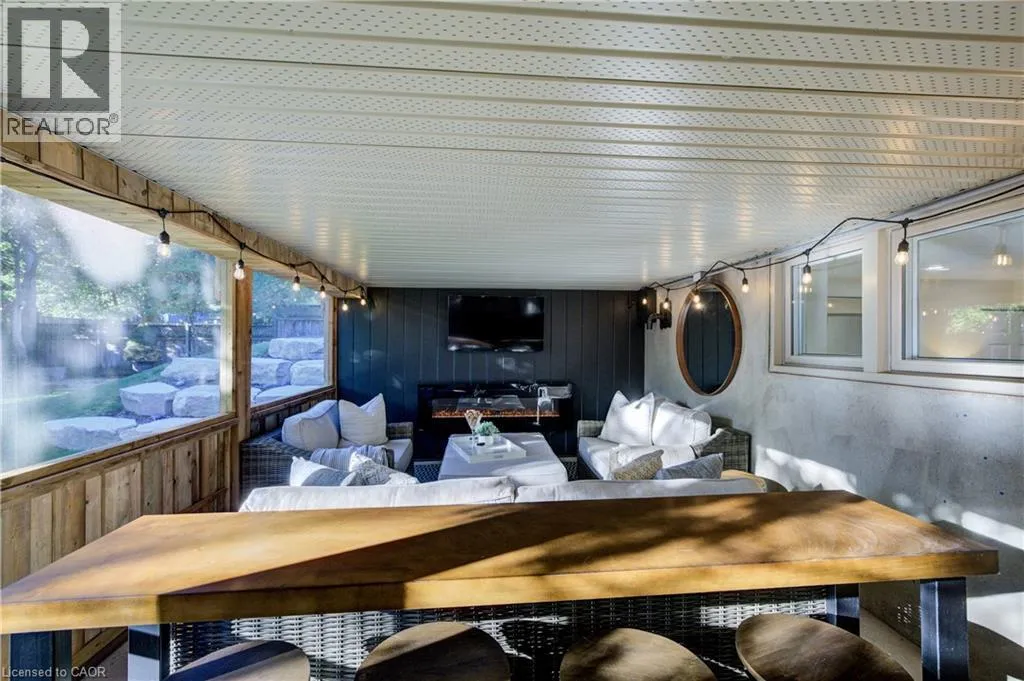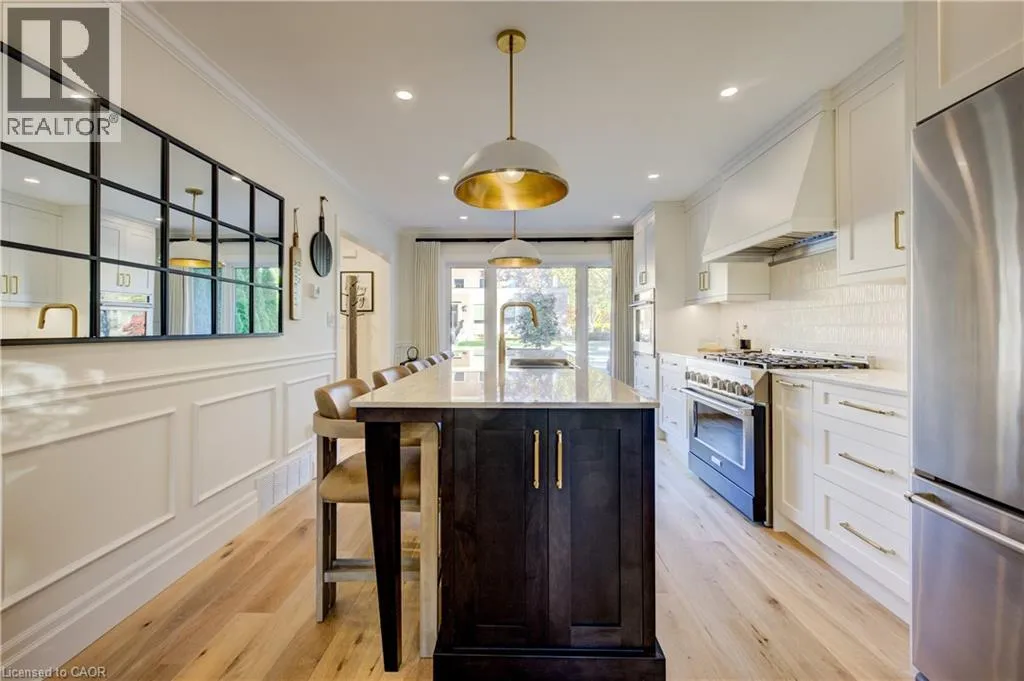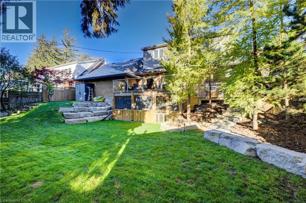 Westmount and John St Welcome to 191 John St W, located in the highly sought-after Westmount neighborhood of Waterloo! This is the one you don't want to miss! Walk to Westmount Golf Course and uptown Waterloo. This beautifully updated and meticulously maintained 3-bedroom, 3-bathroom home combines modern elegance with exceptional comfort. Step inside to discover hardwood floors and a warm, inviting main-floor living area featuring a gas fireplaceâperfect for cozy nights in. The custom kitchen by Caseyâs Kitchens is a true showpiece, complete with a large island with generous storage, gas stove, and built-in oven with air fryer function. The open-concept layout flows effortlessly into the large dining area and main-floor bar- perfect for entertaining. A convenient 2-piece bathroom completes the main level. Upstairs, youâll find three bedrooms and a 4-piece bathroom, offering both style and comfort. The walkin attic space has awesome storage. The finished walkout basement adds even more living and hang out space in the recroom, also featuring a beautiful and modern 3 piece bathroom (2025) with heated floors and a laundry area. There is great storage space in the basement. Step outside to your private retreat â an enclosed outdoor Muskoka room with a fireplace, quartz counters on the bar and fully screened in perfect for relaxing or entertaining with no bugs. Enjoy a large deck, fully fenced backyard, and two storage sheds. The great sized landscaped yard could easily fit a swimming pool if desired. With a double-car garage (with loft storage) and dbl wide driveway you have parking for up to eight vehicles. Major exterior updates completed in 2025 include new siding, soffit, gutters, stone façade, eavestroughs, and roof, this home ensures peace of mind for years to come. Need more space... renderings are available for possible primary suite/bonus room over the garage. Nothing to do but move in and enjoy! (id:27476)