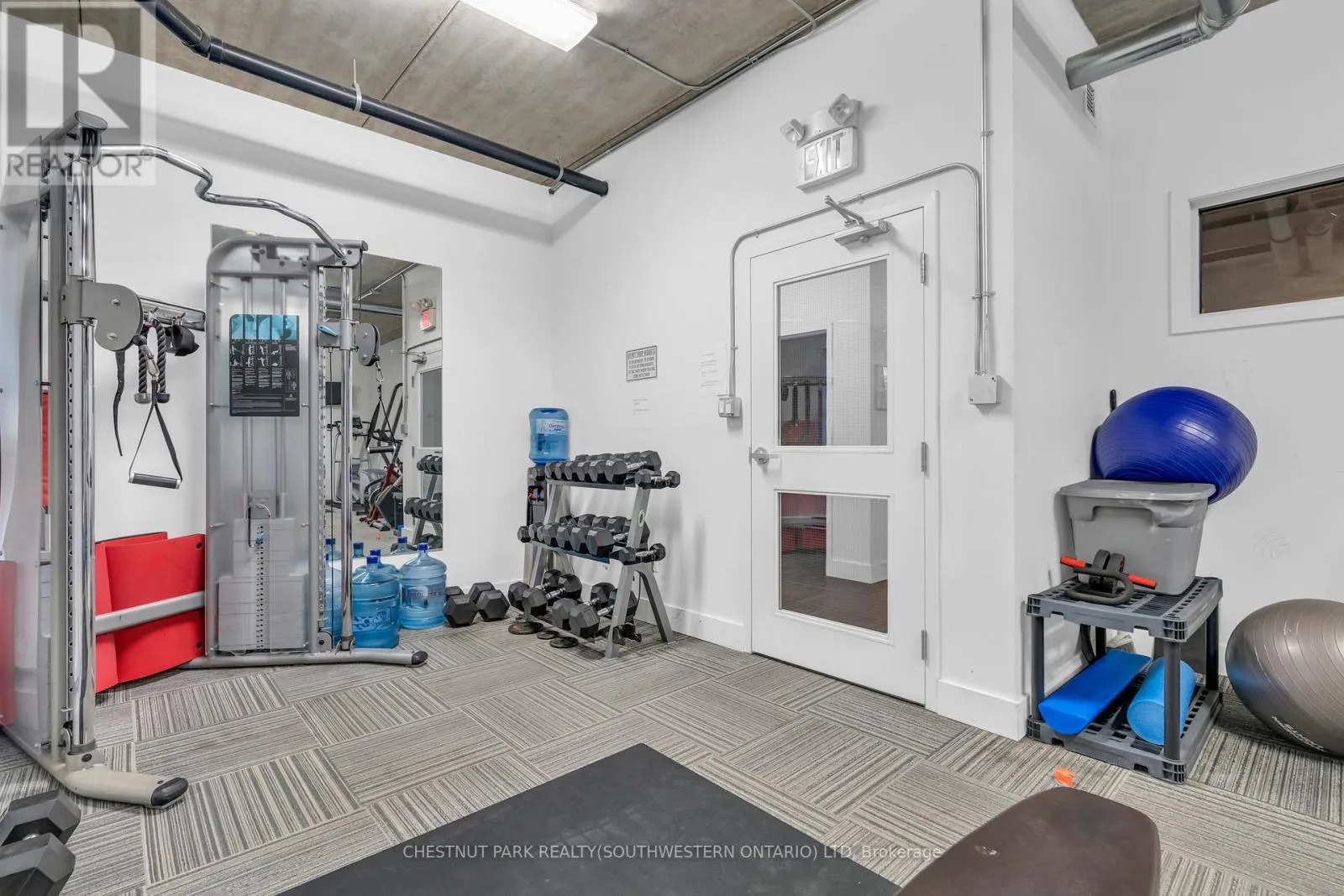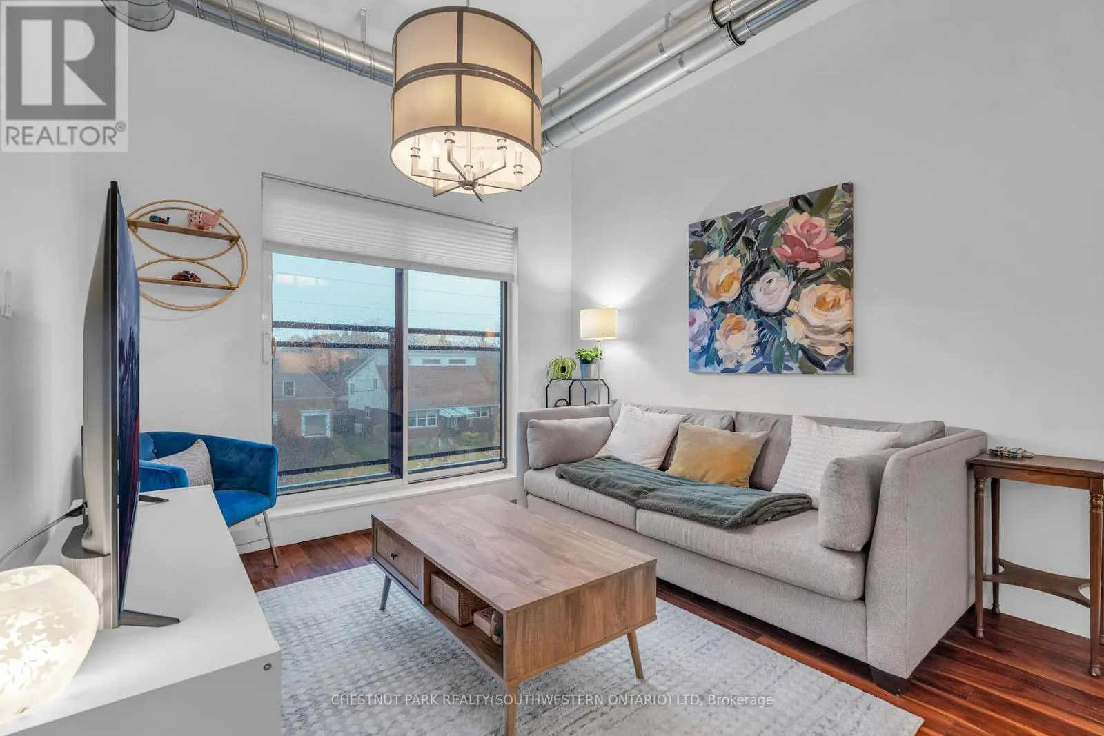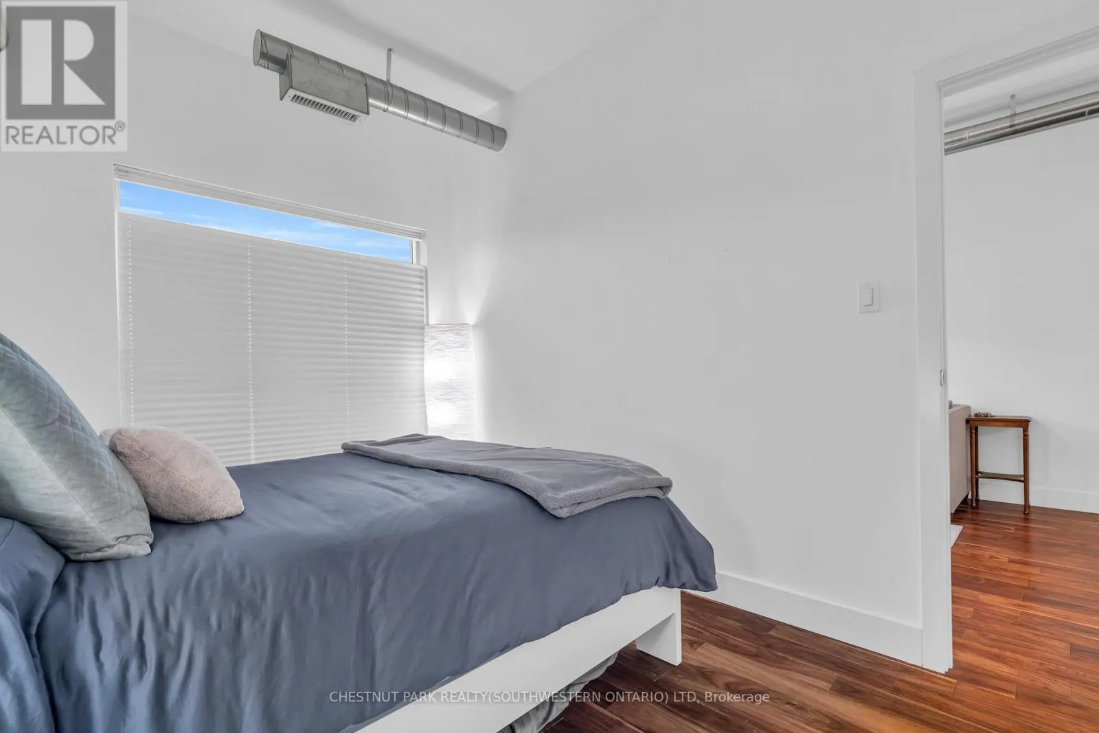 Cross Streets: Erb ST E and Moore St. ** Directions: Between Erb St E and Allen St E. Discover true urban sophistication in this rare 1 bedroom PLUS DEN at the coveted Silver Thread Lofts - a boutique building with only 15 residences. This exceptional suite showcases striking design details, including exposed ductwork, custom lighting, hand-scraped hardwood floors, granite countertops, and premium finishes throughout. The open-concept layout features a sleek kitchen with professional-grade appliances and a gas range, a spacious living area with a Juliette balcony, and a large bedroom with a walk in closet and cheater-ensuite access. Enjoy added convenience with in-suite laundry, window coverings, custom sliding doors, and the bonus of TWO PARKING SPACES! (one covered, one surface). Building amenities include a one-of-a-kind fitness studio with a rock-climbing wall, a meeting room, outdoor patio, and a stylish lobby. Unbeatable location - steps to Uptown Waterloo's best restaurants, shops, and nightlife, as well as the Spur Line Trail, Waterloo Park, and both universities. Easy access to the expressway and all essential amenities. An exclusive opportunity that truly won't last long! (id:27476)