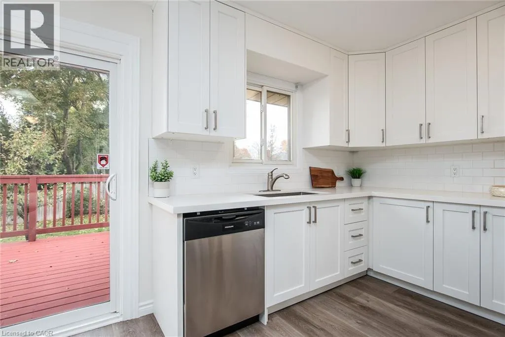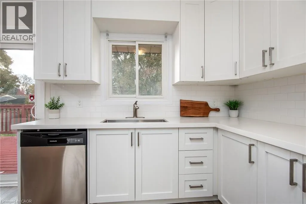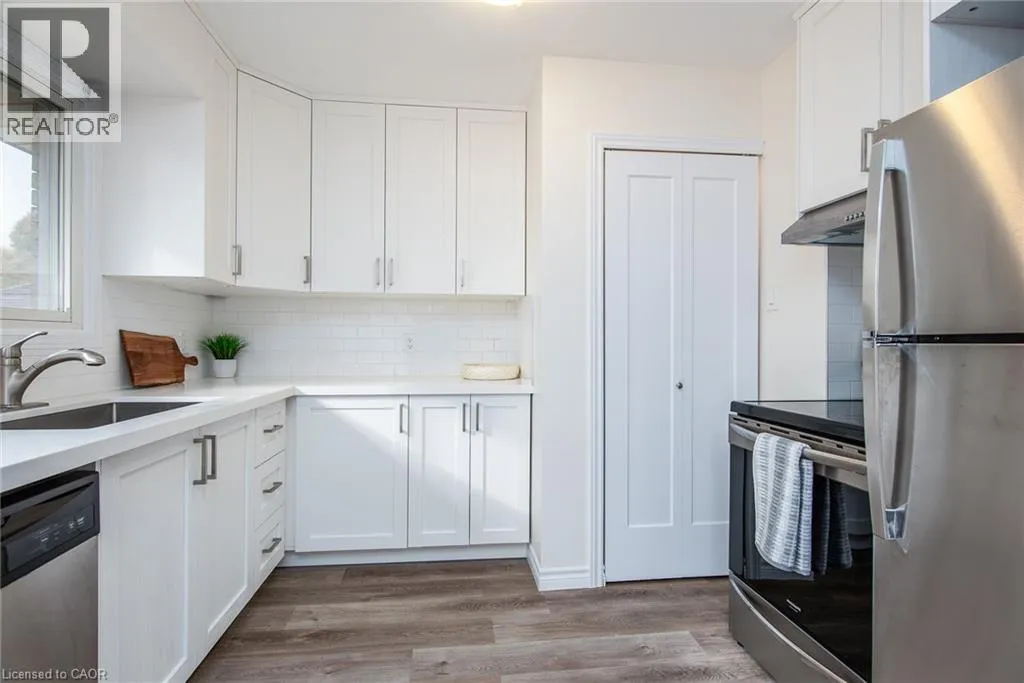 From Erb St., turn right on to Ellis Cres. Legal Duplex on Large R4-Zoned Lot in Prime Waterloo Location! Beautifully updated bungalow nestled in a quiet, family-friendly neighbourhood near Uptown Waterloo. Set on a spacious R4-zoned lot, this home offers future development potential and strong income opportunity. Thoughtfully converted into a fully legal duplex, itâs ideal for investors or multi-generational families. The bright main floor features 3 generous bedrooms, a newly renovated kitchen with stainless-steel appliances, and an open-concept living/dining area filled with natural light from the large bay window. The lower level showcases a new modern 2-bedroom apartment with a separate entrance, stylish kitchen, full bath, and in-suite laundry. Each unit enjoys its own laundry, quality finishes, and private living spaces. The large deck overlooks a fenced backyard surrounded by mature greenery â perfect for relaxing or entertaining. Conveniently located minutes from Uptown Waterloo, universities, shopping, transit, and parks. A turn-key property with zoning flexibility and long-term value. (id:27476)