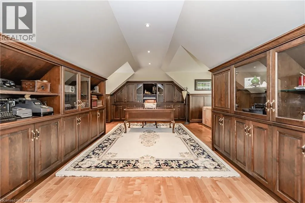 Cedarcliffe Drive Discover refined living in the prestigious River Oak Estatesâwhere timeless design meets an extraordinary natural backdrop. Set on a lush half-acre lot backing directly onto the Grand River, this 6,000+ sq. ft. residence captures breathtaking views of the water, pond, and Grand River Trail. Thoughtful landscaping enhances its privacy and curb appeal, creating a truly peaceful setting. Inside, sophistication unfolds across three levels, with 5+2 bedrooms and 6 bathrooms offering comfort and flexibility for family and guests. The grand foyer opens to an elegant staircase and sun-filled formal living and dining roomsâideal for entertaining large gatherings. The kitchen, complete with an oversized island and casual dining space, extends to a spacious deck overlooking the river. A stone wood-burning fireplace anchors the family room, where floor-to-ceiling windows frame the scenic outdoors. The main floor suite is a private retreat featuring a gas fireplace, walk-in closet, and balcony access. Its luxurious ensuite includes dual vanities, a soaker tub surrounded by windows, and a glass walk-in shower. Upstairs, youâll find four additional bedrooms, a home office with custom built-ins, and a dedicated media room. The lower level offers two more bedrooms, a 3-piece bath, wet bar, games area, and walkout access to a stone patio and landscaped gardensâperfect for indoor-outdoor living. Blending comfort, elegance, and a rare connection to nature, this River Oak Estates home delivers a lifestyle as remarkable as its setting. (id:27476)