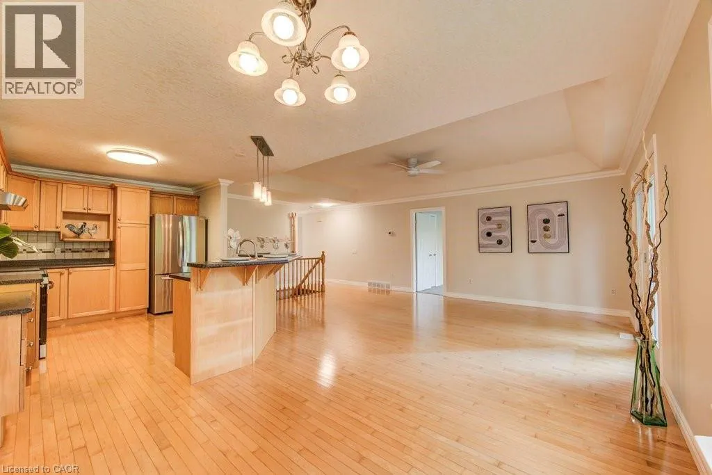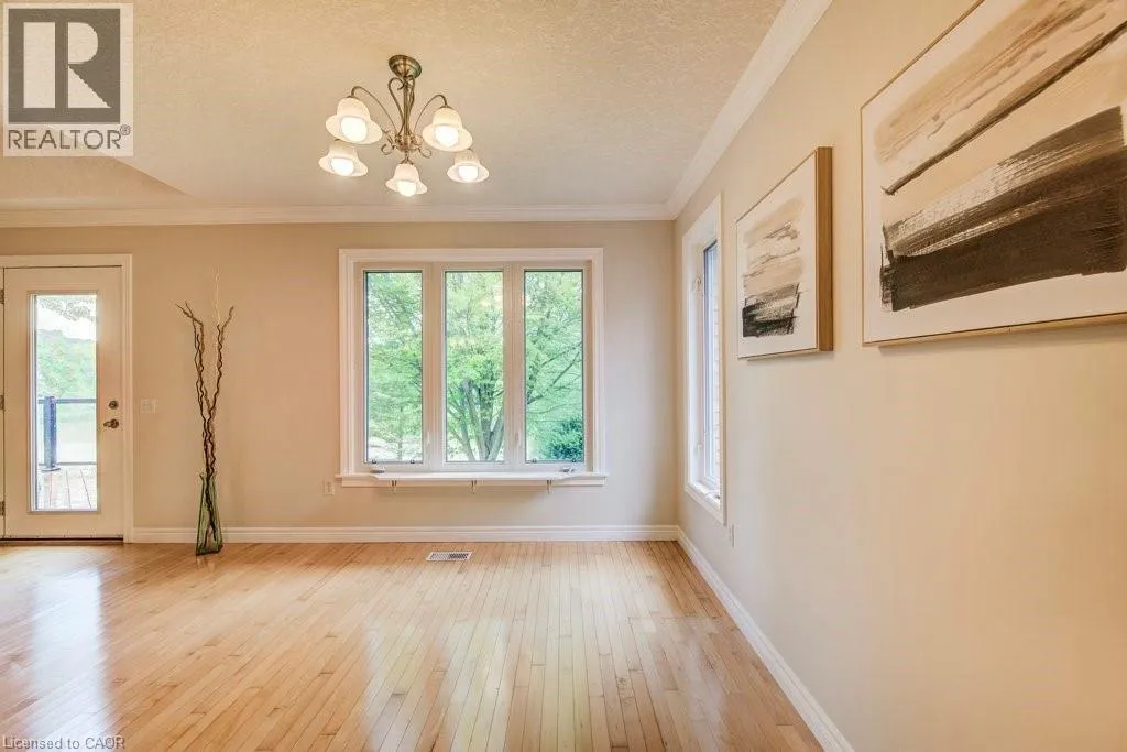 Columbia to Salzburg Drive The Holy Grail of Retirement Bungalows with MILLION DOLLAR VIEW! Modern-built, freehold (no condo fees!), and backing onto the serene Rosewood Pond in Waterlooâs coveted Clair Hills community â this rare walkout bungalow blends elegance, comfort, and true accessibility in one perfect package. Freshly painted and updated with brand-new carpet, itâs completely move-in ready. Featuring 2+1 bedrooms, 3 bathrooms, and nearly 2,000 sq. ft. of beautifully finished living space, this home offers both style and ease. The open-concept main floor showcases rich maple hardwood and ceramic tile, flowing naturally to a raised deck with glass railings â where youâll enjoy the definition of a million-dollar view. The spacious primary suite overlooks the water and includes a private 4-piece en-suite, while the second bedroom with built-in Murphy bed easily converts to a guest room or home office. The bright walkout basement features oversized windows, a cozy gas fireplace, and direct yard access â perfect for entertaining or quiet mornings by the water. A third bedroom with en-suite privileges and large storage area complete the lower level. Built with accessibility in mind, this home includes widened doorways, lowered switches, and modern mechanical systems. Add a double garage, quiet low-traffic street, and peaceful pond-side setting, and you have effortless living at its finest. Homes offering this combination of location, quality, and accessibility are seldom available. This is the perfect combination for those looking to downsize. Donât miss your chance to call Rosewood Estates home! (id:27476)