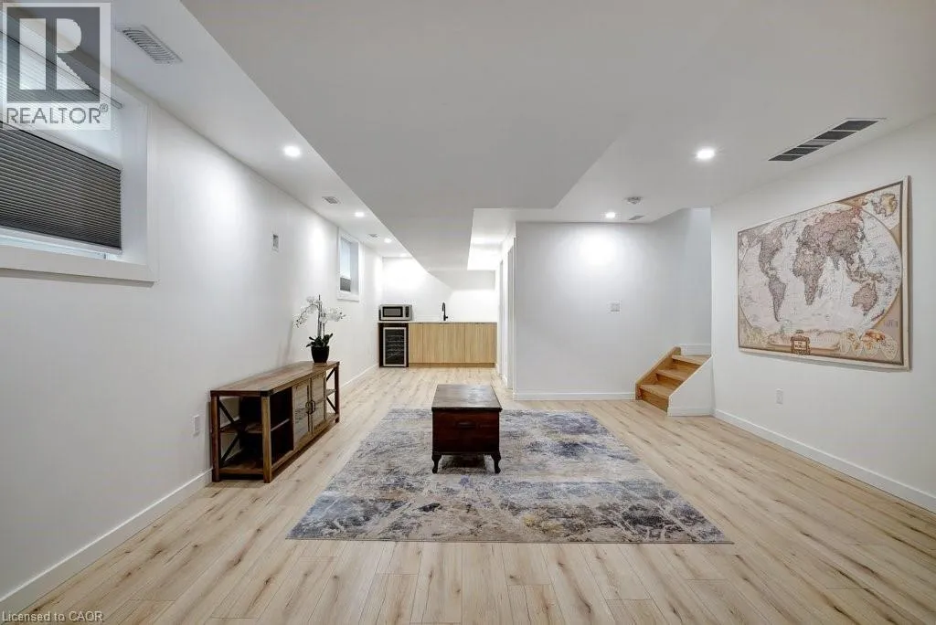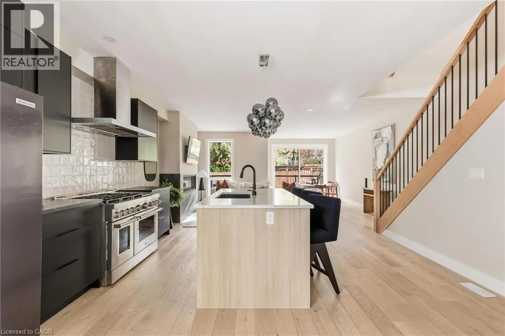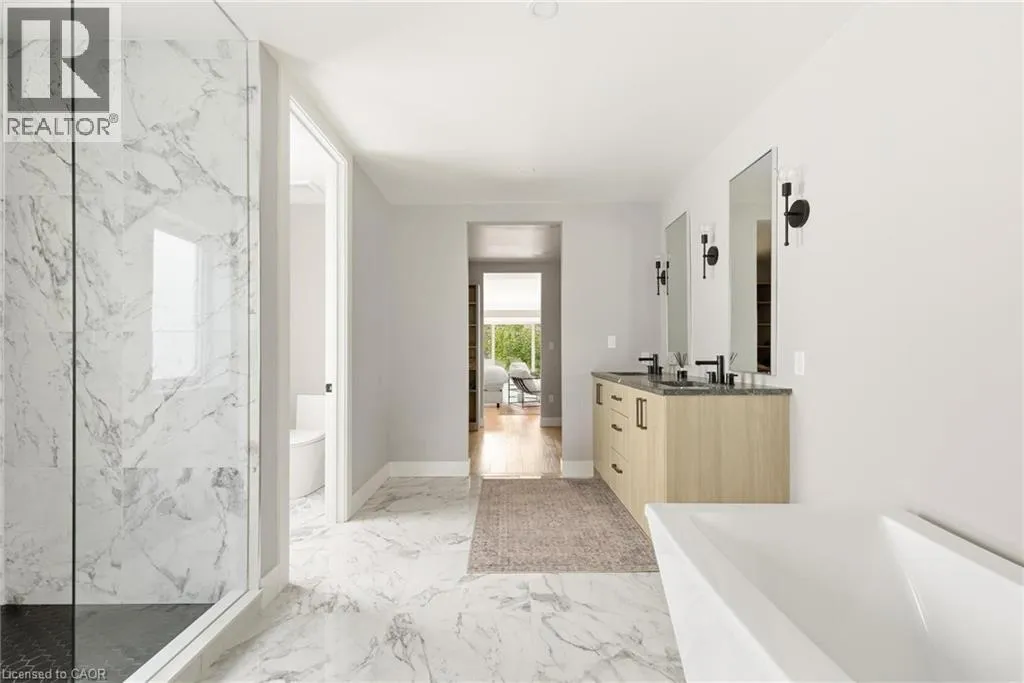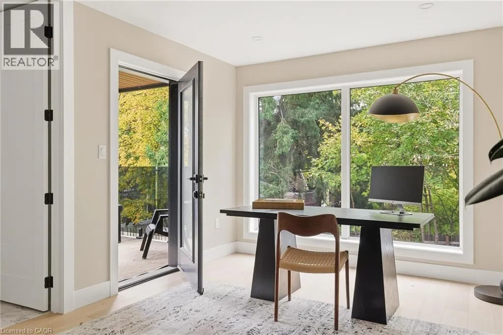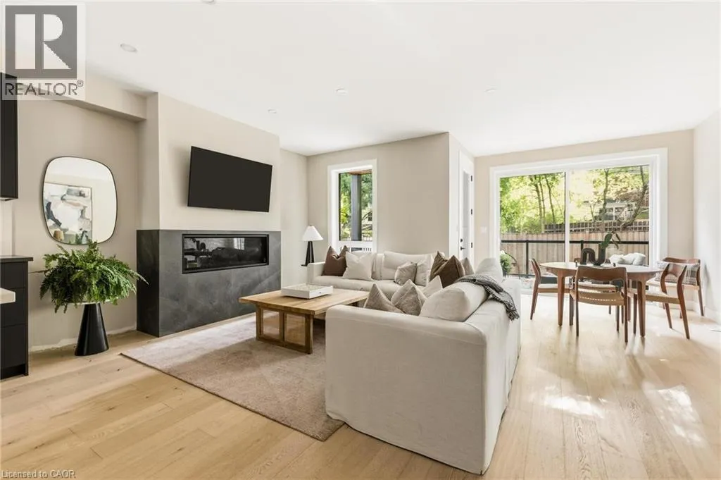 Park Street to William St. W. Welcome to 95 Williams Street, Waterloo! Built in 2022, this modern and spacious home offers over 4,500 sq. ft. of thoughtfully designed living space with 5 bedrooms and 5 bathrooms. Perfectly situated in the vibrant heart of Uptown Waterloo, youâll enjoy easy access to top-rated schools, parks, trails, restaurants, shops, and public transit. Step inside to an inviting open-concept main floor with 9â ceilings, pot lights, and large windows that fill the space with natural light. The chef-inspired kitchen features quartz countertops, modern cabinetry, stainless steel appliances, and a generous islandâperfect for cooking and entertaining. The bright living room with a gas fireplace flows seamlessly into the dining area, which opens onto a deck ideal for outdoor gatherings or quiet relaxation. The second floor offers three spacious bedrooms, including two connected by a stylish Jack-and-Jill bathroom. This level also features a bright home office with balcony access, a convenient 2-piece powder room, and a dedicated laundry room. The third floor offers a private primary retreat complete with a large walk-in closet, a stunning 5-piece ensuite with double sinks, marble flooring, glass-enclosed shower, and a soaker tubâplus an additional great room for lounging or work-from-home flexibility. The finished basement adds versatility with a fifth bedroom, a 4-piece bathroom, and a generous rec room, perfect for guests, in-laws, or a home gym. Outside, enjoy a fully fenced backyard with open green space and a spacious deck for family barbecues or evenings under the stars. Built with quality and attention to detail, this home includes 16â engineered floor joists, 6â European white oak hardwood flooring, two-zone heating and cooling, a durable steel roof, and an extra-high garage ready for a car lift. Experience the best of modern design, everyday comfort, and Uptown living at 95 Williams Street. (id:27476)
