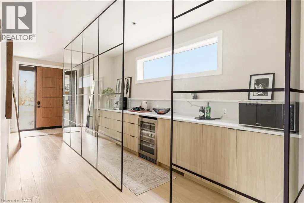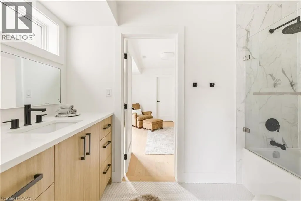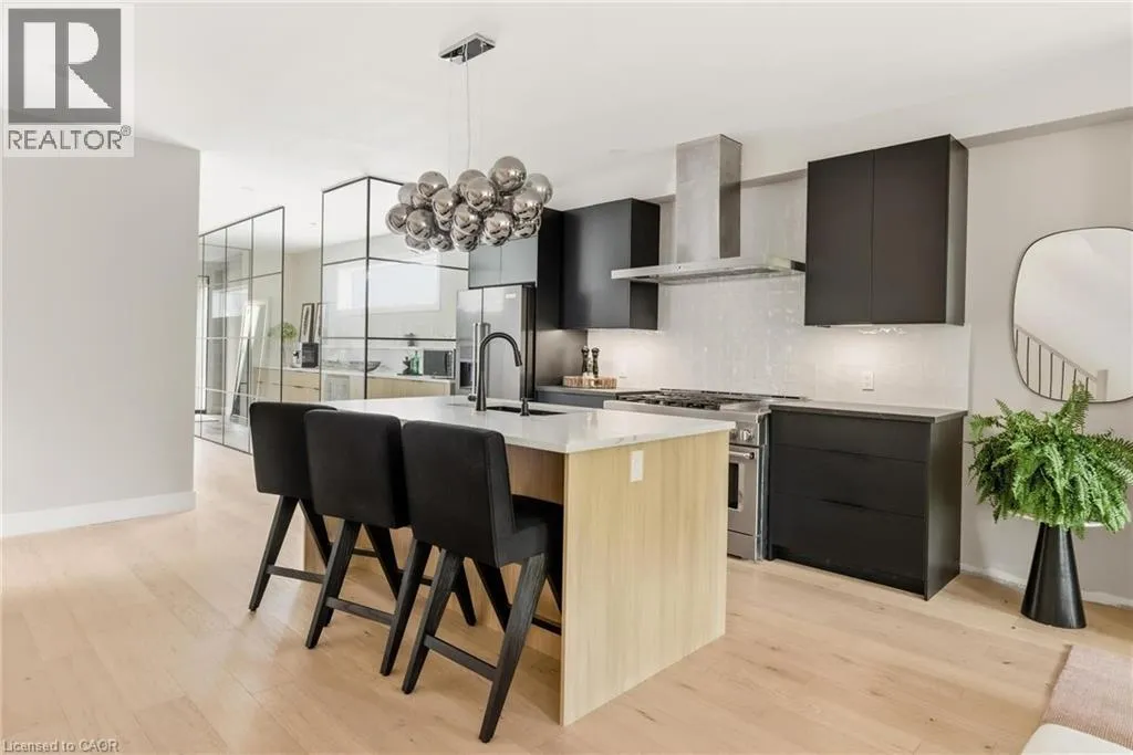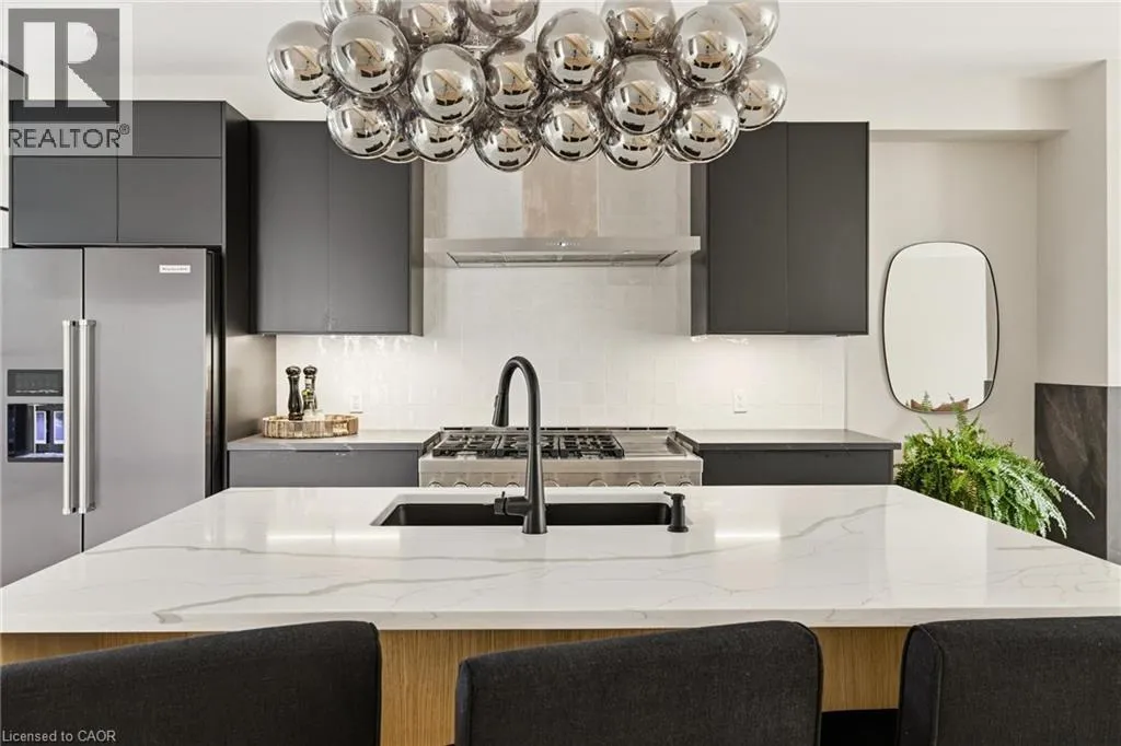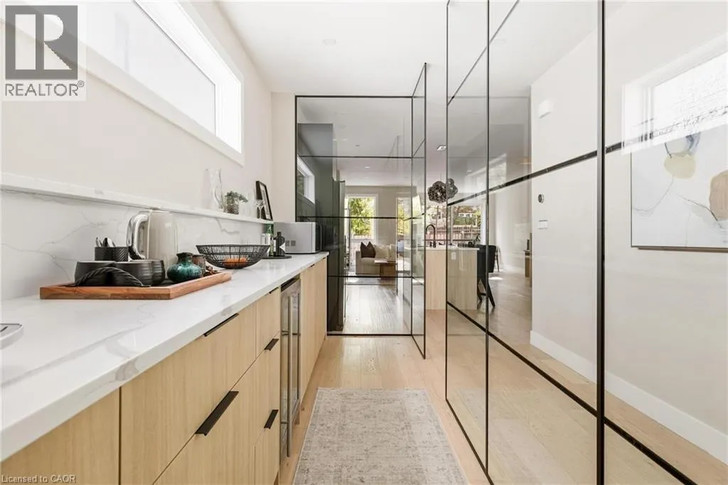 Park Street to William St. W. Welcome to 95 Williams Street, Waterloo! Built in 2022, this modern and spacious home offers over 4,500 sq. ft. of thoughtfully designed living space with 5 bedrooms and 5 bathrooms. Perfectly situated in the vibrant heart of Uptown Waterloo, youâll enjoy easy access to top-rated schools, parks, trails, restaurants, shops, and public transit. Step inside to an inviting open-concept main floor with 9â ceilings, pot lights, and large windows that fill the space with natural light. The chef-inspired kitchen features quartz countertops, modern cabinetry, stainless steel appliances, and a generous islandâperfect for cooking and entertaining. The bright living room with a gas fireplace flows seamlessly into the dining area, which opens onto a deck ideal for outdoor gatherings or quiet relaxation. The second floor offers three spacious bedrooms, including two connected by a stylish Jack-and-Jill bathroom. This level also features a bright home office with balcony access, a convenient 2-piece powder room, and a dedicated laundry room. The third floor offers a private primary retreat complete with a large walk-in closet, a stunning 5-piece ensuite with double sinks, marble flooring, glass-enclosed shower, and a soaker tubâplus an additional great room for lounging or work-from-home flexibility. The finished basement adds versatility with a fifth bedroom, a 4-piece bathroom, and a generous rec room, perfect for guests, in-laws, or a home gym. Outside, enjoy a fully fenced backyard with open green space and a spacious deck for family barbecues or evenings under the stars. Built with quality and attention to detail, this home includes 16â engineered floor joists, 6â European white oak hardwood flooring, two-zone heating and cooling, a durable steel roof, and an extra-high garage ready for a car lift. Experience the best of modern design, everyday comfort, and Uptown living at 95 Williams Street. (id:27476)