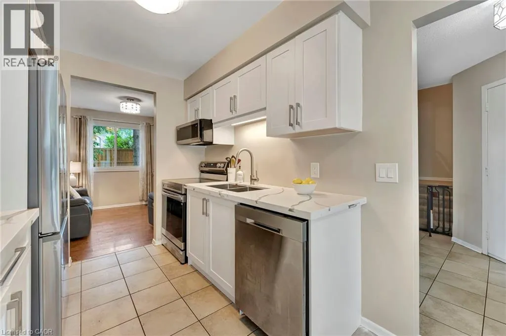 Davenport to Kingscourt Stylish, move-in-ready, and perfectly locatedâwelcome to Unit 19 Kingscourt Drive in Waterlooâs prestigious Colonial Acres community.?This thoughtfully updated 3-bedroom, 2-bath townhome is an ideal choice for anyone seeking a turnkey property in one of the cityâs most convenient and desirable areas. Step into the freshly renovated kitchen (2025), featuring crisp white shaker cabinetry, elegant quartz countertops, and brand-new stainless steel appliances that make both everyday cooking and entertaining a joy. The bright, open-concept main floor offers a spacious living and dining area that flows seamlessly to your new stone patioâa private retreat perfect for morning coffee, summer BBQs, or simply relaxing outdoors. Upstairs, discover three generous bedrooms, including a serene primary suite with an oversized walk-in closet. The bathrooms have been refreshed with modern vanities with quartz countertops. The lower level provides endless potentialâwhether you envision a cozy rec room, home gym, office, or creative space, thereâs plenty of room to grow. Every detail has been thoughtfully updated, including a new furnace and A/C (2024) and new water softener (2024), ensuring years of worry-free ownership. Even better, the condo fees cover the roof, exterior doors, windows, and all exterior maintenance. Spend less time on upkeep and more time enjoying life with all the snow removal and lawn care taken care of for you. With garage parking, a private driveway, and proximity to Conestoga Mall, the LRT, scenic trails, schools, and every urban convenience, youâll love the balance of accessibility and tranquility this location offers. Stylish, spacious, and smartly updatedâUnit 19 Kingscourt Drive is more than a home; itâs your fresh start in one of Waterlooâs most desirable neighbourhoods. (id:27476)