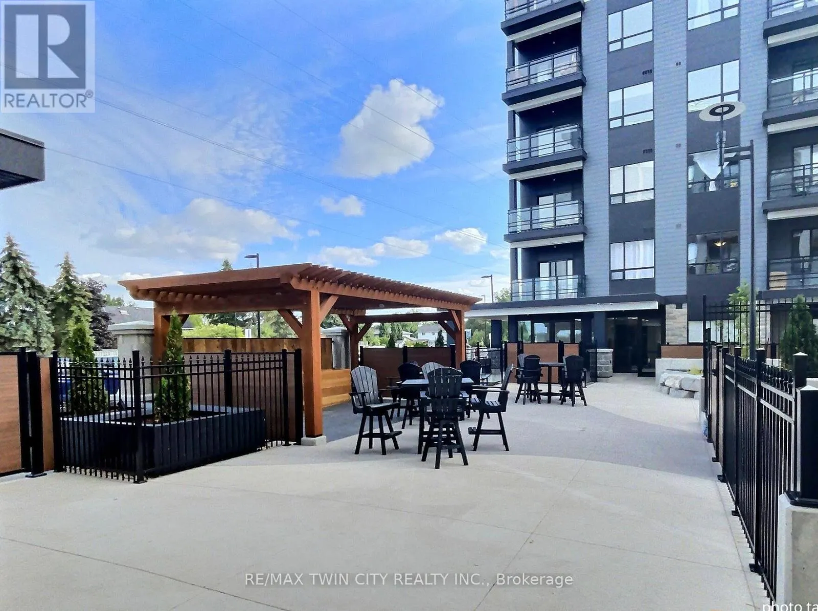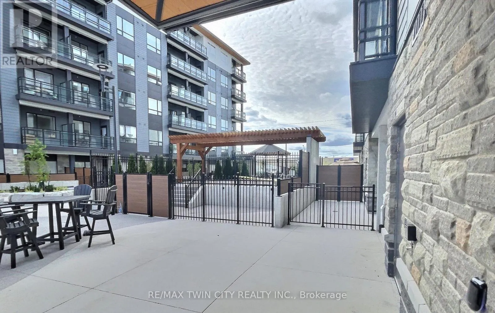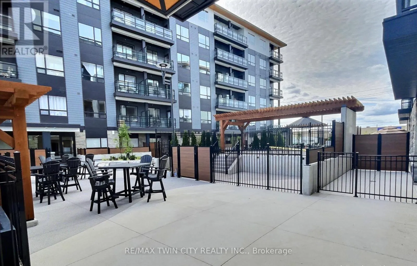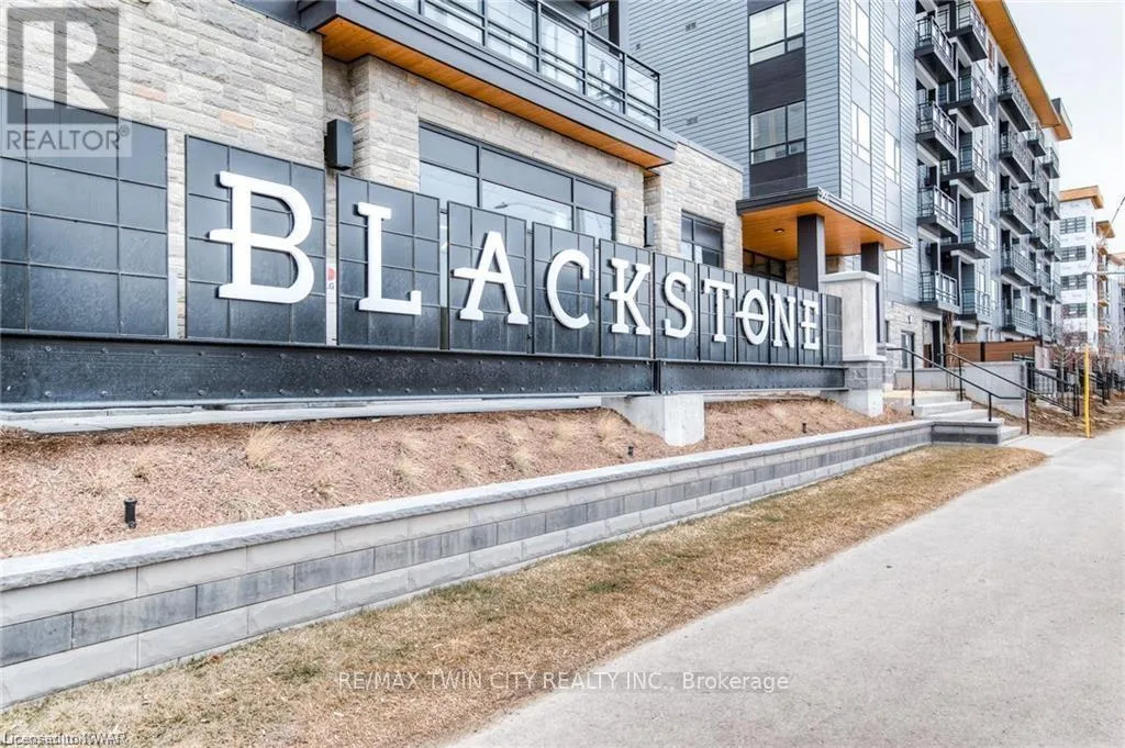 Cross Streets: Corner Of Bridge St&Northfield. ** Directions: Corner of Bridge St and Northfield Dr E. Welcome to 243 Northfield Unit 402, located in the highly sought-after Blackstone Building in anamazing neighborhood. This modern 1 bedroom, 1 bath apartment boasts 9' ceilings and huge windows, creating a bright and spacious atmosphere. The open concept living and dining room offers a seamless flow and opens onto a large balcony, perfect for enjoying the outdoors. The contemporary kitchen is equipped with stylish white cabinetry, luxurious quartz countertops, and top-of-the-line stainless steel appliances. Upgrades throughout the unit include high-quality wood grain laminate flooring and elegant pot lights, adding a touch of sophistication to the space. Residents of the Blackstone Building enjoy a wealth of amenities designed to enhance their lifestyle. Stay fit and active in the fully equipped fitness center, host gatherings in the event/party room, and take advantage of the convenient dog wash station. The building is secured with 24/7 security and features keyless entry for added peace of mind. Additionally, residents benefit from free Rogers Ignite Internet. The property also offers a perfect mix of urban and city living with access to the Terrace & Courtyard, located on the 2nd floor of the Nord Building. This outdoor space is beautifully designed with modern furnishings, stainless steel BBQs, a gas fire pit, loungers, and dinettes, providing a relaxing environment for entertaining or simply enjoying some fresh air. Conveniently situated close to the highway, this property offers easy access to the St. Jacobs Farmers Market, a variety of restaurants, shopping centers, parks, and trails. Embrace the best of both worlds with this exceptional leasing opportunity at Blackstone Building. (id:27476)