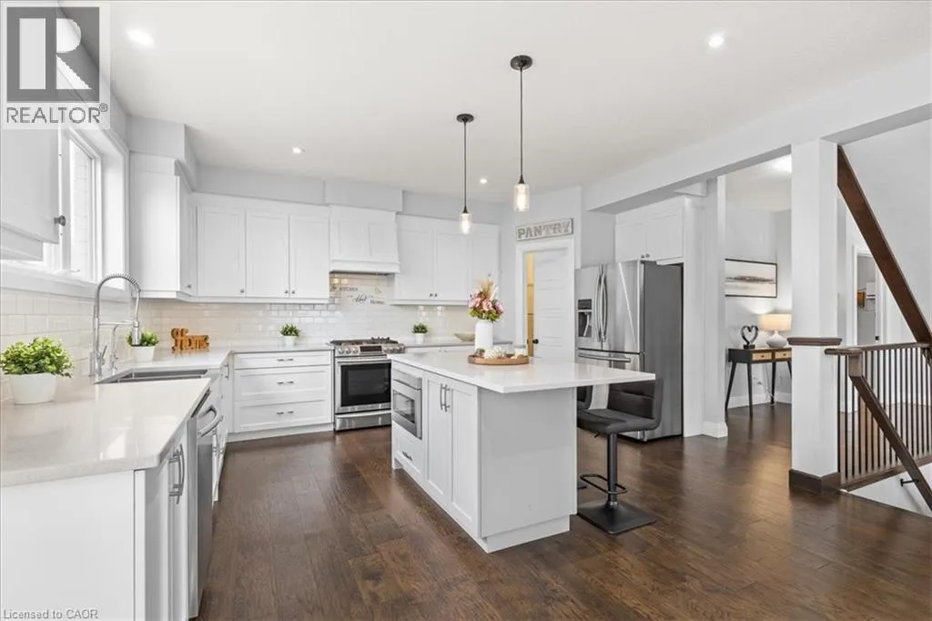 Mayapple St. comes Off Sundew Dr. Discover this exceptional 4-bedroom, 5-bathroom residence, custom built by award-winning Ridgeview Homes. Perfectly positioned on a premium pie-shaped corner lot, this property combines timeless design, modern luxury, and thoughtful craftsmanship. Step inside to a bright, open-concept main level featuring 9-foot ceilings, an elegant gas fireplace, and custom open-riser stairs that create an airy, sophisticated feel. The chef-inspired kitchen impresses with quartz countertops, a stylish custom range hood, and abundant storage â ideal for both daily living and entertaining guests. Upstairs, retreat to the spacious primary suite, complete with a spa-style ensuite and generous walk-in closet. The fully finished basement, completed by the builder, offers a large recreation area and a full four-piece bath, providing flexibility for an in-law setup, guest suite, or home office. Designed with comfort and character in mind, every element of this home reflects quality and attention to detail. Enjoy a location just steps from beautiful trails and green spaces, and close to top-rated schools including Vista Hills PS, St. Nicholas Catholic, and Sir John A. Macdonald SS. Conveniently located minutes from The Boardwalk shopping centre, Costco, restaurants, parks, and public transit. Elegant, spacious, and full of personality â 556 Mayapple Street is a home that truly stands out. Donât miss the opportunity to make it yours! (id:27476)
