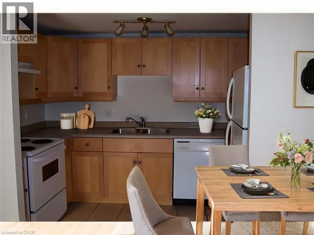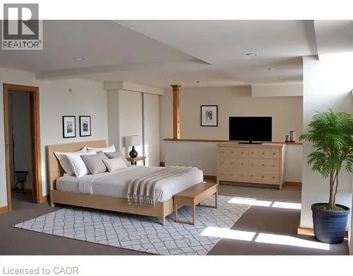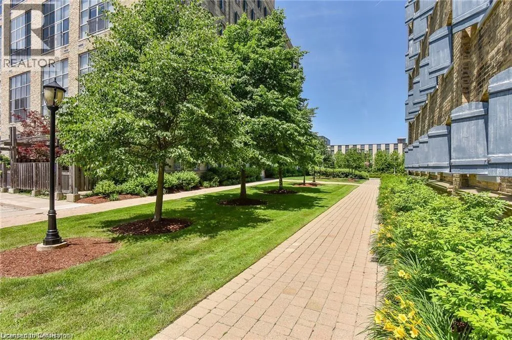 Caroline St. to Father David Bauer Dr. Prime UpTown Waterloo Location in historic and sought after Seagram Lofts. A unique and exquisite true loft layout, this home does not disappoint. Perfect for the downsizer or first time buyer and boasting nearly 1300 square feet. A warm and welcoming entryway, with lovely windows throughout to allow for natural light to pour in! Enjoy the open concept main floor, perfect for entertaining and hosting. Kitchen is open and overlooks the living room and dining room. The convenient 2 pc bathroom for the added bonus. Upper level leads to a large open bedroom space with a full 4 pc ensuite. Insuite laundry and storage space conveniently located off of the bedroom. The generous windows allow for a bright and airy space. Outdoor parking spot, amenities such as gym, rooftop terrace and guest suite. All steps to shops, restaurants and vibrant Waterloo Town Square. Waterloo Park just steps away, as well as LRT, CIGI plus more! Photos are virtually staged. (id:27476)