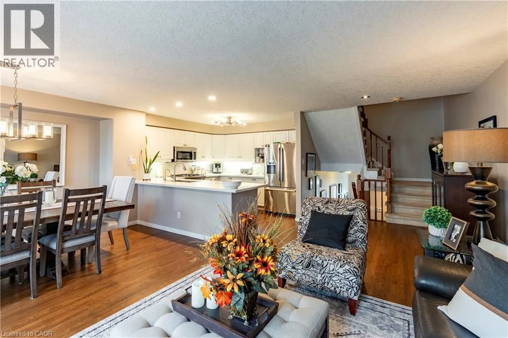 Woolwich St at University Avenue East Welcome to 460 Woolwich St, Unit 6 â an exquisite high-end executive townhome offering the perfect blend of luxury, modern upgrades, and natural tranquility. This recently upgraded 3-bedroom, 3-bath residence is nestled in one of Waterlooâs most desirable communities, backing onto a serene trail and lush greenspace for ultimate privacy. Upon entry, youâll find a convenient powder room, a spacious recreation room ideal for a gym or home office, in-suite laundry, and direct access to a private backyard oasis surrounded by nature. The second level showcases a bright, open-concept layout with a newly upgraded kitchen featuring stunning quartz countertops and a sleek peninsula, seamlessly flowing into the dining and living areasâperfect for entertaining. Step out from the dining room onto a private balcony to enjoy morning coffee or evening sunsets. The third level offers two well-appointed bedrooms, one perfect for guests or a home office, and a stylish 3-piece bathroom. The top floor is a true retreat, featuring a luxurious primary suite with a walk-in closet, a spa-inspired 4-piece ensuite, and ample space for a sitting area or reading nook. With modern finishes throughout, multiple outdoor spaces, and direct access to nature, this home redefines executive living. Ideally located near shopping, parks, golf courses, and major highways, Unit 6 at 460 Woolwich St delivers elegance, comfort, and convenience in every detail â the ultimate place to call home. (id:27476)