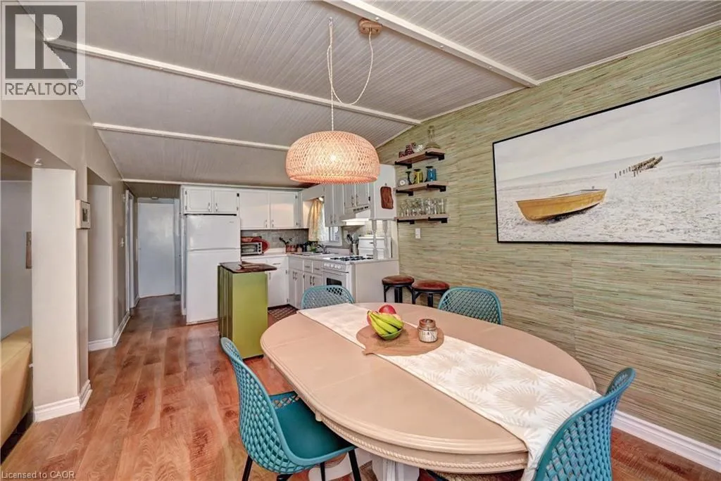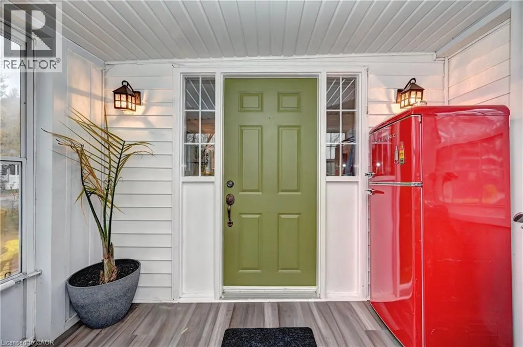 FROM NORTHFIELD EXIT-WEST ON NORTHFIELD DR., NORTH ON WESTMOUNT RD N. WEST ON CONSERVATION DR., SOUTH ON BEAVER CREED ROAD; ONCE INSIDE PARK, TURN RIGHT AT YEILD SIGN, TURN LEFT AT THE OFFICE AND 153 IS PARTWAY UP THE 2ND STREET ON THE LEFT. Welcome to Green Acre Park â one of Waterlooâs most established and beautifully maintained land-lease communities! This bright and inviting modular home offers open-concept living, two comfortable bedrooms, a full 4-piece bath, and an updated kitchen with plenty of storage. Step outside to your spacious private deck, perfect for morning coffee or summer BBQs surrounded by mature trees and friendly neighbours. Enjoy resort-style amenities, peaceful surroundings, and low yearly carrying costs. Annual park fees approx $9,800â$11,200 + HST. Park approval required for all purchasers. Primax Propane tank rental is $160 per year. (id:27476)