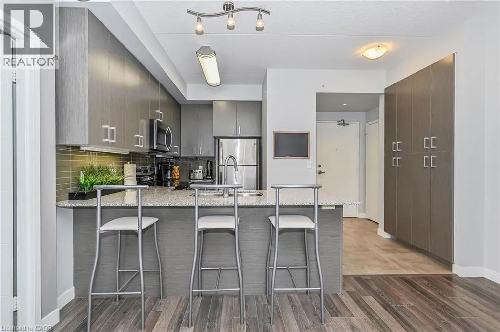 SUNSHINE TO SPA AT THE CORNER OF COMMERCIAL BUILDING AT LARCH AND HICKORY Prime Location! 62 Balsam Street, Waterloo Live in the heart of Waterlooâs university districtâjust steps from Wilfrid Laurier University, Conestoga College Waterloo campus and the University of Waterloo. This bright and modern 1-bedroom + DEN, 2-bathroom condo offers the perfect blend of comfort, style, and convenience. Located on the 2nd floor, this spacious unit features 9-foot ceilings, an open-concept kitchen with sleek modern finishes, and in-suite laundry. The primary bedroom includes a large closet and a private en suite bathroom, adding a touch of luxury and privacy. The den provides flexibility for a home office, additional bedroom space or guest area. Enjoy peace of mind with secure underground parking in this well-managed and safe building. Ideal for students, parents, or investors looking for a turnkey property in one of Canadaâs top academic hubs! This Sage III Hickory Suites Building condo fees include; HEAT, COOLING, WATER, INTERNET PLUS STUDY LOUNGE & ROOFTOP PATIO. Photos from similar layout unit, some photos virtually staged. Unit currently rented for $2357 per month. (id:27476)