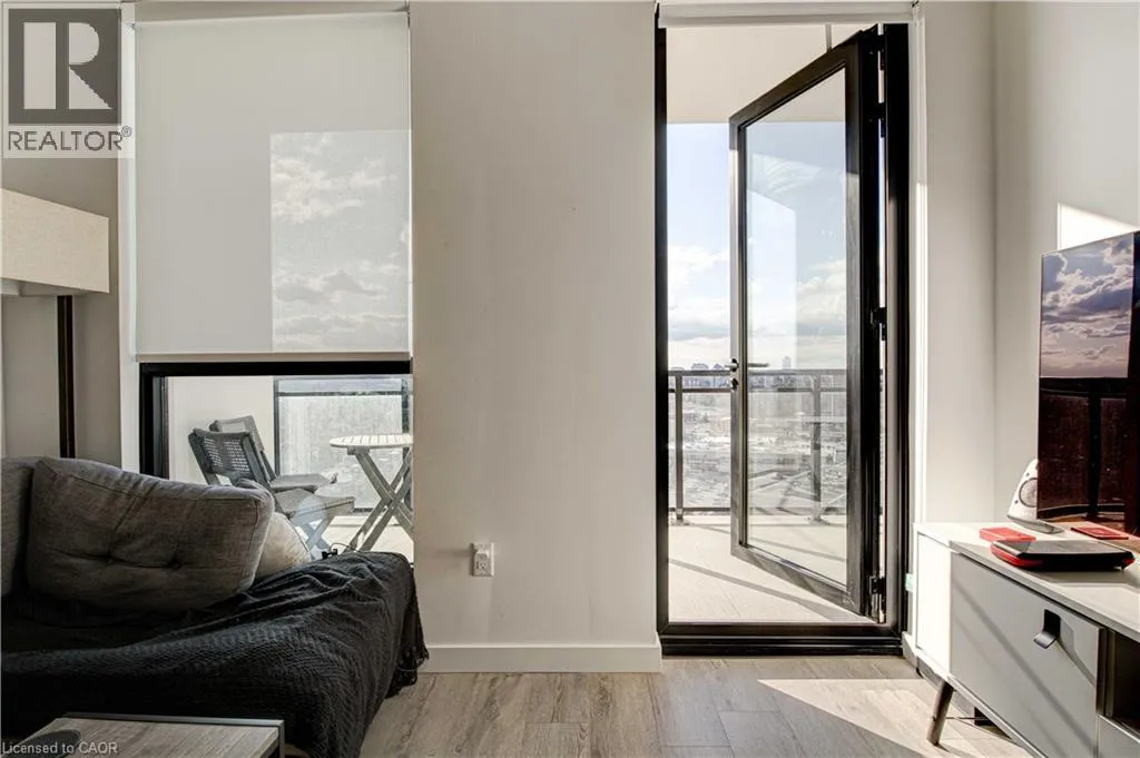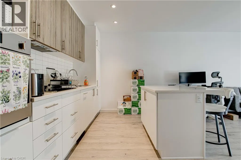 On King St W at Allen St W This 18th-floor suite offers 594 square feet of beautifully designed interior space, plus a rare 148-square-foot balcony that extends your living outdoors with sweeping panoramic views. Whether youâre enjoying morning coffee or evening sunsets, this vantage point is truly special. Inside, the chefâs kitchen is both stylish and highly functional, featuring two-toned designer cabinetry, a generous island, integrated European appliances, and sleek quartz countertops. Thereâs plenty of space to cook, entertain, or simply enjoy a quiet night in. The open-concept living area is filled with natural light and easily adapts to your lifestyle â whether thatâs hosting friends or working from home with an inspiring view. Throughout the unit, wide plank natural wood floors add warmth and create a seamless sense of flow from room to room. Living at Circa 1877 means more than just a great suite. Youâre steps from Uptownâs best shops, cafes, and restaurants â and right on the iON LRT line for effortless city access. Building amenities are among the best in the region, including a fully equipped fitness centre, yoga studio, library lounge, indoor/outdoor party space, and a showstopping rooftop pool. Itâs a lifestyle that blends design, location, and comfort â all in one of Waterlooâs most iconic buildings. (id:27476)