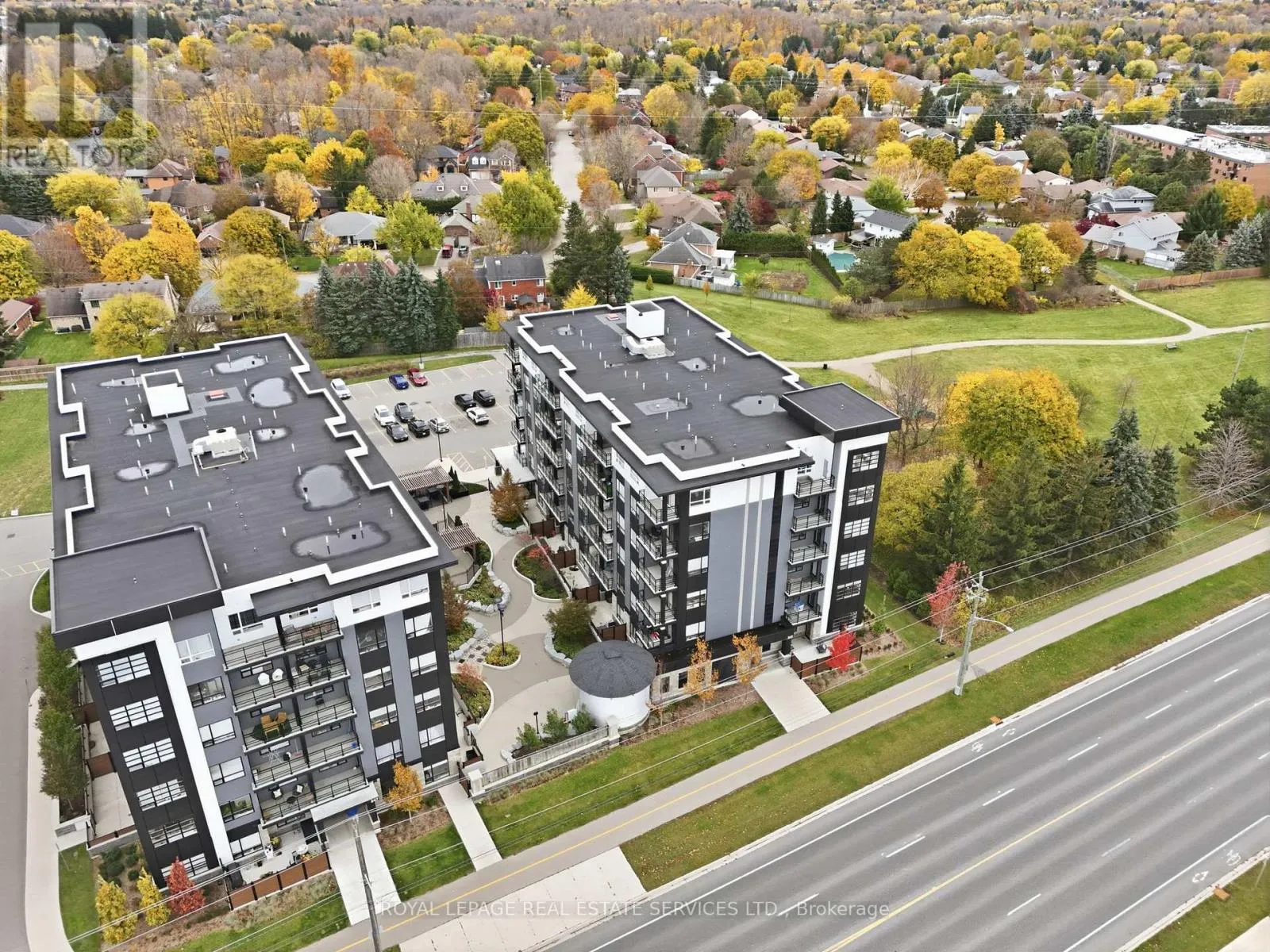 Northfield Dr E & Bridge St W Welcome to Blackstone Condos - where modern design meets urban convenience in the heart of Waterloo. A perfect opportunity for first-time buyers, investors, or professionals, with 584 Square Feet, this stylish condo features a bright, open-concept layout with a spacious living area that flows seamlessly to a private balcony overlooking the tranquil courtyard - ideal for morning coffee or evening relaxation. The contemporary kitchen offers stainless steel appliances, sleek quartz countertops, subway tile backsplash and an open dining space perfect for entertaining. The generous primary bedroom includes a walk-in closet, while the elegant 4-piece bathroom combines comfort and functionality. Additional highlights include in-suite laundry (stacked washer & dryer) and a dedicated underground parking space for your convenience and peace of mind. Residents enjoy resort-inspired amenities, including a fitness centre, rooftop patio, business centre with Wi-Fi, party room, pet wash station, BBQ area, courtyard with fire pit and hot tub, dining room with catering kitchen, bike storage, and more. Ideally located near Conestoga Mall, the LRT, Grey Silo Golf Club, Rim Park, University of Waterloo, Wilfrid Laurier University, restaurants, shops, trails, and major highways - this condo offers the perfect balance of luxury, lifestyle, and location. (id:27476)