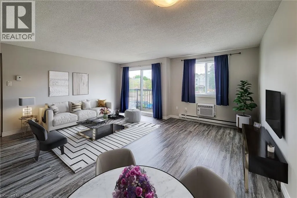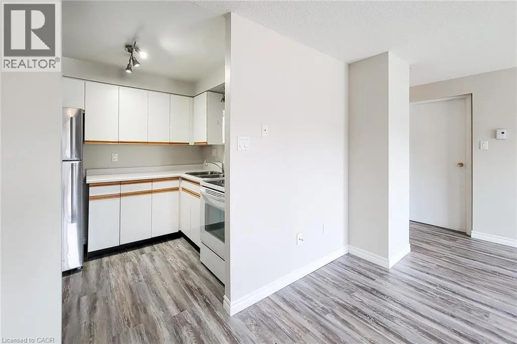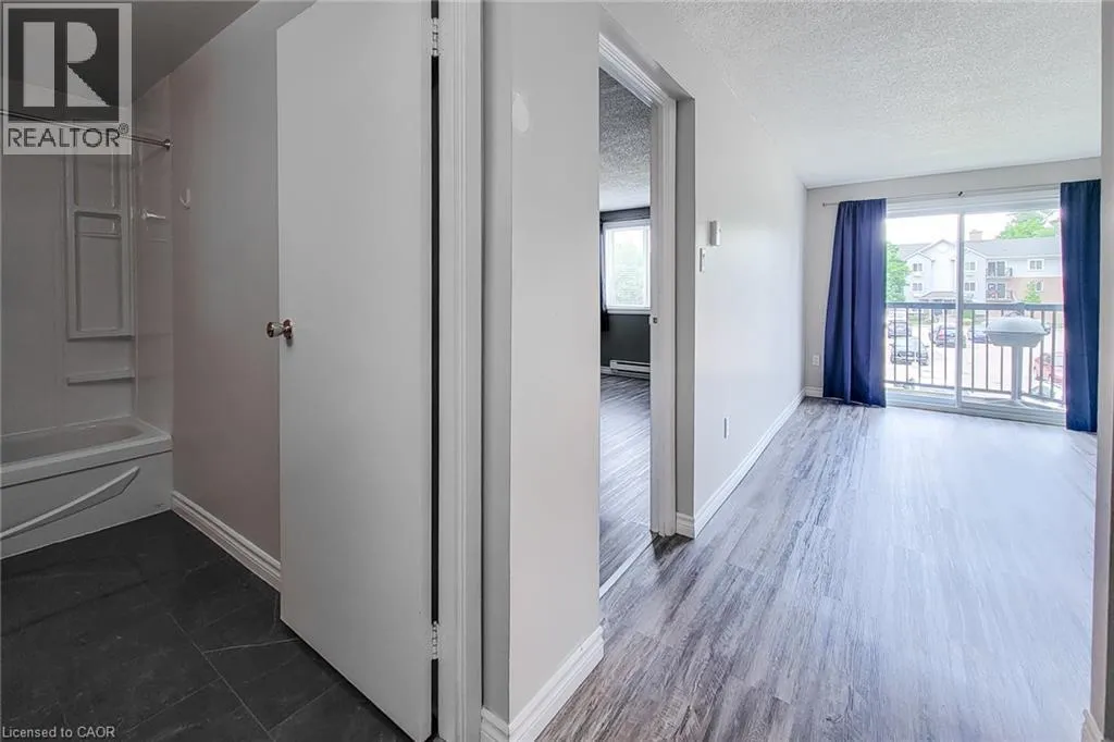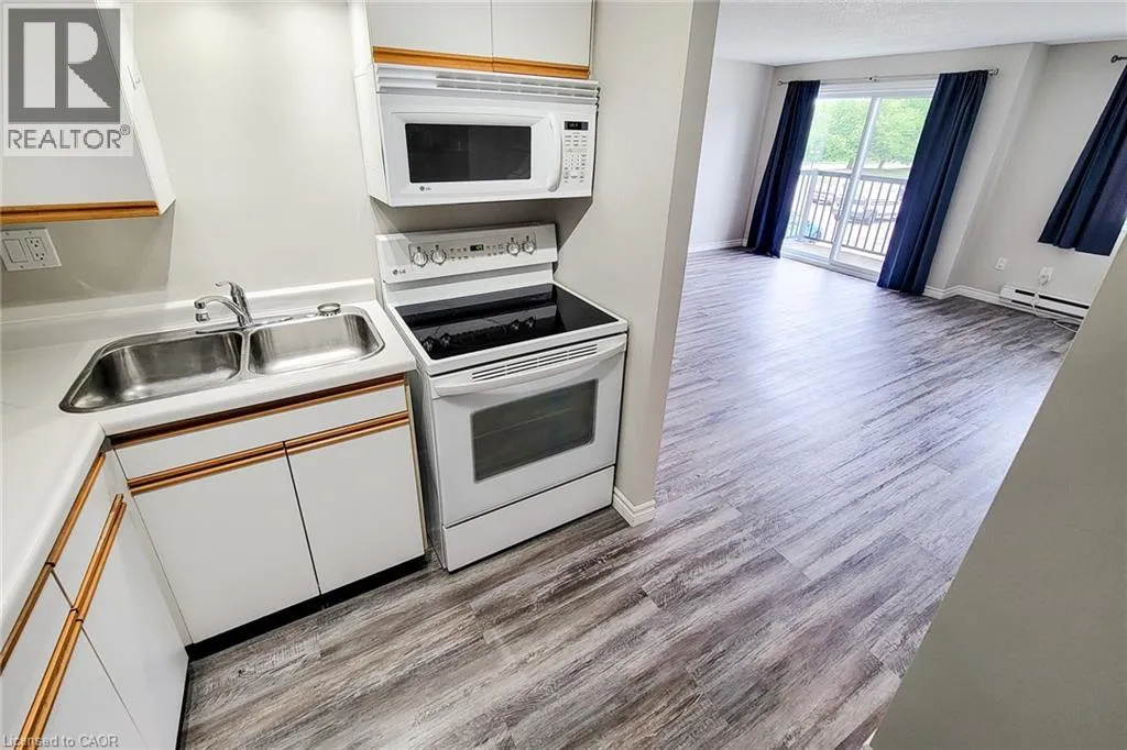 Enter from Eiwo Chic One-Bedroom Condo in Prime East Waterloo â Ideal for First-Time Buyers, Investors & Students. Own this $1,885.26 per month ($1,370.73 P.I. (4.69% 5y term, 25y am. 25%dn) + $163.50 tax + $351.03 Condo). Welcome to this well-maintained, open-concept one-bedroom condo located in the heart of East Waterlooâs vibrant and fashionable district. This stylish unit offers a smart layout and unbeatable convenienceâperfect for students, professionals, or investors seeking a turnkey opportunity. Location: Minutes to Conestoga Mall, Expressway, and Wilfrid Laurier University. Key Features: â¢Bright and functional open-concept living space with water-resistant laminate flooring throughout â¢Spacious European-style kitchen with ceiling fan, double sink, ample cabinetry, fridge, stove, and microwave included â¢Comfortable living area with window A/Câideal for relaxing or entertaining â¢Large 4-piece bathroom with vanity and added wall shelving â¢Generously sized primary bedroom with floor-to-ceiling closet â¢Secure, upscale building entrance with controlled access â¢Convenient on-site coin/card-operated laundry. Transit & Accessibility: â¢6-minute drive or 20-minute bus ride to WLU â¢16-minute bike ride to campus â¢Quick access to the Conestoga Expressway and major shopping amenities. Availability: Vacant possession available end of Novemberâmove in or lease out with ease! (id:27476)