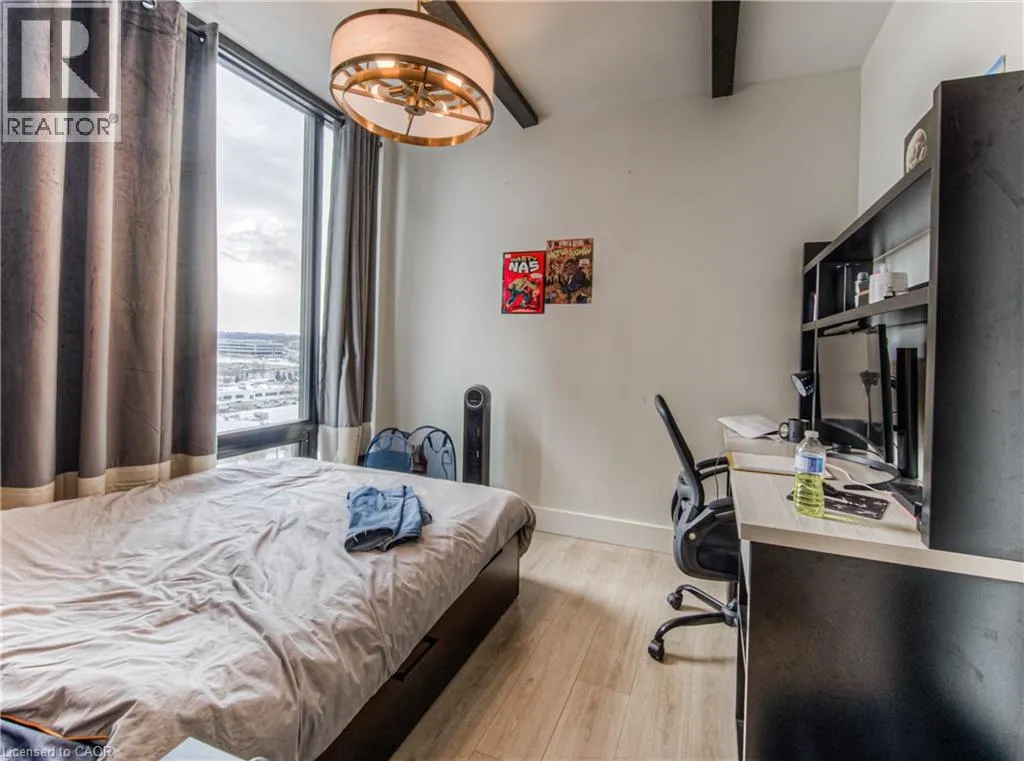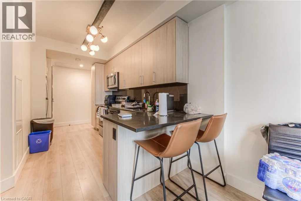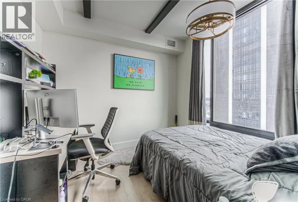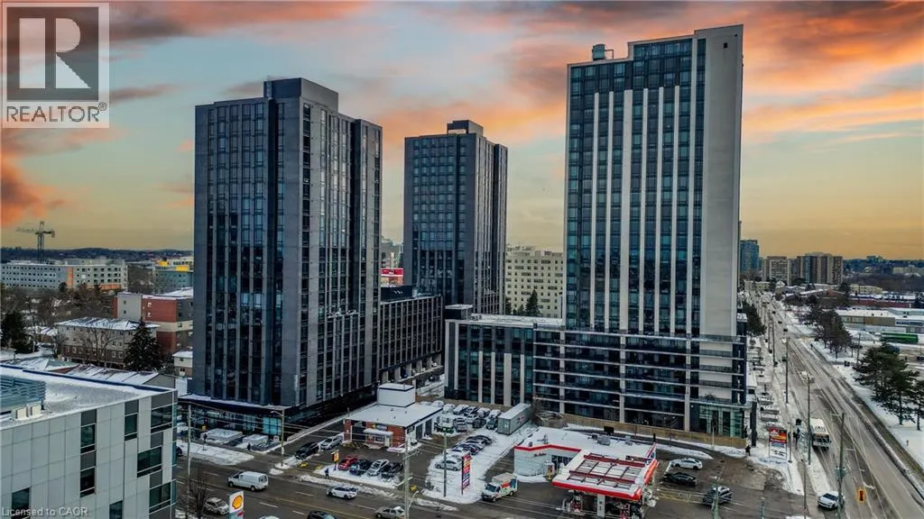 Between Lester and Phillip. Two minute walk to University of Waterloo Welcome to Society 145, a brand-new luxury condominium ideally located in the heart of Waterloo, just steps from both the University of Waterloo and Wilfrid Laurier University. This rare, spacious corner unit offers a thoughtfully designed layout with 630 square feet of contemporary living space, filled with natural light through expansive floor-to-ceiling windows. The unit is adorned with high-end finishes, including hardwood floors, quartz countertops, stylish light fixtures, and rich carpentry throughout, ensuring a sophisticated and comfortable living environment. Whether you're a student, professional, or investor, this unit caters to all, offering a versatile space with a modern kitchen featuring stainless steel appliances, ample storage, and an open-concept living area perfect for entertaining. The bedroom and den (with window) are spacious. The den offers flexibility for use as a guest room, home office, or study space. Residents of 145 Society enjoy top-tier amenities, including a state-of-the-art fitness center, yoga studio, indoor basketball court, games room with billiards, ping pong, and arcade games, as well as a movie theater and business lounge. The building also features secure entry, a 24-hour concierge, and a rooftop patio with breathtaking panoramic views of the city. The ideal blend of luxury, convenience, and modern living - a perfect choice for anyone looking to invest in one of Waterloo's best buildings. With easy access to the dining, shopping, and entertainment options, this condo offers the perfect combination of comfort, convenience, and style. Donât miss the opportunity to own in this highly desirable location with tremendous potential for growth and appreciation in value. Embrace the best of condo living in Waterloo at 145 Society! (id:27476)