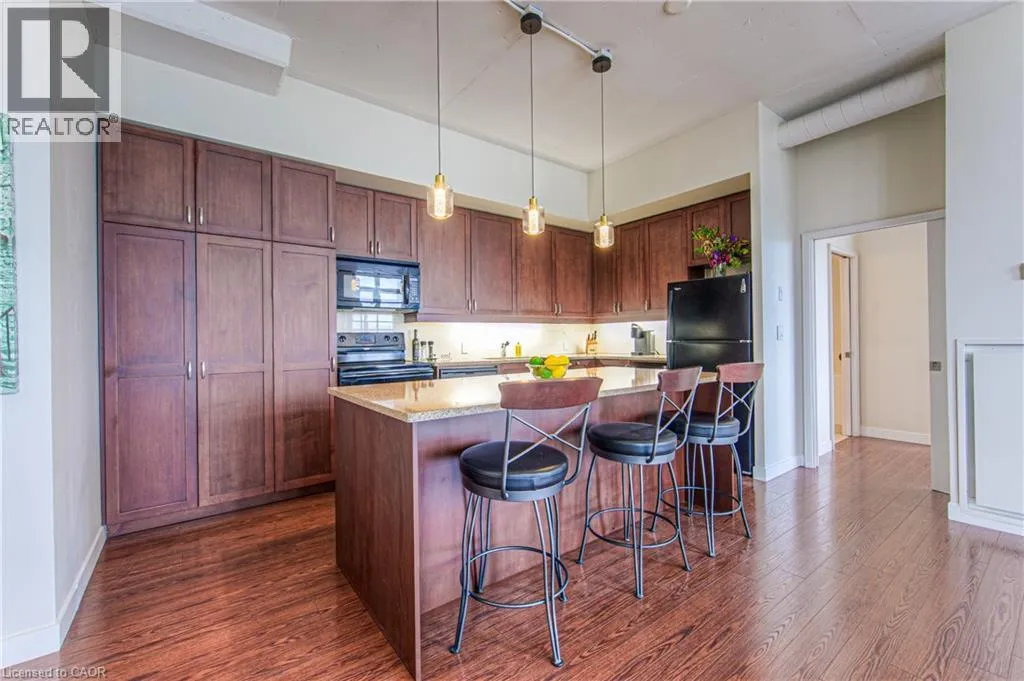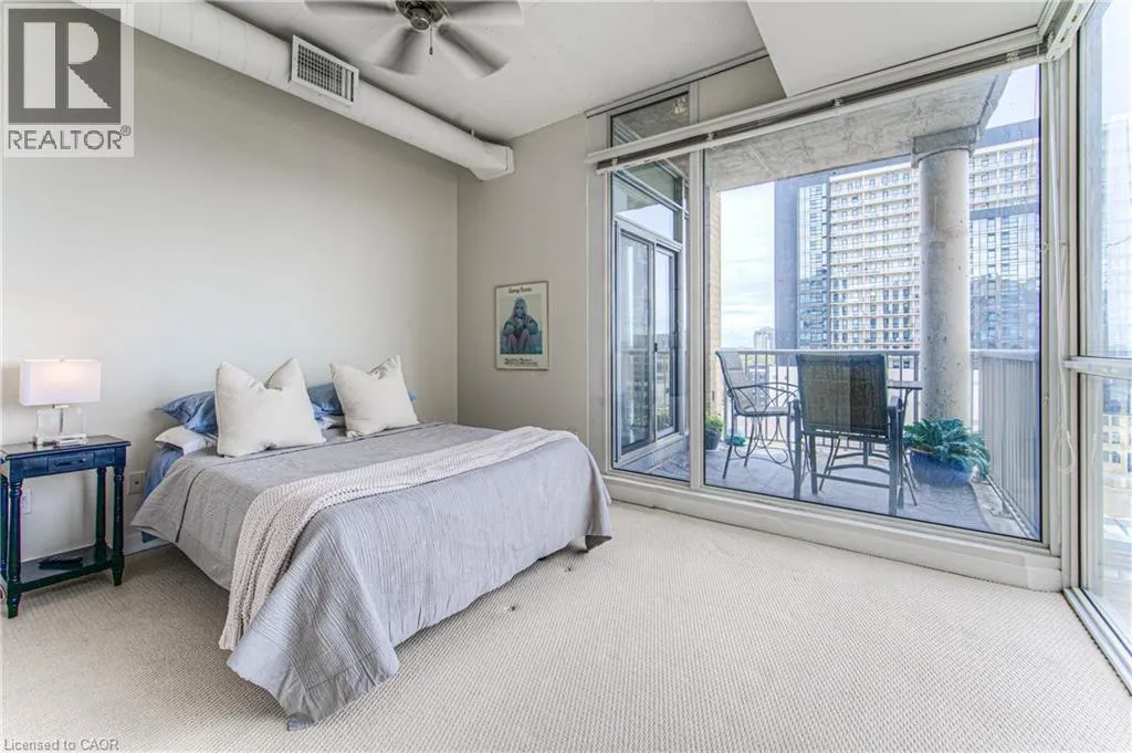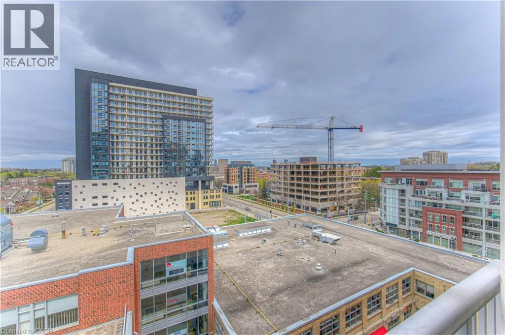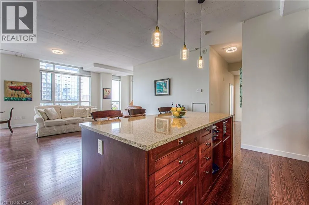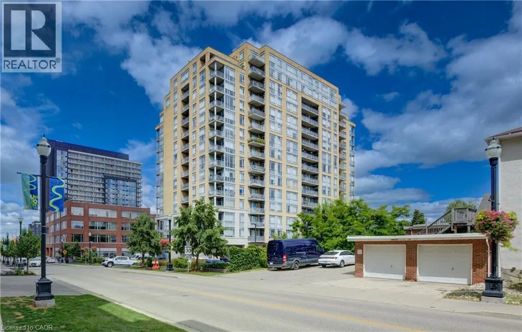 King St S -John St W 2 BEDROOM, 2 BATHROOM, 2 BALCONY CORNER UNIT! Enjoy Cityscape and Sunset views from every room and both balconies in this unit. Arguably the best floor plan in the building with a separate dining room, den and oversized living room, all with a backdrop of floor to ceiling windows. The kitchen offers an abundance of upgraded cabinets, granite countertops, undercounted lighting, and a large island with an overhang large enough for 4 stools. This unit is an entertainersâ dream. The bedrooms and bathrooms are at separate ends of the unit, perfect for a separate TV room or quiet office. Both bedrooms enjoy absolutely fabulous views of Uptown Waterloo and afar with huge corner windows. Freshly painted and updated lighting. The Bauer Lofts offer a party room leading to a huge roof top patio with bbq, & fitness room. The location cannot be beat with restaurants, coffee shop, gourmet grocery store, and other boutique shops, just steps from your front door. Walk to Uptown or jump on the LRT in front of the building. A historical building in a vibrant urban neighbourhood. Pet friendly, lots of visitor parking, and offers extra secure elevator access. (id:27476)