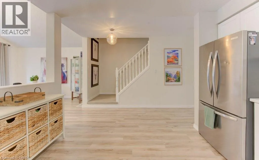 From Erbsville Rd to Brandenburg Blvd to Paris Blvd A warm and inviting 3-bed, 2.5-bath family home located in one of Waterlooâs most convenient and sought-after neighbourhoods. Bright, stylish, and beautifully maintained, this home offers a functional layout with modern finishes and an airy atmosphere throughout. Step inside to a spacious kitchen featuring white cabinetry, stainless steel appliances, and generous counter spaceâperfect for everyday cooking and entertaining. The kitchen opens seamlessly into the show-stopping living and dining area, where soaring cathedral ceilings and abundant natural light create an impressive, open-concept space. From here, sliding doors lead directly to the backyard deck, making indoor-outdoor living and summer barbecues effortless. Upstairs, youâll find three comfortable bedrooms, including a serene primary suite with soft neutral tones and ample closet space. The additional bedrooms are ideal for children, guests, or home offices, offering flexibility for todayâs lifestyle. The insulated and drywalled basement is ready for your finishing touchesâideal for a rec room, gym, or additional living spaceâand includes a central vac rough-in for added convenience. Outside, the fully fenced yard provides privacy, room to play, and space to relax, complete with a deck and storage shed. The low-maintenance yard offers year-round enjoyment with plenty of space for gardening, pets, or entertaining. Located just minutes from Edna Staebler Public School, parks, trails, and a wide selection of shopping and amenities, this home offers exceptional convenience in a family-friendly community. Whether youâre a first-time buyer, growing family, or downsizer seeking comfort and function, 707 Paris Boulevard delivers a welcoming lifestyle in a prime Waterloo location. (id:27476)