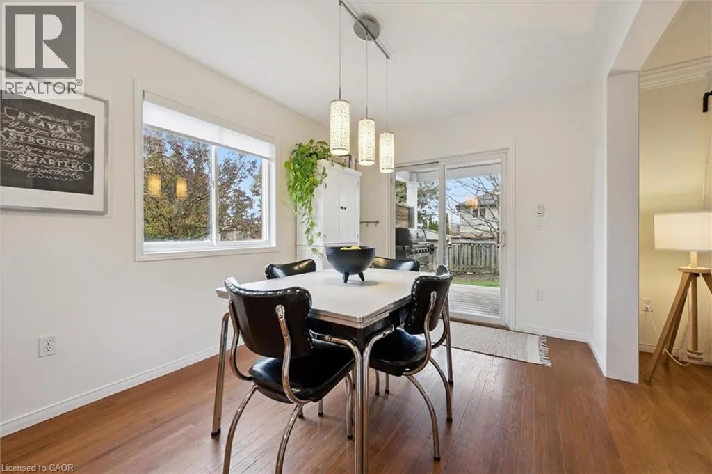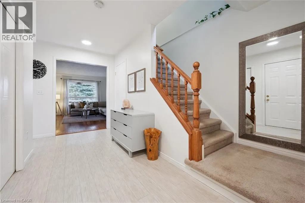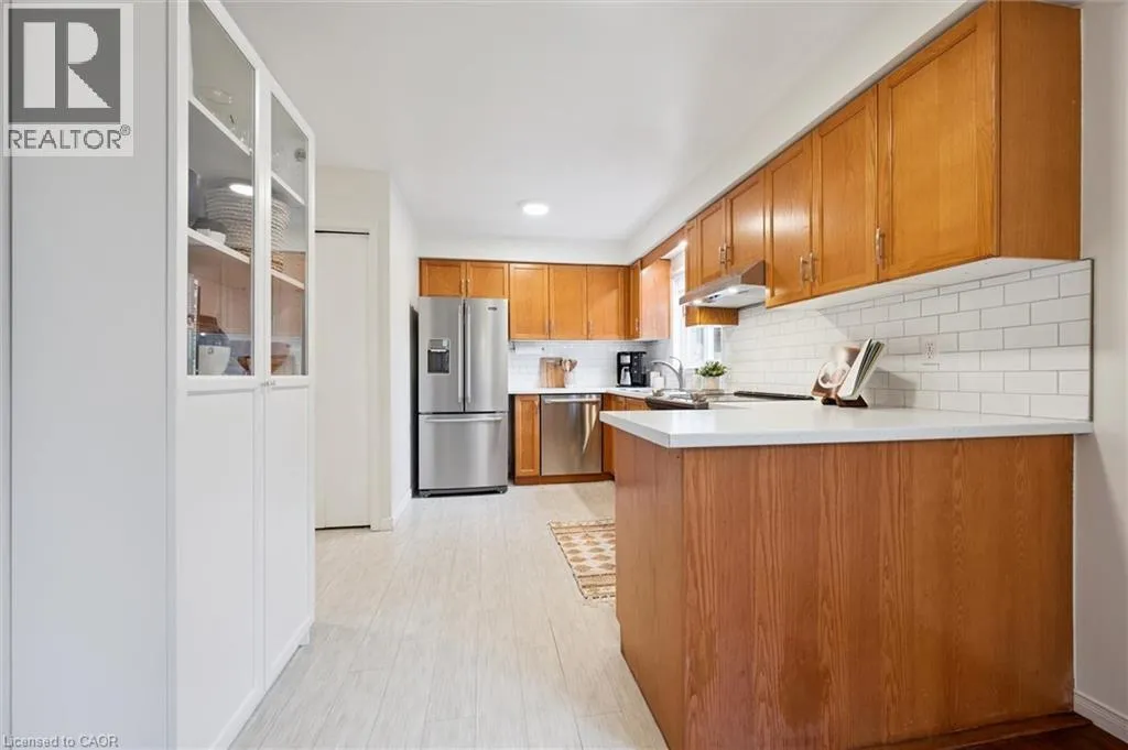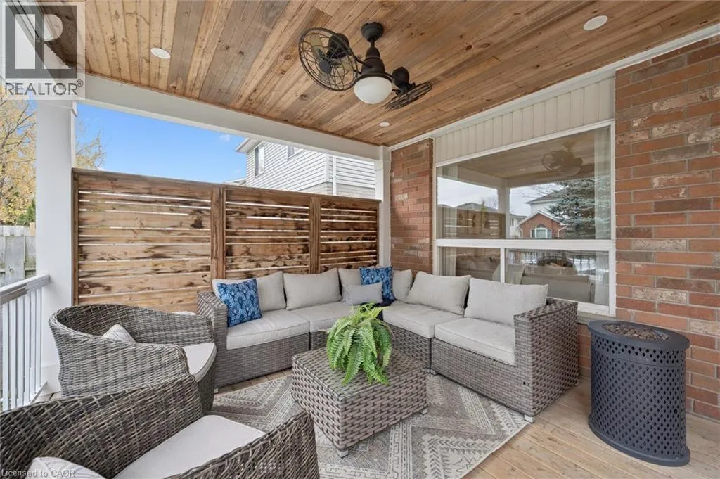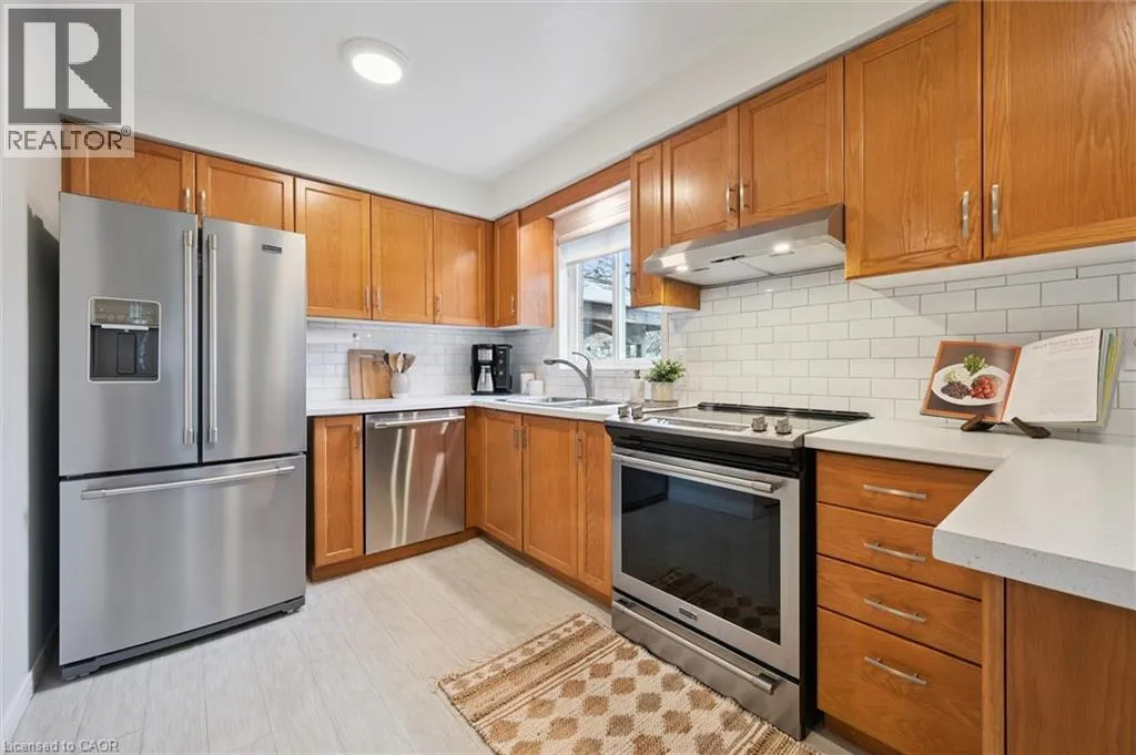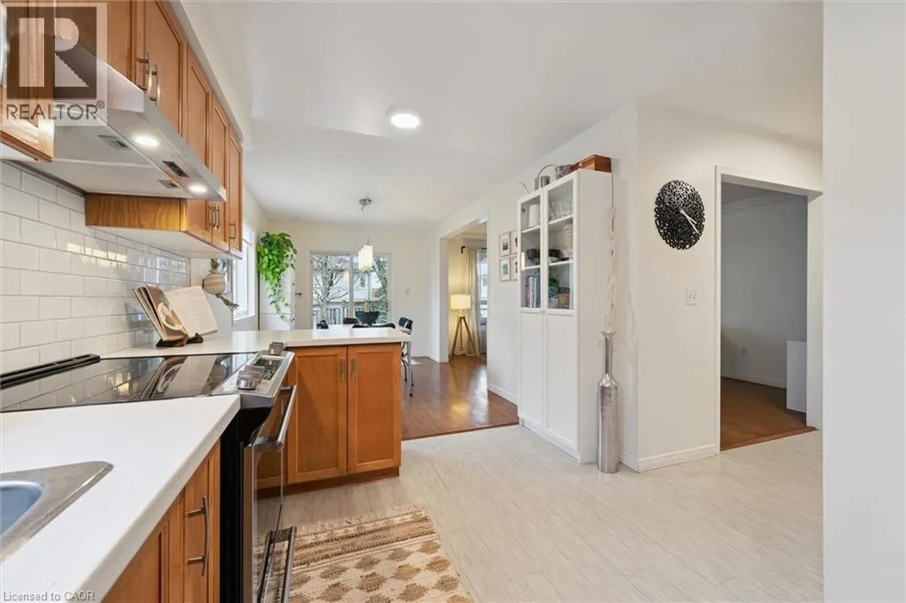 Windjammer to Kelso Welcome to Eastbridge, one of Waterlooâs most loved neighbourhoods, celebrated for its parks, trails, top schools, and the unmatched convenience of being close to RIM Park, Grey Silo Golf Course, soccer fields, riverfront walking paths, Conestoga Mall, the LRT, and the expressway. Tucked away on a quiet court, this home offers a level of peace and privacy thatâs hard to find, while still keeping you wonderfully connected to everything the area offers. Inside, the home feels bright, airy, and incredibly fresh. Large windows on every level invite in natural light throughout the day, giving each room a warm and welcoming glow. The main floor has an intuitive, easy flow, and the kitchen has been thoughtfully refreshed with 2023 upgraded appliances and updated countertops, while the spacious dining room and comfortable living room make family time feel effortless. It truly shows beautifully from the moment you step inside. The outdoor space is where this property becomes truly special. Over $100,000 has been invested in creating a backyard oasis designed for comfort, connection, and complete privacy. The covered porch, finished with integrated lighting and a ceiling fan, functions as an outdoor living room perfect for morning coffee, relaxed summer dinners, or watching the kids enjoy the oversized yard. Movie nights on the projector screen, evenings in the hot tub, beautiful interlock work, and an upgraded custom shed all come together to create a space that feels like a private retreat. Upstairs are three generous bedrooms, including a standout primary suite with vaulted ceilings and exceptional natural light. The fully finished basement adds even more versatility with a great rec room, work-from-home option, or ideal teen hangout, complete with an additional bathroom. Homes with lots this large, on a court, with this level of privacy and care, are incredibly rare in Eastbridge. Book your showing today! (id:27476)
