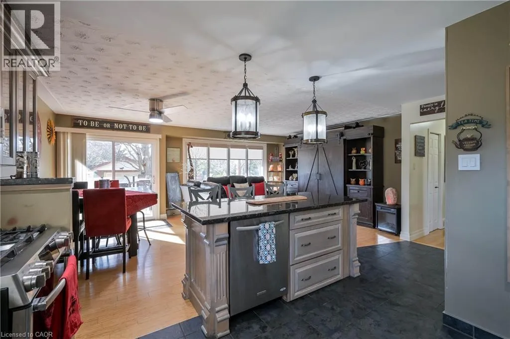 Lexington Road to Anndale Road Welcome to 449 Anndale Road, where comfort and character meet in a beautiful Waterloo neighbourhood! Step through the charming covered porch and into an open-concept main floor designed for modern living. The remodeled kitchen (2013) features granite counters, bamboo hardwood floors, and a spacious island thatâs perfect for gathering with friends and family. The main level includes two bright, spacious bedrooms, a private 3-piece ensuite, and a stunning 4-piece family bathroom. The finished lower level offers space for a third bedroom, a cozy rec room, and a walk-up to the backyard â ideal for guests or in-law potential. Upgrades include new HE (97%) furnace, A/C and Heat Pump (2023) Outside, youâll fall in love with the large, fully fenced yard featuring a covered porch with gas hookup for BBQ, lower patio, propane-heated workshop, and attached shed. With easy access to highways, parks, transit, universities, restaurants, and shops â this home truly has it all! Don't wait - Book your showing today! (id:27476)