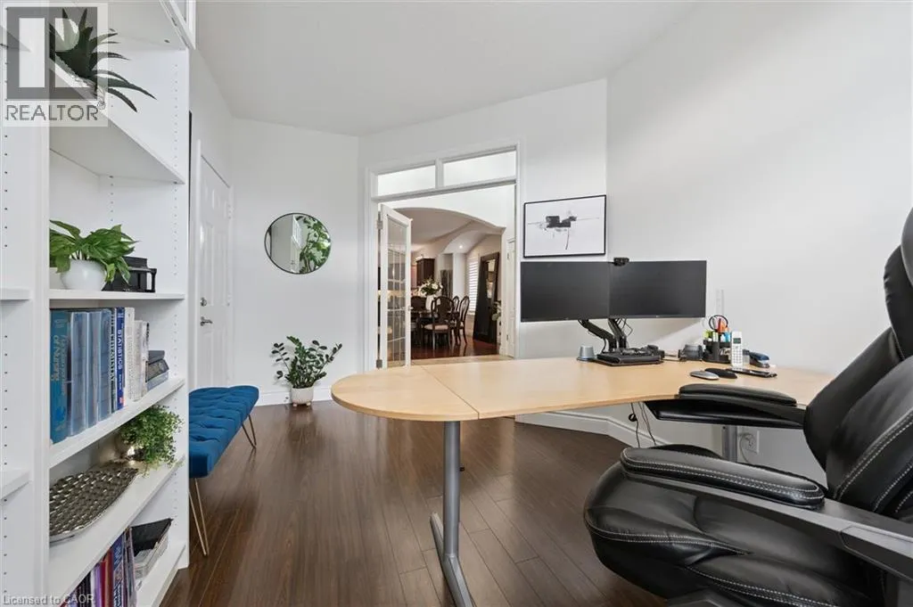 Erbsville RD. Turn left onto WIDEMAN RD. turn left onto Woolgrass, first right onto Wood Nettle Way Your dream home awaits! Welcome to 531 WOOD NETTLE WAY, a spectacular CUSTOM-BUILT HOME on a premium PIE-SHAPED LOT (0.17 ACRES) in the highly sought-after neighbourhood of LAURELWOOD. From the moment you arrive, the grand DOUBLE-WIDE PAVER DRIVEWAY and wrap-around walkway create an unforgettable first impression, leading you to the elegant front entrance. Step inside this PROFESSIONALLY DESIGNED, OPEN-CONCEPT MASTERPIECE, where soaring 18-FOOT CEILINGS in the foyer welcome you home. Host unforgettable gatherings in the FORMAL DINING ROOM complete with a BUILT-IN WINE RACK, before moving into the stunning EAT-IN KITCHEN featuring GRANITE COUNTERTOPS and a SPACIOUS ISLAND & STAINLESS APPLIANCES. The OPEN-CONCEPT LIVING ROOM, featuring a cozy GAS FIREPLACE and elegant FRENCH DOORS, flows seamlessly out to the COVERED PRIVATE DECKâa serene retreat crafted with CUSTOM COMPOSITE DECKING and a GLASS RAILING SYSTEM. Need a workspace? Discover the luxurious MAIN-FLOOR OFFICE, filled with natural sunlight and its own private entrance. This level also boasts 9-FOOT CEILINGS, POT LIGHTING, and a convenient TWO-PIECE POWDER ROOM. The grandeur continues upstairs, where the PRIMARY BEDROOM offers a HUGE WALK-IN CLOSET and a luxurious 5PC ENSUITE with JACUZZI TUB and TILED SHOWER. Two additional bedrooms both feature WALK-IN CLOSETS, one with a CHEATER ENSUITE, plus a LAUNDRY ROOM with sink, shelving, and cabinetry. The LOWER LEVEL reveals incredible potential with a LARGE REC & GAMES ROOM with walkout to a STONE PATIO, plus a 3PC BATH WITH HEATED FLOORING. The massive 30X20 BONUS ROOM is an untouched canvas for your dream theatre, hobby space, or rink. The DOUBLE GARAGE includes two inside entries and a FULLY EQUIPPED WORKSHOPâa handyman or handywomanâs dream. Surrounded by PARKS, TRAILS, AND TOP-RATED SCHOOLS, this one-of-a-kind home is minutes from COSTCO, THE BOARDWALK, YMCA PROGRAMS, and LAUREL CREEK CONSERVATION AREA. (id:27476)