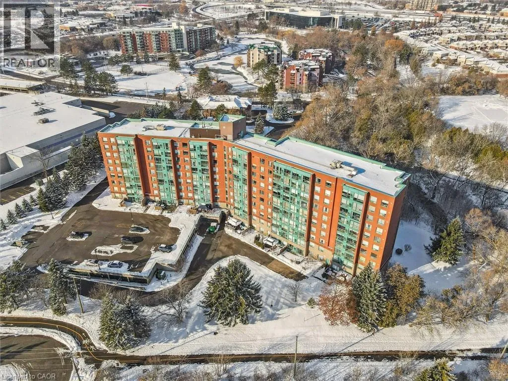 King St N to Blue Springs Dr, turn right into ""The Atriums"", visitor parking is above the parking garage (stay right). From the parking lot, take the stairs down to the main front entrance. Discover tranquil, sophisticated condo living at The Atriums. Nestled in a peaceful setting, you are surrounded by scenic trails yet minutes from major conveniences: Conestoga Mall, the LRT, prestigious Universities, and quick access to the expressway. This unit is a stunningly updated, bright, and spacious retreat. The gorgeous open-concept kitchen anchors the living space, featuring quartz counters, a tiled backsplash, built-in pantry, oversized pot drawers, soft-close cabinets, and high-end stainless steel appliances. Modern flooring, contemporary fixtures, and designer decor elevate the entire unit. Enjoy an abundance of natural light and wonderful forest views through the large windows. This sought-after unit offers 2 bedrooms, 2 full updated bathrooms, convenient in-suite laundry, and a storage locker. A rare find, it includes TWO owned parking spaces! Upgrades abound, including new laminate flooring and LED pot lights throughout. The expansive living/dining area is perfect for entertaining and family gatherings. The primary bedroom boasts an updated 4-piece ensuite and a double closet walk-through. The building's amenities enhance your lifestyle: controlled entry, library, workshop, underground parking, bicycle storage, a fantastic rooftop lounge/sun deck, two party rooms with full facilities, and a dedicated Guest Suite for visitors. Don't miss out on this exceptional opportunity! Call your agent today to schedule your private viewing. Note some photos are virtually staged. (id:27476)