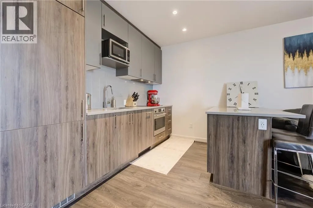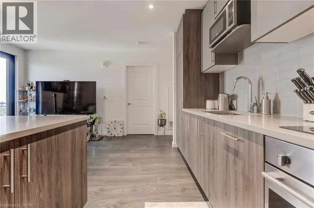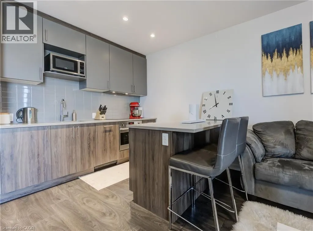 King Street and Allen Street Welcome to Circa 1877 in Uptown Waterloo, where modern design meets historic charm in the heart of the Bauer District. This one-bedroom, one-bathroom condo offers 633 sq ft of open-concept living space, complete with in-suite laundry and a private 170 sq ft balcony. The stylish kitchen features quartz countertops, subway tile backsplash, and a functional island with power outlets. Residents enjoy exceptional building amenities, including a rooftop terrace with a saltwater pool, cabanas, and BBQs, as well as a fitness and yoga room, resident lounge, and secure entry. With the LRT just steps away and shops, dining, and entertainment within walking distance, this location is ideal for vibrant urban living. An excellent investment opportunity, as this unit is currently rented for $2,200/month plus utilities. (id:27476)
