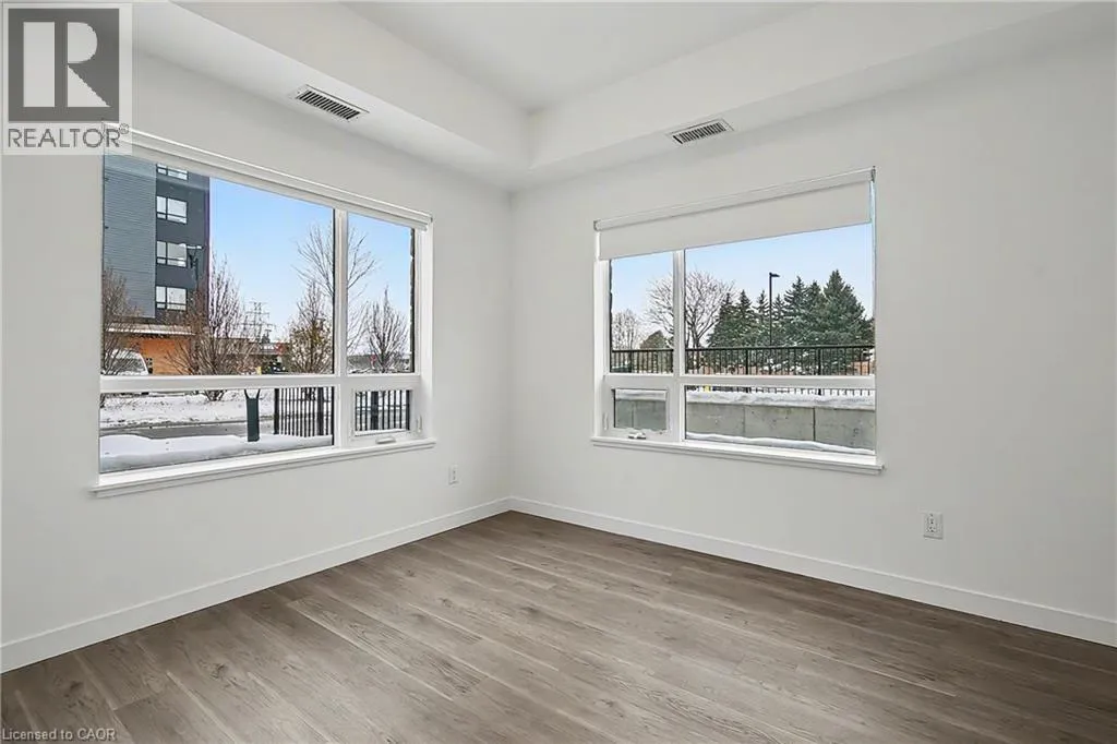 Bridge St W to Northfield Dr E Welcome to the Eva floor plan at Blackstone Condominiums â an elegantly upgraded two-bedroom, two-bathroom suite complete with a 78 sq. ft. private patio. This ground-floor corner residence offers the rare luxury of its own private entrance, giving you the ease and exclusivity of townhome-style living within a beautifully modern, thoughtfully planned community. Inside, the Eva model showcases clean, contemporary finishes including quartz countertops, stainless steel appliances, and a selection of elevated upgrades that enhance the well-designed 800 sq. ft. layout. The primary bedroom features a spacious walk-in closet, and everyday comfort is made effortless with one underground parking space, high-speed internet, and heat all included in the lease. Blackstone blends Scandinavian simplicity with the warmth of a modern farmhouse aesthetic, delivering a lifestyle that feels both elevated and effortless. Residents enjoy access to an impressive collection of amenities, including a fully equipped gym and fitness studio, party room, games room, business center, bike room, keyless entry, a grand lobby, and in-suite laundry. Outdoor amenities are just as refined, with a rooftop terrace featuring BBQs and lounge seating, a ground-level courtyard complete with a hot tub and gas fire bowl, multiple patio areas, a dog washing station, and an inviting outdoor dining space. Added peace of mind comes with 24/7 security throughout the community. Ideally situated in a well-connected and convenient area of Waterloo, this residence offers easy access to everyday essentials, recreation, and transit, with cafés, shops, and restaurants close by. Perfect for professionals, downsizers, or anyone seeking a stylish and low-maintenance home, this suite delivers refined living with exceptional ease and comfort. (id:27476)