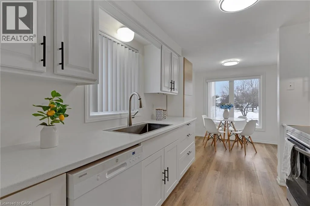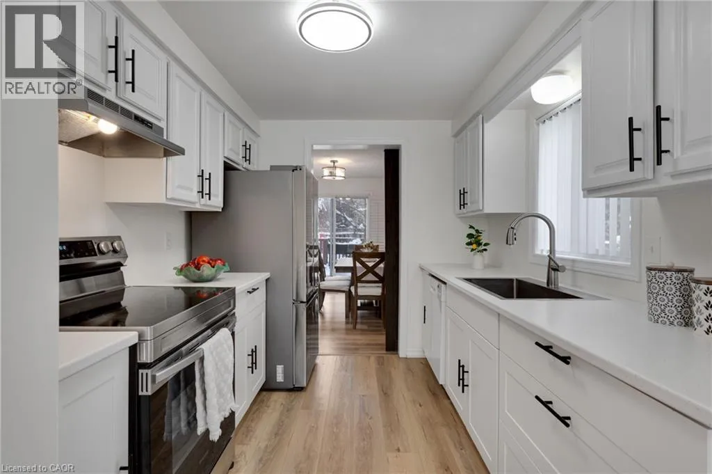 University Ave W to Baker St to Cardiff St to Thornbird Pl EXQUISITE LIVING at 225 Thornbird Place â Welcome to this BEAUTIFULLY RENOVATED home nestled on a SERENE court in one of Waterlooâs MOST DESIRABLE locations. As you step inside, you are welcomed into a STRIKING GREAT ROOM with SOARING 16-foot VAULTED CEILINGS and large windows that fill the space with natural light. Designed for everyday living and entertaining, the open concept layout seamlessly connects the living, dining, and kitchen areas, making it ideal for family gatherings or hosting guests. This home has been extensively upgraded in 2025 with NEW WINDOWS in most areas, NEW FLOORING and NEW PAINT throughout the home, and all NEW APPLIANCES (except dishwasher). The RENOVATED KITCHEN boasts new bottom cabinets, a large sink, counter tops, updated hardware, and a sunlit breakfast nook, ideal for casual dining or morning coffee. Thoughtful touches include a fully updated powder room, new barn doors on the main floor, new custom window coverings and NEW LIGHT FIXTURES throughout the home. Step outside to a MASSIVE, meticulously landscaped BACKYARD, complete with mature trees, tranquil surroundings, and new fence and gate on the south side, a perfect retreat for outdoor dining, gardening, or quiet relaxation. The attached garage adds convenience and extra storage, complementing the homeâs ELEGANT CURB APPEAL. Upstairs, three good sized bedrooms provide peaceful retreats, including a lavish primary suite with ample space and a partially refreshed 4-piece bathroom with a new sink, toilet, and mirror. The FULLY FINISHED BASEMENT features a large rec room with high ceilings perfect for entertaining or a cozy family lounge, a fourth bedroom or private home office, a laundry room, and a bathroom rough in. This STUNNING HOME is situated on a quiet court close to top schools, Boardwalk shopping area, Costco, parks, trails, public transit, restaurants, Uptown Waterloo, major highways, and both universities. Donât miss out on this one and book your private tour today! (id:27476)