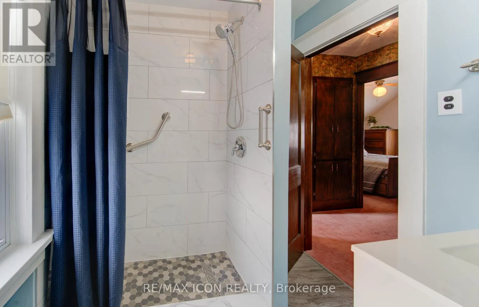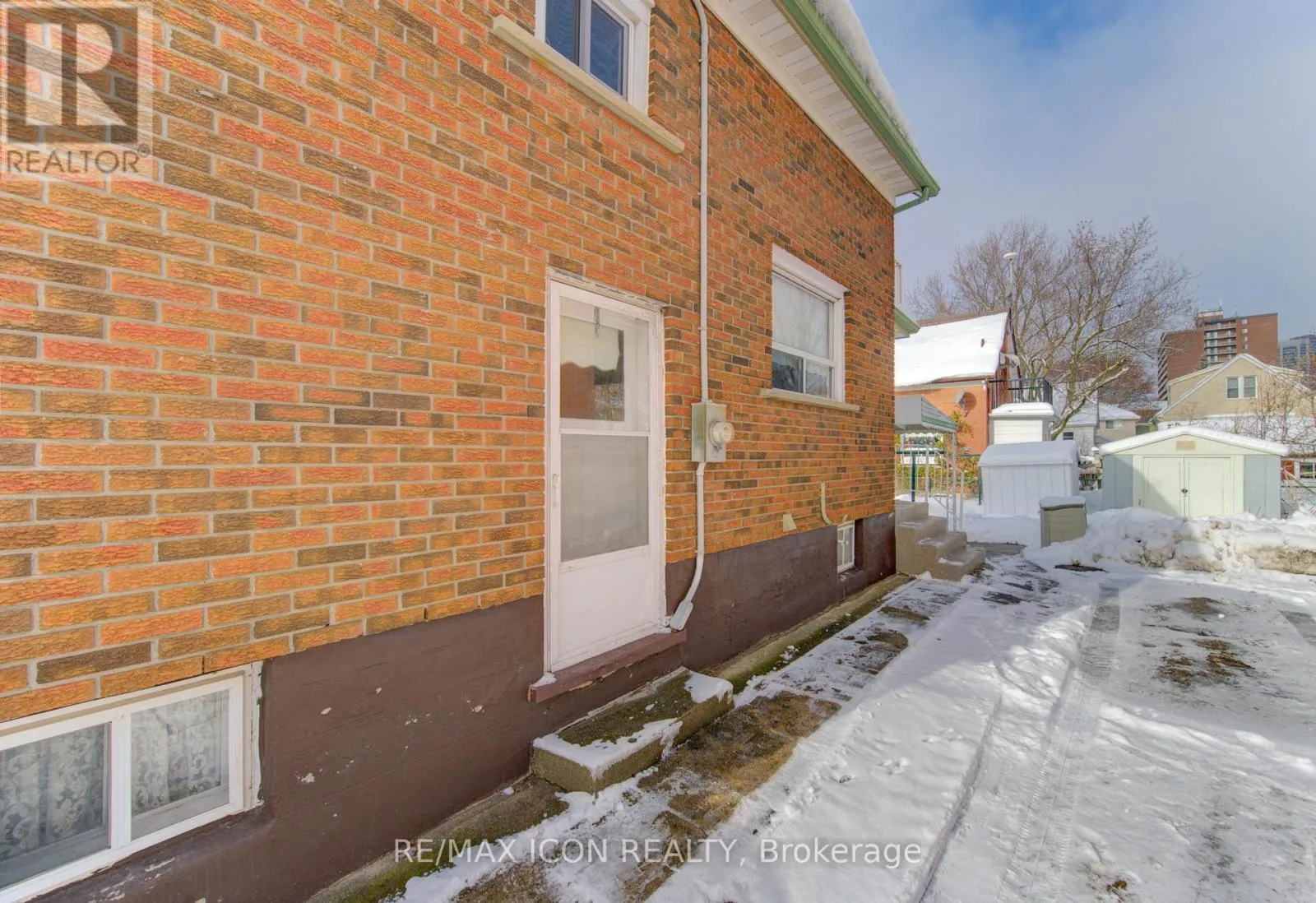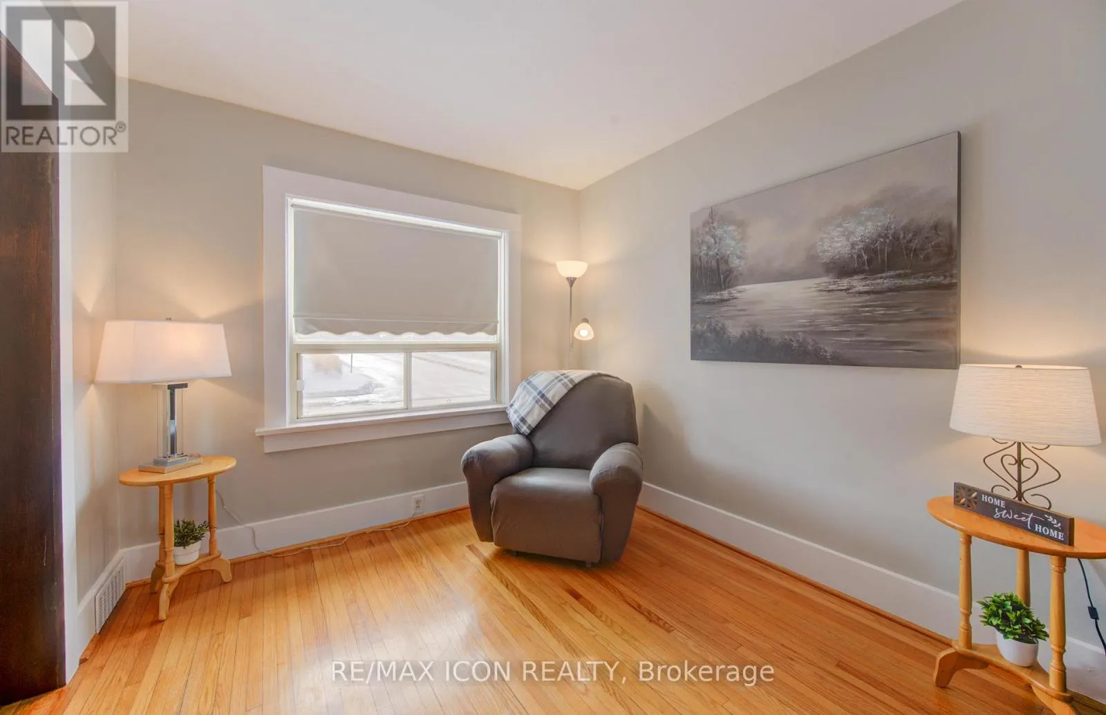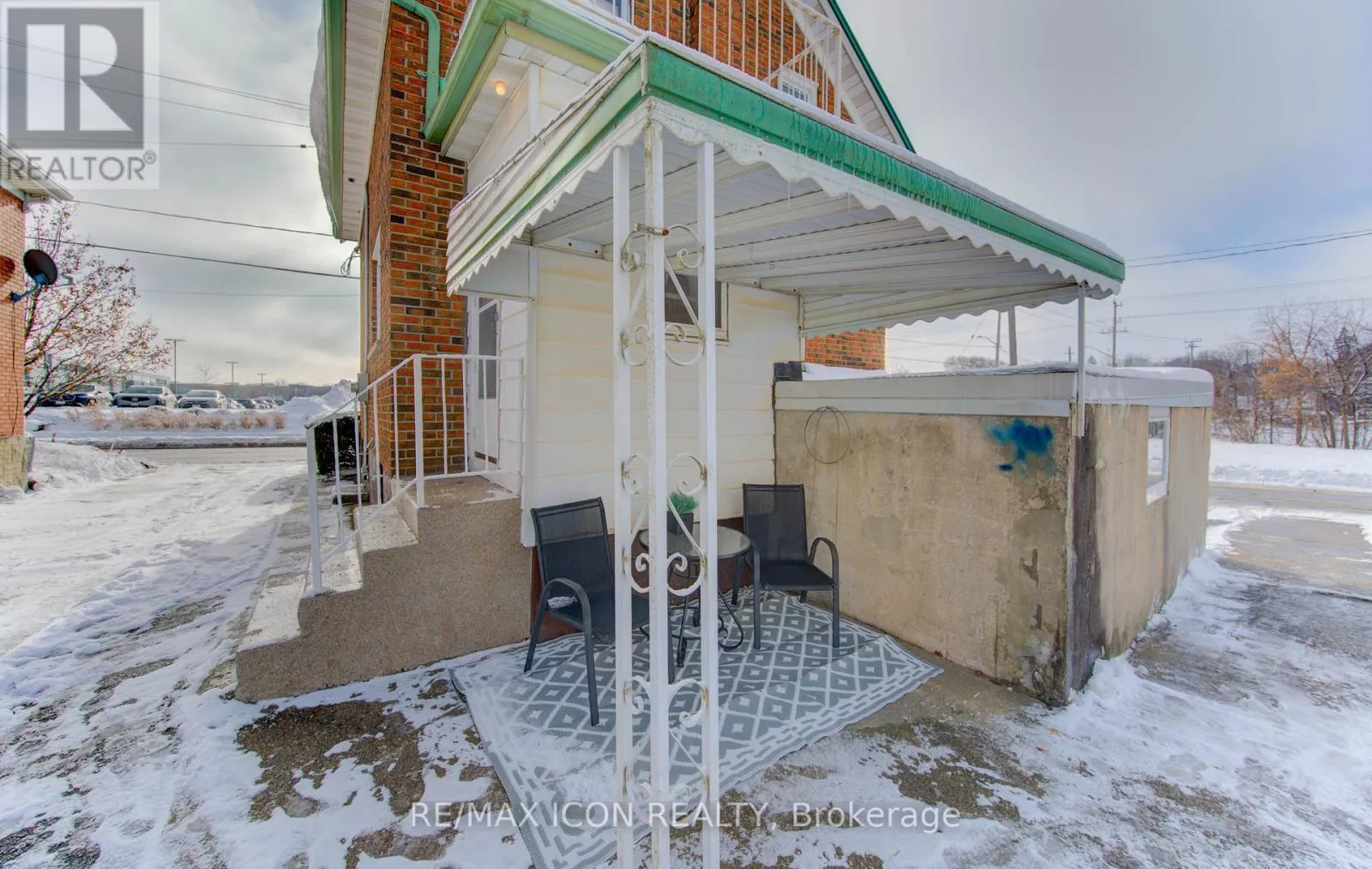 Cross Streets: Belmont and Glasgow. ** Directions: Gage st. to Eden. Charming Home Full of Character in an Exceptional Location!!? Welcome to a beautifully maintained home filled with timeless character and thoughtful updates. From the moment you step inside, you're greeted with warm wood trim, real hardwood floors in the living room, dining room and foyer, and oversized windows that fill the main level with natural light. The kitchen offers exceptional convenience with fridge, stove, dishwasher, all included-plus a double-door pantry for abundant storage. A back door entry features built-in coat closets and shoe storage, keeping everything organized. Upstairs you'll find three bedrooms, a full updated bathroom (2024) with a large walk-in shower. The primary bedroom shines with custom built-in furniture including two dressers, a desk, a double closet, and six storage drawers built right into the bed-no furniture shopping needed. The second bedroom offers a walkout to a private balcony, perfect for enjoying morning coffee. The third bedroom also has original hardwood flooring beneath the carpet, ready to be uncovered. Outside you will find a garden shed, covered sitting area and for long-term durability metal roof, Front porch and back steps finished with epoxy coating. Location is second to none-this home backs onto the Iron Horse Trail, offering immediate access to beautiful walking and biking paths. You're just steps from the vibrant Graffiti Market, famously featured on "You Gotta Eat Here." Enjoy walking distance to Uptown Waterloo, Downtown Kitchener, Grand River Hospital, and the charming shops and restaurants of Belmont Village. A bus route just outside the door adds even more convenience. This is a home where character, updates, and walkability come together perfectly-ideal for buyers looking for charm, comfort, and a truly unbeatable location. (id:27476)