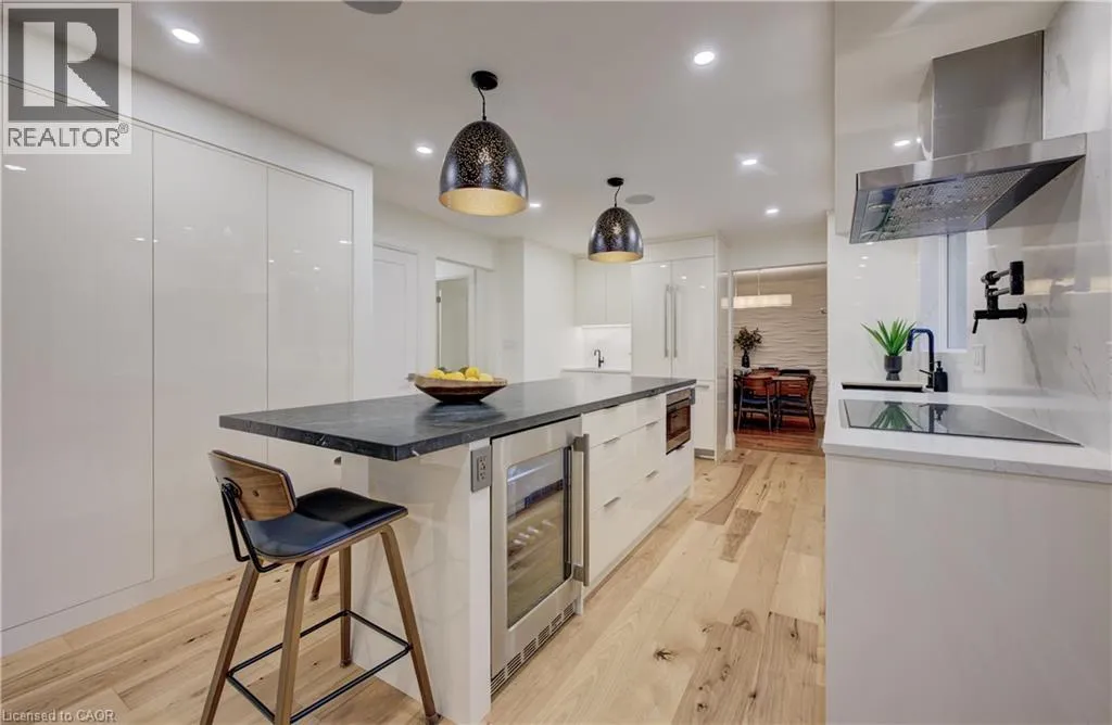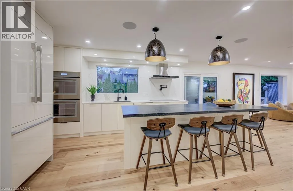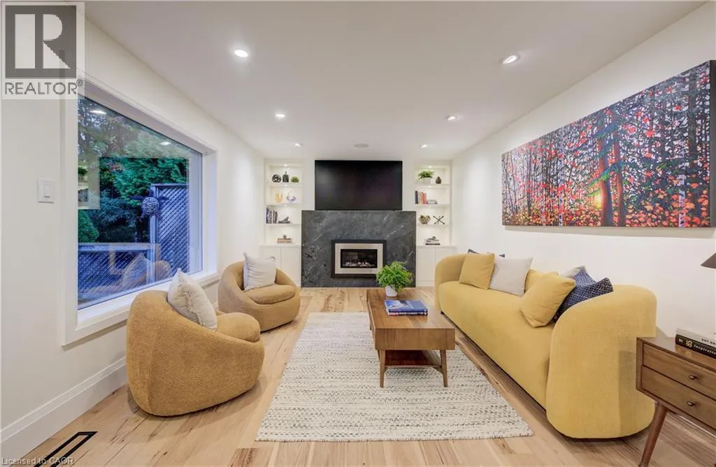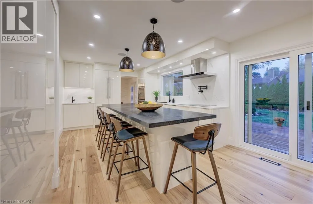 Old Post Road to Academy Cres A masterpiece of design and craftsmanship, with over 3,600 sqft of living space, this executive home in Waterlooâs prestigious Old Beechwood neighbourhood has been completely transformed with over $550,000 in professional renovations. Each level has been meticulously designed, blending timeless elegance with state-of-the-art comfort. Kitchen and basement renovations by the Canadian Home and Renovations Team. Engineered hardwood, custom millwork, and leathered granite finishes anchor a space where luxury meets technology. With a Station Earth AV system, integrated Sonos sound, and smart networking throughout, youâll know this isnât a renovationâitâs a reinvention. Curb appeal is undeniable and a ¼-acre pie-shaped lot that widens to 128 feet at the rear. The main floor blends elegance and function, featuring a dedicated home office ideal for todayâs flexible lifestyle. The open-concept kitchen/living areas impress with a leathered granite island, quartz backsplash, built-in beverage station, Thermador appliances, and a matching granite fireplace. Sunlit living spaces open to a sprawling deck with pergola dining, outdoor gas fireplace, and BBQ hookupâan effortless flow from indoor comfort to outdoor retreat. Upstairs, 4 bedrooms include spa-inspired bathrooms with heated floors, while the primary suite offers a gas fireplace, ensuite, and integrated Sonos sound. The lower level redefines recreation: a soundproofed theatre with blackout blinds/HD projection, full glass-walled gym, spa bath with sauna/double shower, custom bar with dishwasher/fridge, and den/music lounge with fireplace. Dual laundry areas on the main and lower levels add ultimate convenience. A new furnace, A/C, and tankless water heater (2022) add everyday efficiency to the elegance. Located close to Beechwood trails, Conestoga Mall, St. Jacobs Market, universities, tech hubs, and Uptown Waterlooâs dining and shopping, it offers rare privacy, prestige, and perfectionâall in one address. (id:27476)