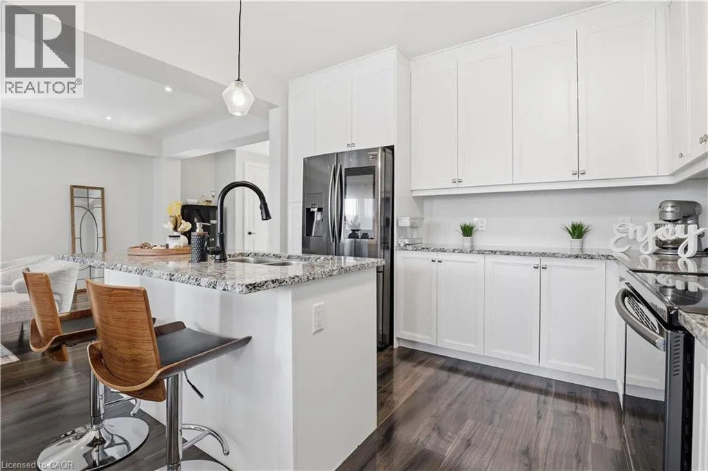 Columbia Street W/Sundew Drive Welcome to 592 Mayapple Street, Waterlooâan exceptional luxury townhouse nestled in the highly sought-after Vista Hills community. This beautiful walk-out basement home offers 3 spacious bedrooms, 2.5 bathrooms, a second floor family room and a double-car garage. The main floor features an inviting open-concept layout with 9-foot ceilings, a modern kitchen with a granite island, a bright dinette, and a warm, welcoming great roomâperfect for everyday living and entertaining. A convenient main-floor laundry room adds to the ease of daily routines. Upstairs, youâll find three generously sized bedrooms along with a family room, ideal as a home office, media room, or play area. The luxurious primary suite includes a walk-in closet and a spa-like ensuite bathroom complete with double vanities, a soaker tub, a glass shower, and a private toilet area. The walk-out basement provides endless potential for future finishingâwhether you envision a recreation room, in-law suite, or hobby space. Ideally situated just steps from scenic trails and green spaces, this home is close to top-rated schools including Vista Hills PS, St. Nicholas Catholic School, and Laurel Heights S.S. Youâll also enjoy quick access to The Boardwalk, Costco, restaurants, parks, and public transit. This is luxury, comfort, and convenience all in one. Donât miss this incredible opportunity! (id:27476)