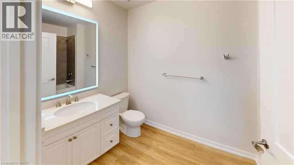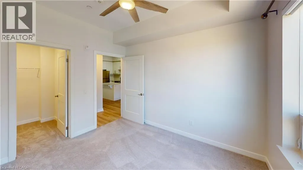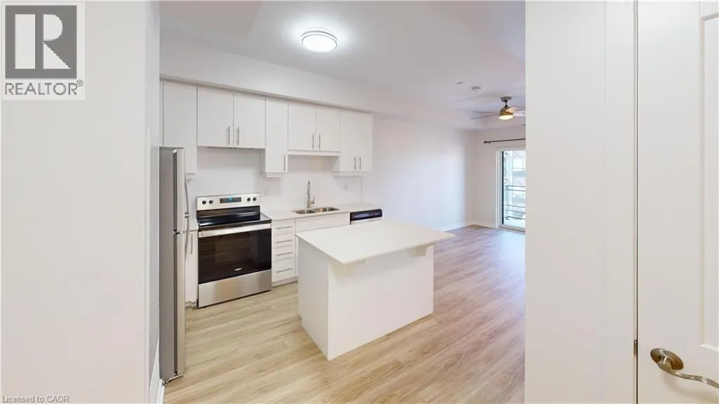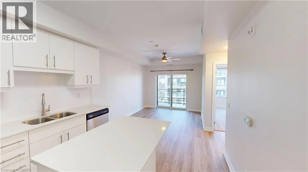 Northfield Drive and Bridge Street Experience this exquisite one-bedroom condo in Waterloo's vibrant center, where contemporary design meets sophisticated living. The south west facing orientation captures abundant sunlight throughout the day, enhancing the already stunning open-concept space. Entertain with ease in the living area where expansive windows bathe the room in natural light, creating a refreshing and spacious ambiance. The kitchen stands as a culinary masterpiece with its premium stainless steel appliances, elegant quartz countertops, stylish backsplash, and generous workspace that transforms meal preparation into a pleasure. Throughout the unit, high-end finishes and meticulous attention to detail showcase the numerous quality upgrades. The spacious balcony overlooks a serene courtyard, providing the perfect retreat for unwinding and savoring beautiful sunset views thanks to its southwestern exposure. Inside, the bedroom combines practicality with elegance, featuring an impressive walk-in closet that addresses all storage requirements. The luxurious bathroom complements the space with its inviting soaker tub and extensive counter area for added functionality. This residence embodies the perfect blend of luxury, accessibility, and refined style in an ideal Waterloo location. Enjoy proximity to Dining, Conestoga Mall, St. Jacobs Farmers Market, Rim Park and numerous other attractions, making this sophisticated condo the perfect place to call home. (id:27476)