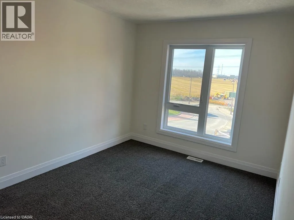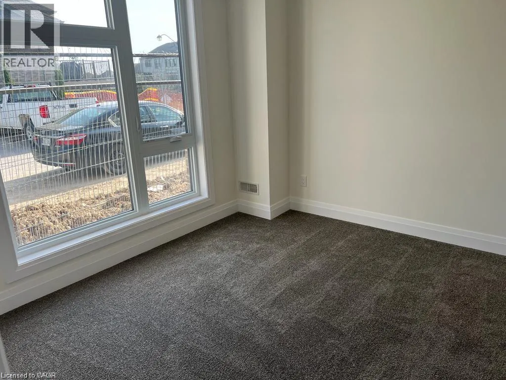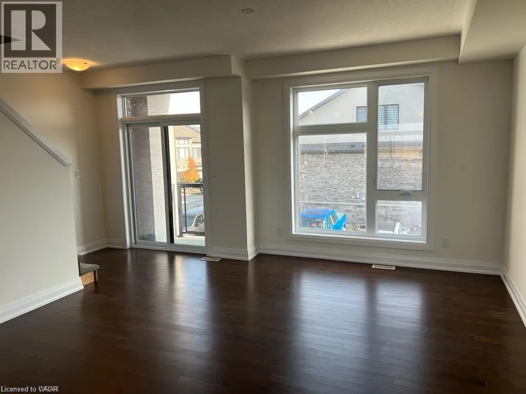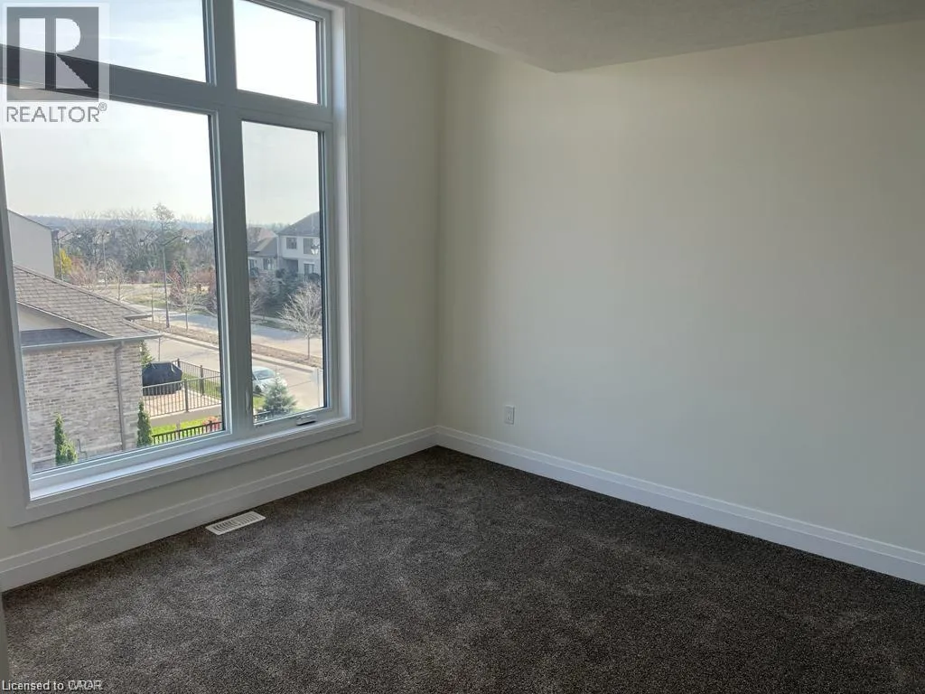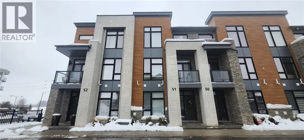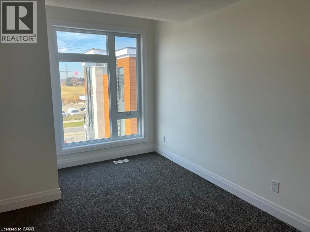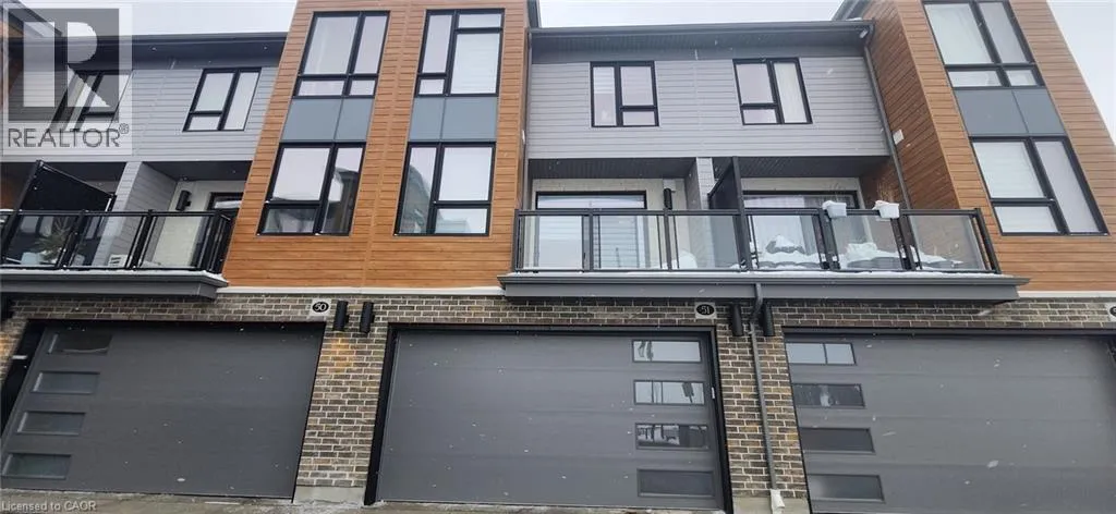 Millennium to Crossgate Welcome to this luxury Trailside Townhome located in the highly sought-after Carriage Crossing community in Waterloo! Enjoy a maintenance-free lifestyle with lawn care, landscaping, and snow removal included. This modern and elegant 4-bedroom, 4-bathroom home offers a double car garage and exceptional finishes throughout. The main floor provides a versatile office/bedroom complete with a stunning 3-piece ensuite featuring a quartz vanity and sleek tiled shower. The second level showcases an open-concept layout with a gourmet kitchen boasting an island, quartz countertops, stainless steel appliances, and a spacious walk-in pantry/storage. The adjoining great room and dining area feature warm hardwood flooring, along with a convenient 2-piece powder room and access to a balcony. On the third level, the primary bedroom offers a walk-in closet and a beautifully designed ensuite with tiled shower and quartz vanity. Two additional bedrooms share a stylish 4-piece bathroom. The upper-level laundry adds convenience, plus a second balcony for outdoor enjoyment. Situated just steps from the Walter Bean Trail, Grand River, RIM Park, Grey Silo Golf Course, and close to Conestoga Mall, Conestoga College, and University of Waterlooâthis home provides an unbeatable lifestyle with easy access to premium amenities and top-rated schools. (id:27476)
