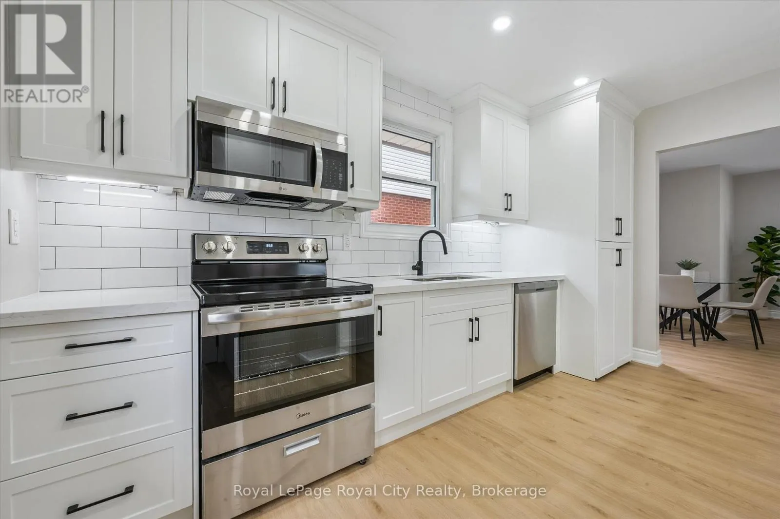 Erb St E Smart Investment Opportunity in Waterloo! This turn-key bungalow with legal ADU is a dream for investors or savvy end-users looking to offset their mortgage with rental income. Fully renovated and featuring a legal 2-bedroom basement apartment, this property offers parking for up to 5 vehicles - a rare find in such a prime location. Just minutes from Wilfrid Laurier University and the University of Waterloo, its ideally positioned to attract consistent, high-quality tenants year after year. Extensive updates mean peace of mind for years to come, including new electrical, plumbing, furnace, AC, and roof. The main level showcases luxury vinyl plank flooring throughout, with a sunlit living and dining area, recessed lighting, and a stylish kitchen with quartz counters and brand new stainless steel appliances. Three generously sized bedrooms and two full baths - including a private ensuite - complete the upper unit. Downstairs, the bright and well-finished lower apartment features the same quality flooring, its own laundry, and a practical layout for students or professionals. A fenced backyard offers green space for kids, pets, or summer entertaining. Whether you're looking to add to your portfolio or live upstairs while generating income below, this property checks all the boxes. Invest with confidence - this one is ready to go. (id:27476)