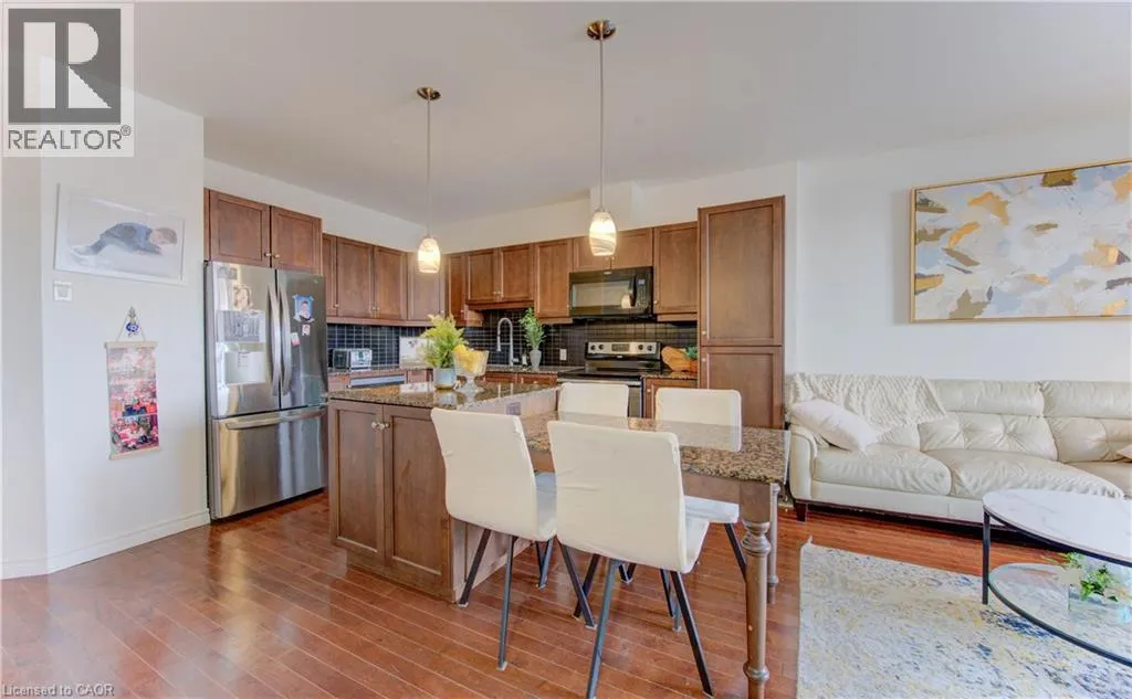 Intersection of Erb and Westmount Warm, welcoming, and easy to live in, this 2-bedroom, 2-bath condo at 223 Erb Street West offers the kind of lifestyle that makes condo living so appealing. The open-concept layout blends a well-appointed kitchen with granite counters, rich cabinetry, and a central island into a bright living and dining space that flows effortlessly onto a private balcony, perfect for morning coffee or winding down at the end of the day. Both bedrooms are generously sized, including a primary suite with its own ensuite, while thoughtful finishes and natural light create a calm, comfortable feel throughout. Beyond the suite, the building elevates everyday living with amenities that extend your space, including a fully equipped gym, party rooms for entertaining, and a rooftop patio where you can relax, socialize, or take in the surroundings. Set in one of Waterlooâs most convenient and walkable locations, you are steps from Uptown shops, cafes, restaurants, trails, and transit, making it easy to stay connected while enjoying the simplicity of condo living. This is a home that balances comfort, convenience, and community, right where you want to be. (id:27476)