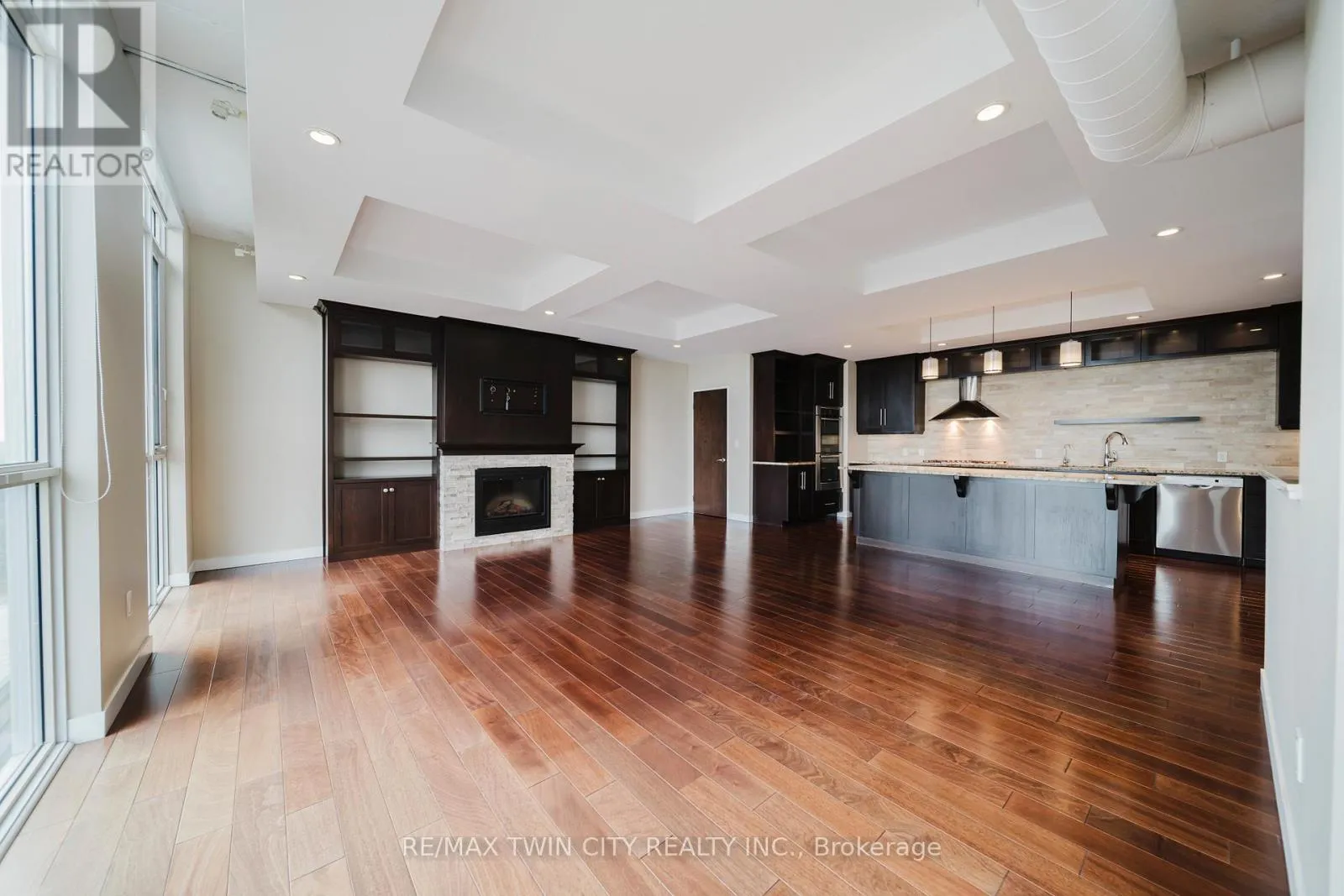 Cross Streets: John Street West & Caroline Street South. ** Directions: King Steet to John Street West to Caroline Street South. Discover an exceptional leasing opportunity in Uptown Waterloo's sought-after Bauer Lofts. This expansive 2-bedroom, 2-bathroom residence offers nearly 1,800 sq. ft. of thoughtfully designed living space, created by seamlessly combining two suites into one impressive home. Enjoy premium finishes throughout, including rich hardwood flooring, modern lighting, and a spacious, open layout ideal for comfortable everyday living. The chef-inspired kitchen features high-end built-in appliances, a gas cooktop, sleek cabinetry, and an oversized island-perfect for cooking, hosting, or working from home. A generous walk-in pantry adds outstanding storage and convenience. The large south-facing balcony extends your living space outdoors, offering a great setting for relaxing, dining, or enjoying morning coffee in the sun. The primary bedroom is a peaceful retreat with custom motorized blinds, balcony access, and a beautifully updated ensuite with a double vanity, walk-in glass shower, and deep soaker tub. Additional features include two underground parking spaces and a large storage locker. Located in the heart of Uptown Waterloo, Bauer Lofts places you steps from restaurants, cafes, shopping, and transit-making it the perfect blend of luxury and urban ease. A rare opportunity for those seeking space, style, and convenience in a premier Uptown location. (id:27476)