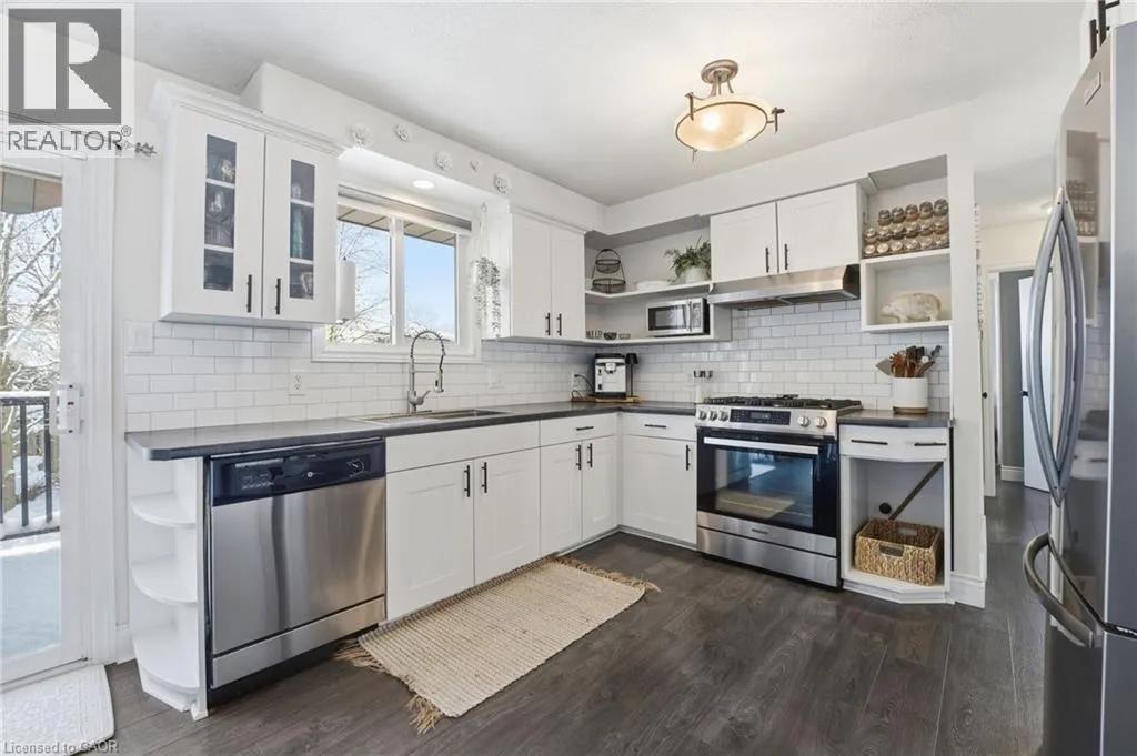 Northfield Dr W to Highpoint Ave to Lakeview Dr to Pineridge Rd Welcome to 627 Pineridge Rd, a charming 3-bedroom, 2-bath brick raised bungalow located in a sought-after Waterloo neighbourhood. This well-kept home offers bright, inviting living spaces filled with natural light, creating a warm and welcoming atmosphere from the moment you step inside. At the heart of the home is a gorgeous, updated modern kitchen, thoughtfully designed with contemporary finishes, ample cabinetry, and generous counter space-perfect for both everyday living and entertaining. Recent updates also include an updated furnace for added peace of mind, while the beautifully refreshed deck overlooks a fully fenced backyard-ideal for children, pets, gardening, or hosting summer gatherings. The lower level provides additional versatile living space, well-suited for a family room, home office, or recreation area. Ideally situated close to schools, parks, shopping, transit, and a variety of everyday amenities, this home offers both comfort and convenience in a fantastic location. With appliances included and pride of ownership evident throughout, this move-in-ready property presents an excellent opportunity for buyers seeking a solid home in a desirable community. (id:27476)