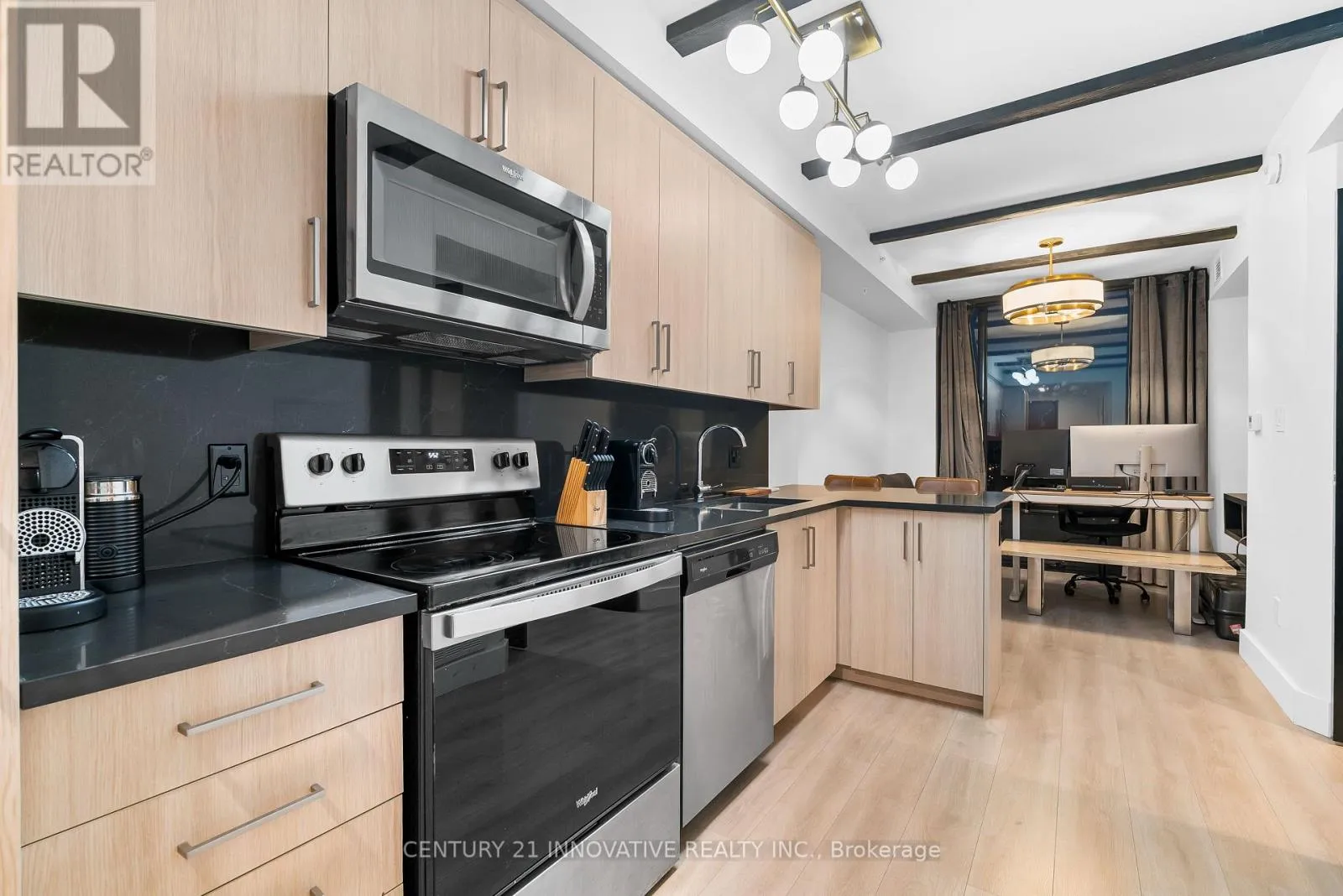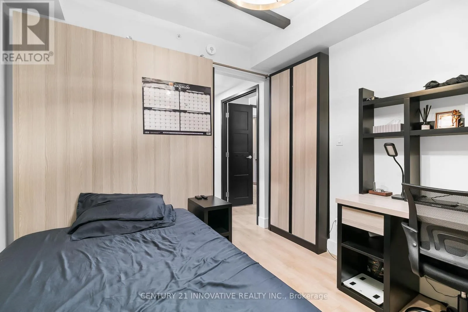 Columbia St, Phillip St Modern. Elevated. Exceptionally located. This contemporary 12th-floor suite at Society 145 sits in the heart of Waterloo's University District, directly across from the University of Waterloo and minutes to Laurier, Uptown, and the LRT. Featuring an open, light-filled layout with floor-to-ceiling windows, exposed concrete ceilings, laminate flooring, and pot lighting. The sleek kitchen offers quartz countertops and stainless steel appliances, while the enclosed den functions perfectly as a second bedroom. Enjoy world-class amenities including an on-site Starbucks, fitness centre, yoga studio, basketball court, sauna, rooftop terrace, study lounges, and 24-hour security. A smart opportunity in a high-demand location. (id:27476)