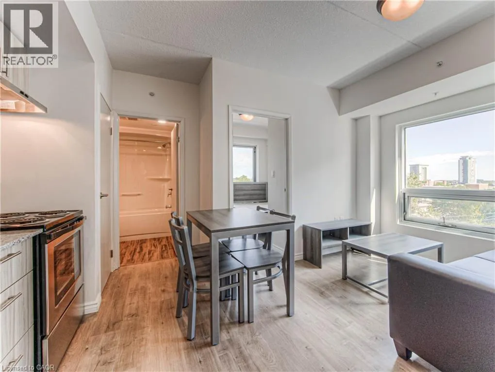 Corner of Hickory and Hemlock, steps to WLU's Lazaridis Business Building One Month Free Rent! Welcome to The Block, Waterlooâs premier Live-Work-Play-Learn address. This beautifully designed 1-bedroom plus den suite offers a modern, open-concept layout with upscale finishes, ideal for professionals, graduate students, or anyone seeking a vibrant lifestyle in the heart of Waterloo. This 519 sq ft , double occupant unit features a spacious den with a window, perfect for a home office or guest space. The open-concept kitchen and living area is thoughtfully laid out to maximize space and comfort. The kitchen and bathroom are finished with granite countertops, and the flooring includes plank laminate wood throughout the living areas and ceramic tile in the bathroom. The suite includes a five-piece appliance package and in-suite laundry with a stackable washer and dryer. Oversized low-E argon windows provide ample natural light, and knock-down texture ceilings add a modern touch. Climate control is fully individualized, allowing you to set your own heating and cooling preferences. The unit is also pre-wired for high-speed internet, cable, and telephone. Residents of The Block enjoy access to a wide range of amenities, including a games room, theatre room, business centre, gym and yoga studio, and multiple common and amenity rooms. A rooftop terrace offers stunning views and a great space to relax or socialize. The building also features bicycle storage, upgraded elevators, ceramic flooring in common areas, high-efficiency lighting, and secure buzz board/intercom access with security cameras. Located within walking distance to Wilfrid Laurier University and the University of Waterloo, this property is also close to Uptown Waterloo, the LRT, restaurants, and tech hubs. Itâs an ideal location for students, professionals, and remote workers alike. (id:27476)