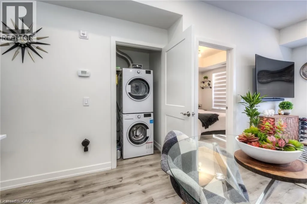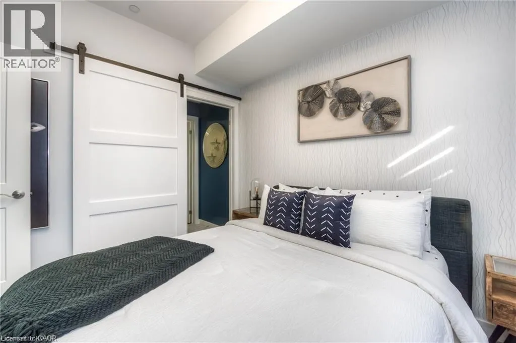 Northfield Drive between Bridge St and Davenport Road Amazingly upgraded two-bedroom, two full bath unit at the Blackstone Condos in Northeast Waterloo - close to Conestoga Mall, the LRT, with restaurants and amenites just steps away and everything need in walking distance. This unit has been upgraded with quartz in the kitchen and bathrooms, glass shower doors, potlights, stylish finishes, barn door sliders, decorative shelving, closet organizers, custom blinds and decorative wallpaper. Internet and heat included with your unit; tenant pays electricity and water. Add an east-facing balcony for morning coffee and you have all you need! Excellent location on the second floor, you have the option to just scoot up the front stairwell and straight to your unit, or you can enter through the fancy lobby and lounge, past the gym and board room via the elevator. Exercise room and amazing party room on site. In suite laundry and one above ground surface parking space right near the entrance included. Available Feb 1/26! (id:27476)