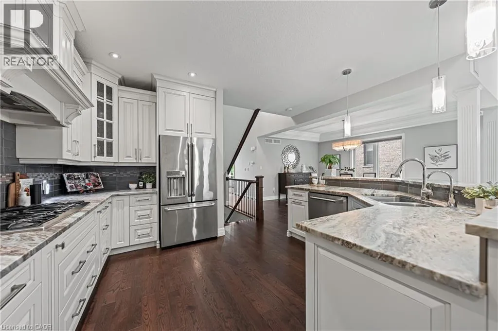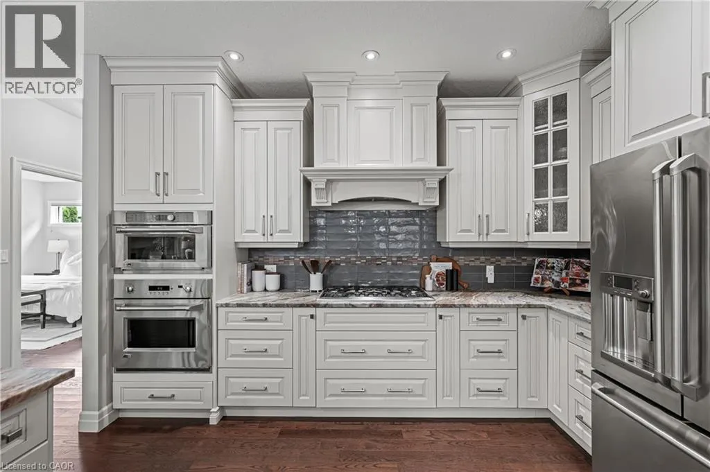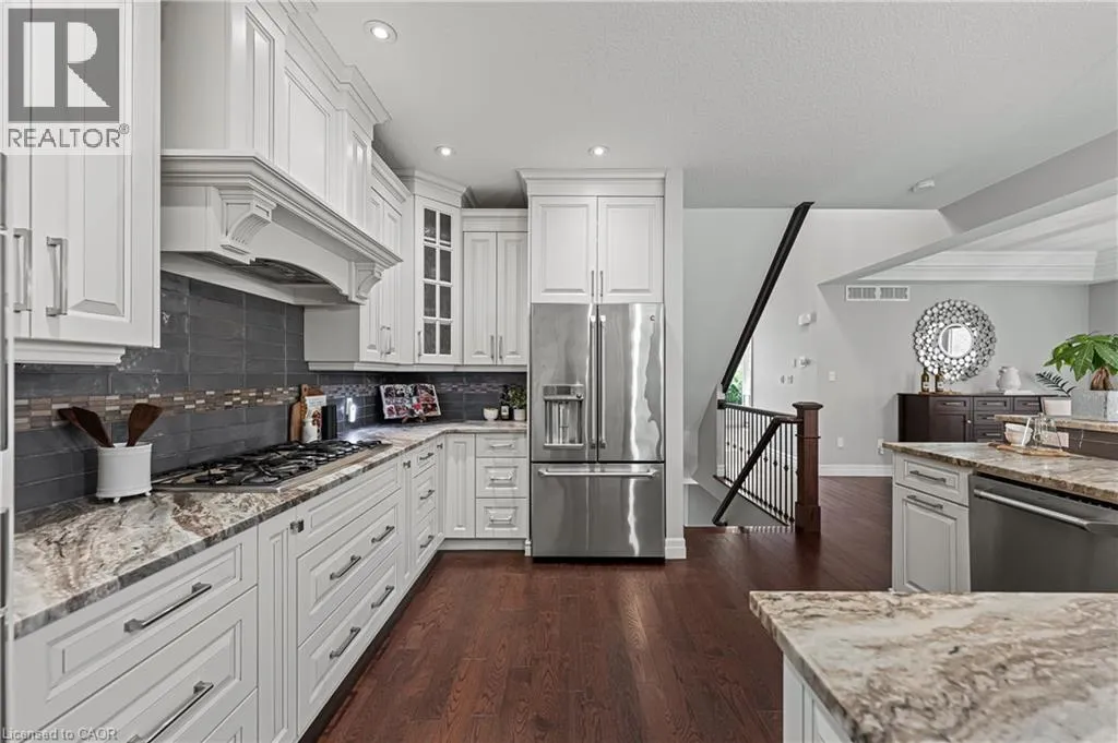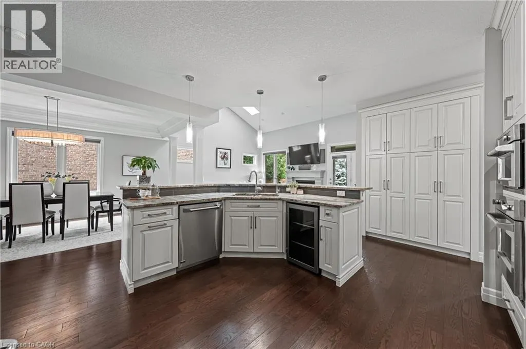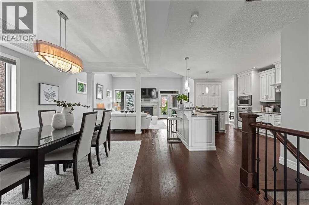 MILLENNIUM BOULEVARD TO OAK PARK DRIVE, THEN DEERFOOT TRAIL. A rare offering in prestigious Carriage Crossing. This custom-built executive bungaloft, among the few of its kind in Waterloo, combines the ease of main-floor living with the space and functionality of a two-storey design. With 4+1 bedrooms, 4 bathrooms & over 4,300 SF of finished living space, this home is filled with thoughtful upgrades & timeless finishes throughout. A welcoming main entry with soaring ceilings opens to an elegant open-concept layout. The chefâs kitchen features granite counters, a breakfast bar, pantry, backsplash & high-end stainless-steel appliances. The kitchen flows into a formal dining room with a double tray ceiling, & seamlessly into a grand great room with vaulted ceilings, a stone-cast gas fireplace & direct access to the covered porch & patio. The luxurious main-floor primary suite offers a tray ceiling, walk-in closet, private access to the backyard & patio, & a spa-inspired 5-piece ensuite with granite counters, heated floors, tiled glass shower & jacuzzi tub. A second main-floor bedroom/home office includes a tray ceiling & custom built-ins. A mudroom & 2-pce bath completes this level. The upper loft features two spacious bedrooms, a 4-pce bathroom & lounge area. Designer lighting, pot lights, hardwood flooring & porcelain tile, fresh paint, new carpet & updated finishes are showcased throughout. The fully finished basement expands the living space with a large rec room featuring a gas fireplace with ledgestone surround, a wet bar, games area, fifth bedroom, 4-pce bath, exercise area, full laundry room & abundant storage-potential for in-law/multi-gen living. Outside, the professionally landscaped grounds offer an aggregate driveway, fenced yard, covered porch, large patio, mature trees & perennial gardens. Over-sized garage. Walk to RIM Park, Grey Silo Golf Club, scenic trails & top-rated schools. Just mins to universities, workplaces, markets, shopping & convenient HWY access. Don't miss out on making this exceptional home yours! (id:27476)