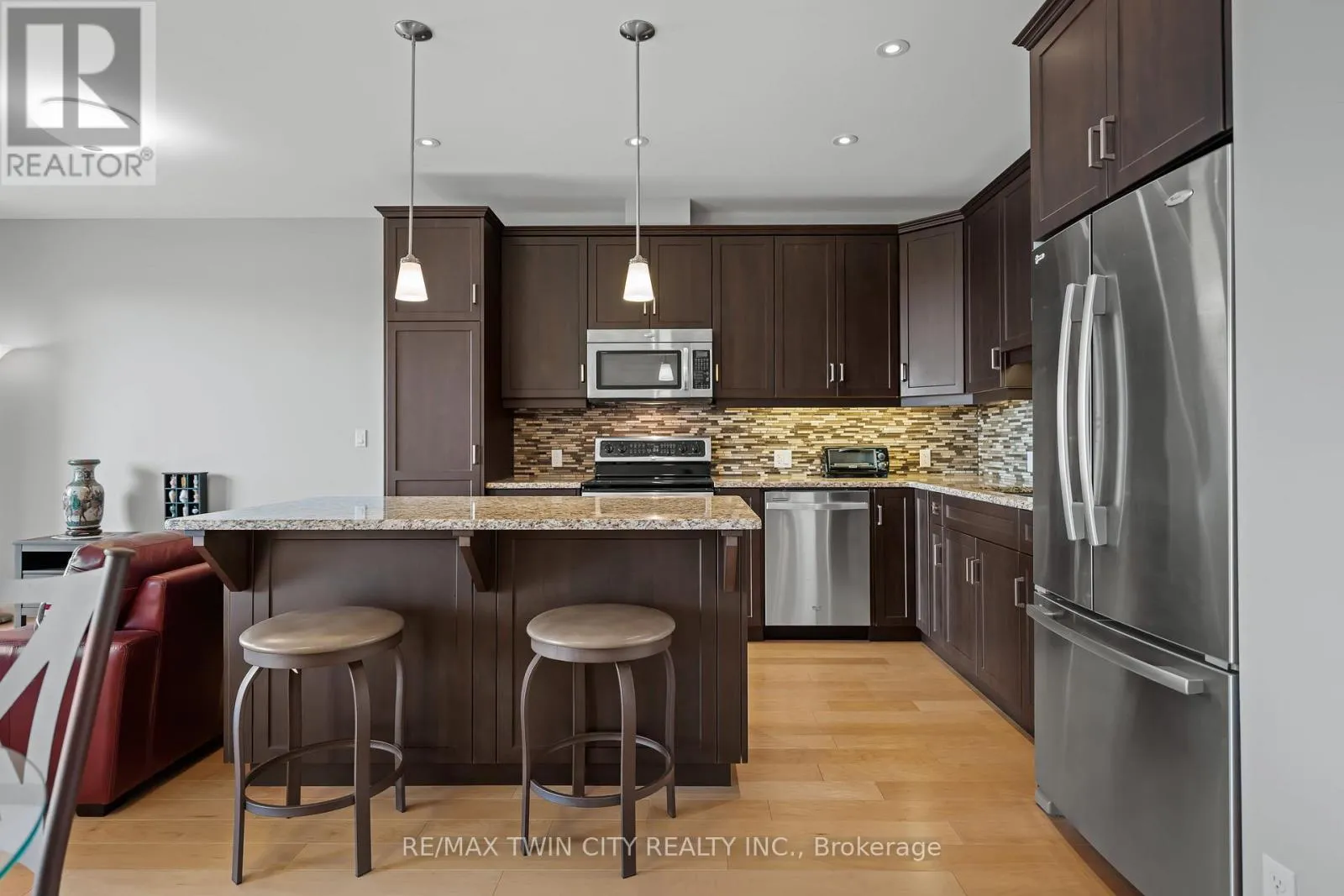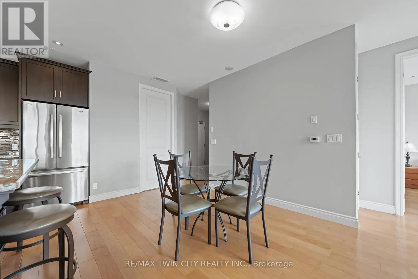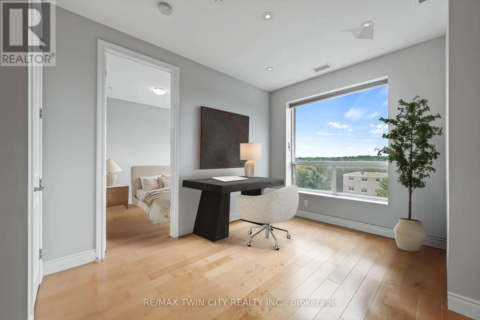Cross Streets: WESTMOUNT ROAD S. ** Directions: WESTMOUNT ROAD S TO ERB STREET W. Experience upscale condo living at the Westmount Grand, one of Waterloo's most prestigious addresses! This impressive west-facing 1-bedroom + den, 2-bathroom suite combines luxury, comfort, and convenience in the heart of Uptown Waterloo. Inside, you'll find 9' ceilings, a spacious open-concept kitchen with island, granite counters, stainless steel appliances, under-cabinet lighting, and a stylish backsplash. The expansive living and dining areas are framed by large windows, filling the space with natural light and showcasing panoramic city views. A bonus flex space offers the perfect spot for a home office. Hardwood flooring flows seamlessly throughout the main living area, adding warmth and elegance. The oversized primary bedroom is a true retreat, featuring a large window, dual closets, and a 5-piece spa-inspired ensuite. Additional highlights include a second full bathroom, in-suite laundry, and a storage room. Step out to the spacious covered balcony to take in spectacular sunsets! This unit also includes one underground parking space and one locker. Residents of Westmount Grand enjoy an array of first-class amenities: a rooftop terrace, library, fitness centre, sauna, entertainment room, and secure underground parking. Perfectly located, you'll be steps from Uptown Waterloo's restaurants, shops, and parks, and just minutes from the University of Waterloo and Wilfrid Laurier University. Luxury, lifestyle, and location-this condo has it all! (id:27476)