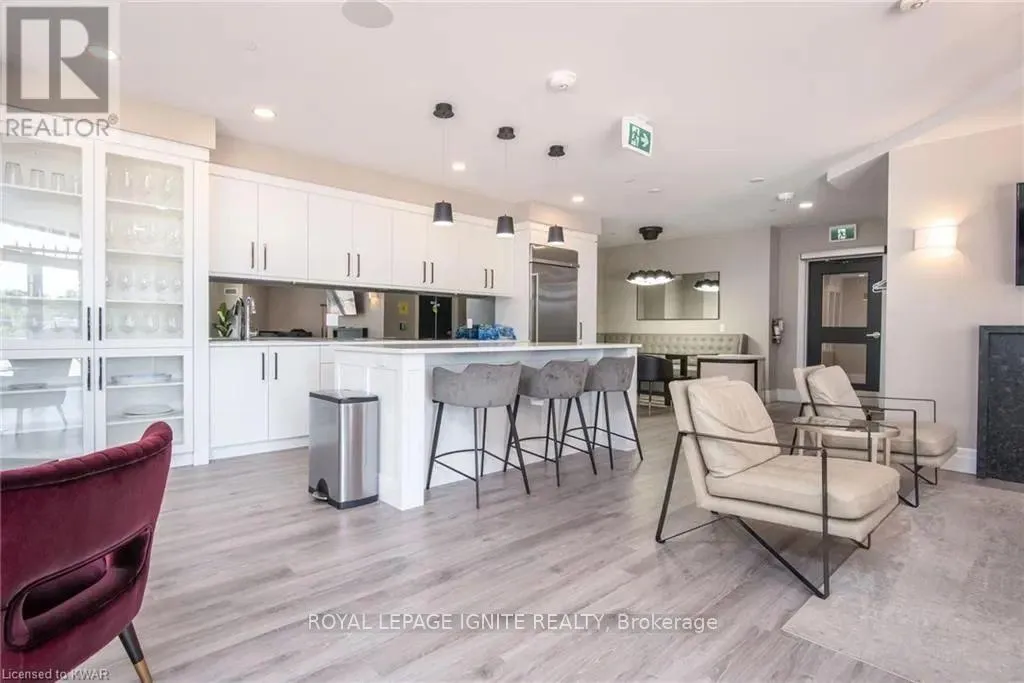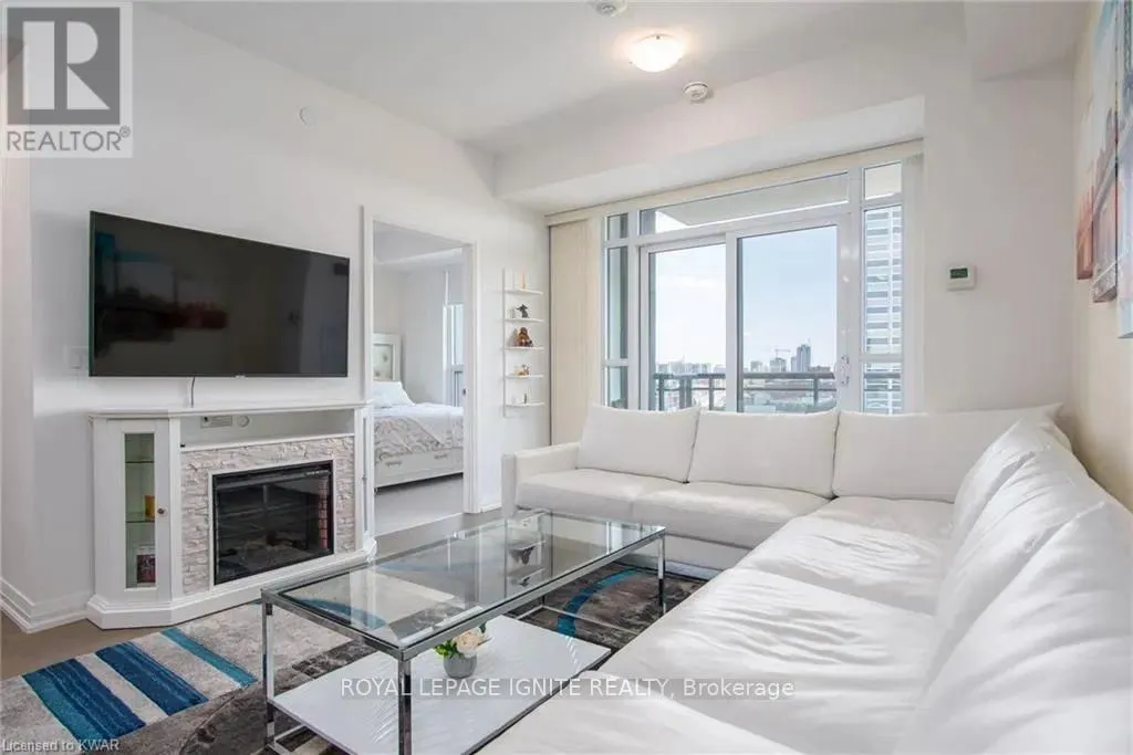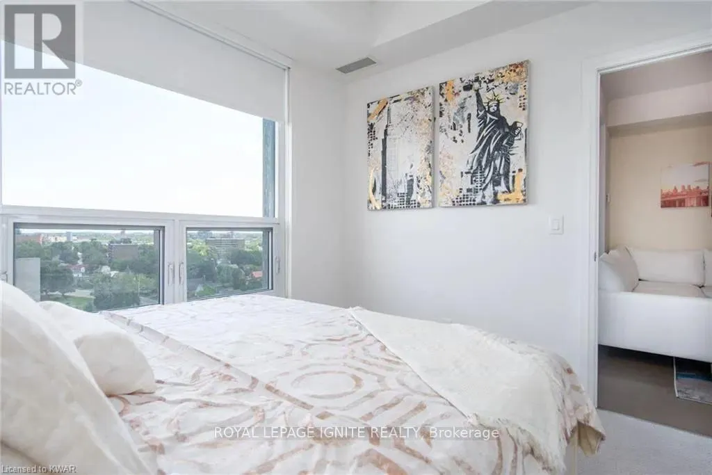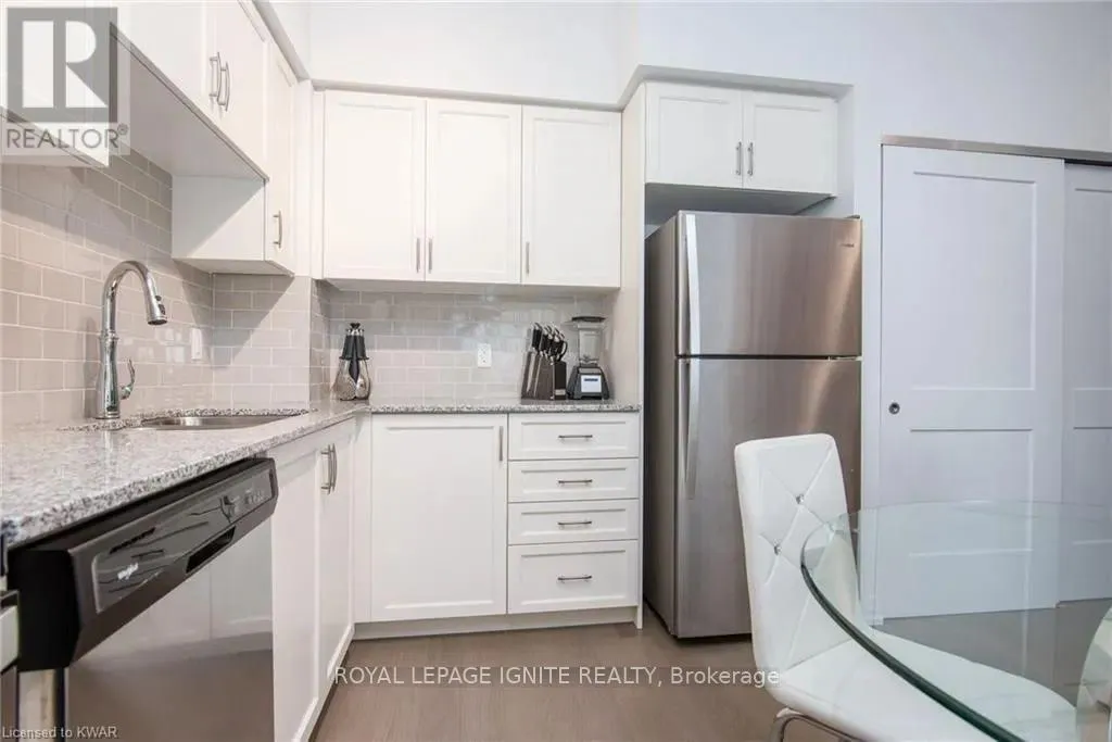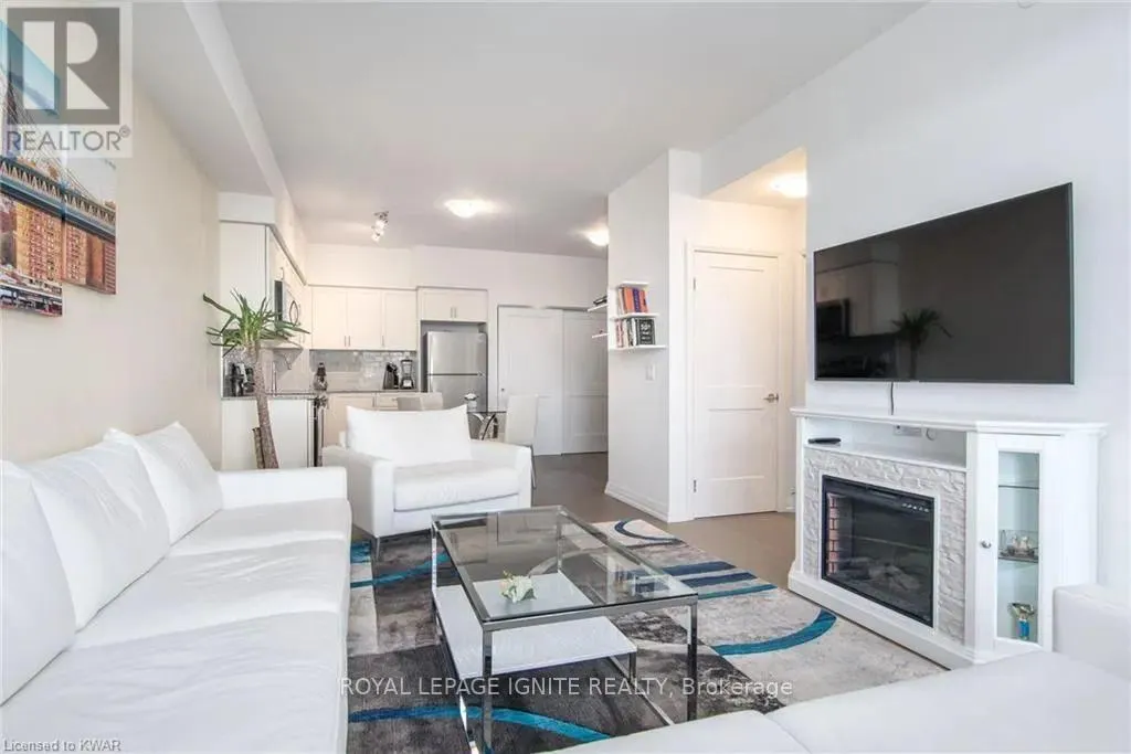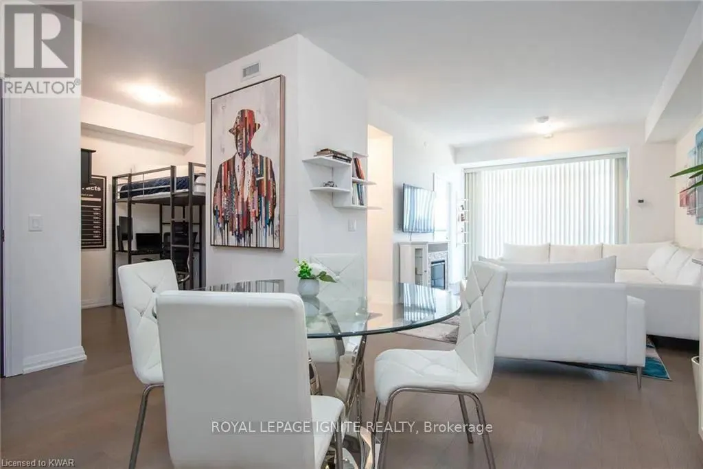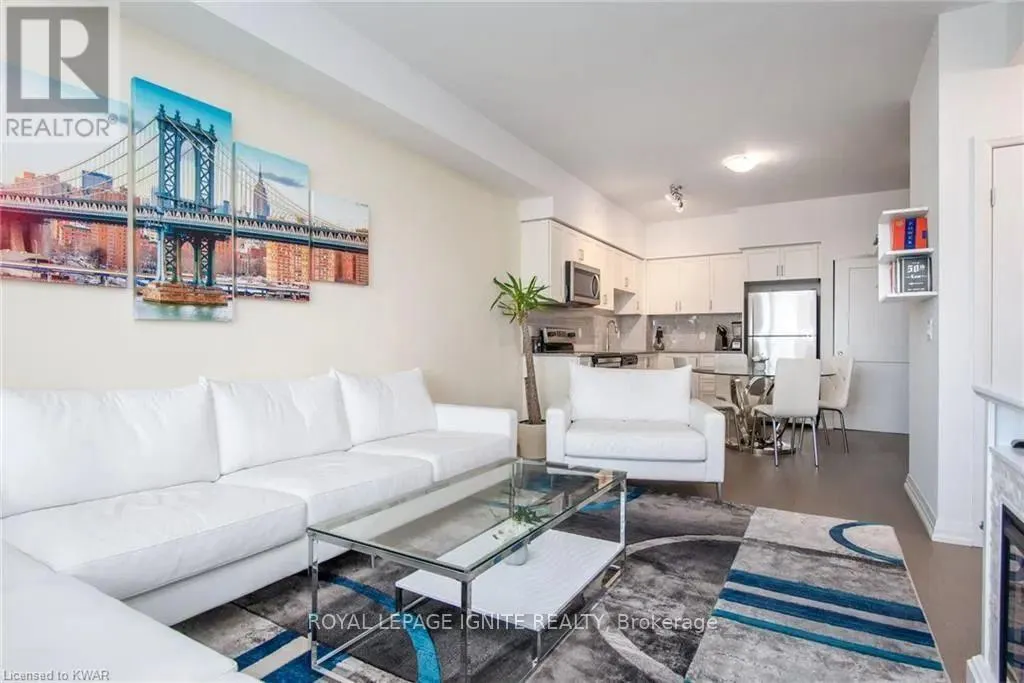 Caroline St & John St Located in the heart of Uptown Waterloo, this well-maintained one-bedroom plus den unit is part of the highly sought after Caroline Street Private Residences. Step into a bright and modern open concept living space designed for comfort and functionality. The living room features custom-built furniture that fits the space perfectly, creating a warm and stylish atmosphere. The kitchen offers quartz counter tops, soft close cabinetry, and stainless-steel appliances, seamlessly opening to the living area-ideal for entertaining. Enjoy direct access to the balcony, where you can take in stunning city views. The primary bedroom includes a walk-in closet, adding extra convenience and storage. This unit also comes with a locker and an underground parking space. Unbeatable location just steps from Uptown Waterloo's best bars, restaurants, and upscale shopping, with Vincenzo's and Bauer Kitchen right next door. With the LRT right outside your door, getting around the city is effortless perfect for those seeking both lifestyle and convenience. (id:27476)