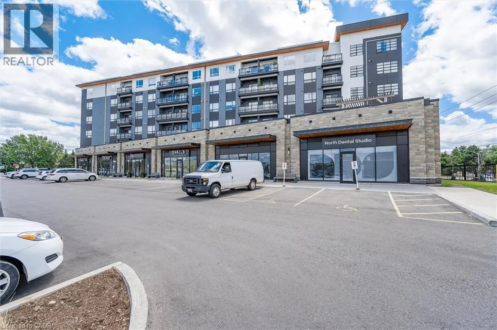Northfield to entrance Welcome to your new home at the prestigious Blackstone building in Waterloo! This stunning one bedroom condo offers luxury living at its finest. Step into a modern space with high-end finishes including stainless appliances, sleek quartz countertops, and a spacious walk-in closet. This unit also comes with an owned storage locker and a conveniently located parking spot, W6 - the closest parking space to the front doors of the building, ensuring a hassle-free experience every time you come home. Condo fees include water and internet as well. Blackstone's amenities are second to none, with a fitness centre to keep you active, social rooms for entertaining guests, a co-working space with meeting rooms for your business needs, and even a pet wash station for your furry friends. Outdoor enthusiasts will love the courtyard with a hot tub, fire bowl, BBQ area, and harvest table - perfect for enjoying the fresh air. And don't forget about the rooftop terrace with lounge seating and BBQ facilities, offering stunning views of the city skyline. Experience convenience, luxury, and a vibrant community lifestyle at Blackstone. (id:27476)