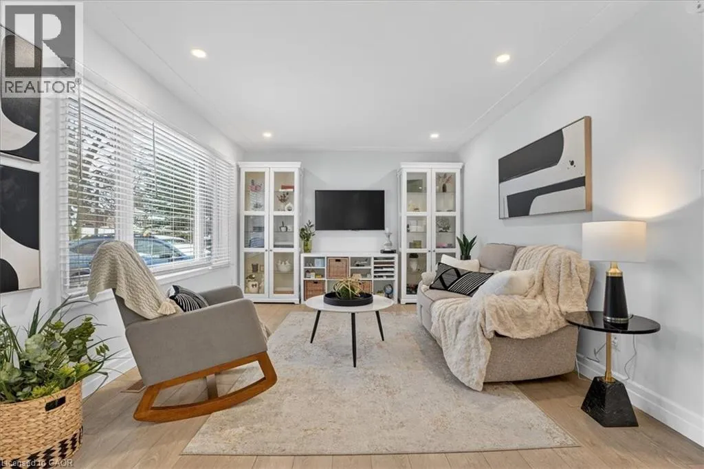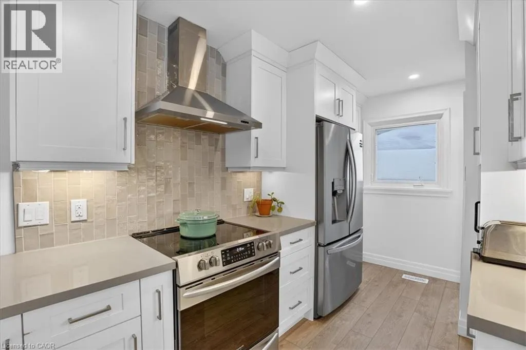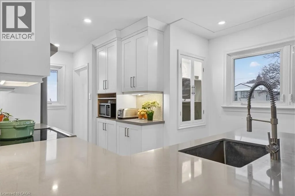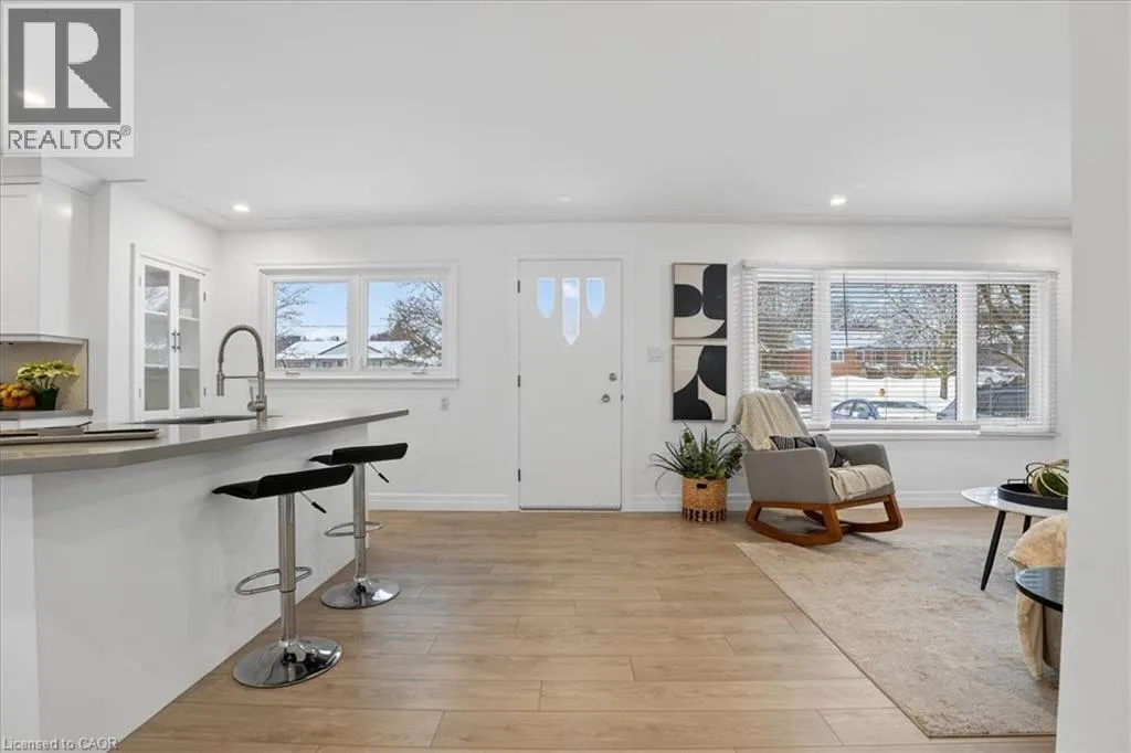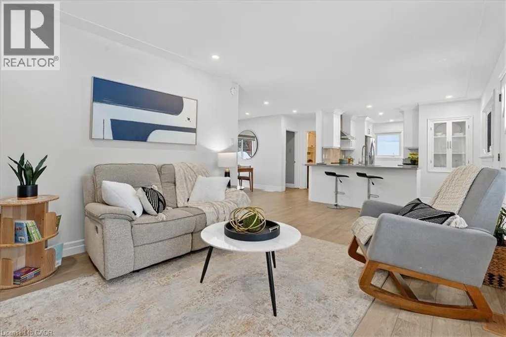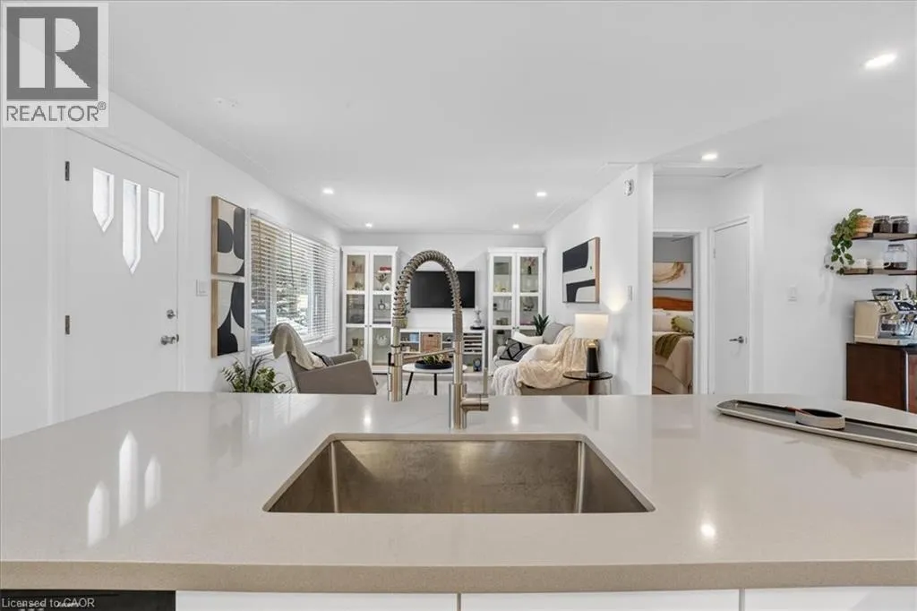 Brighton Street - or Noecker Street to Elgin Crescent Check out this beautifully renovated bungalow in Waterlooâs Uptown neighbourhood. You can walk to the universities, shopping and Uptown Waterloo, plus it has easy access to the expressway. All renovations have been completed in the past 4 years. The elegant kitchen (design/install by Choice Cabinets) is super functional with tons of cabinets, quartz countertops and stainless steel appliances. The peninsula doubles as a breakfast bar for people on the go. The open concept layout has abundant natural light and easy access to the backyard. The primary bedroom is spacious with a double closet. The updated 4 pc bath is tucked away by the nursery room. The décor is modern yet comfortable. The laundry room is amazing with built in cabinets, a laundry sink and well designed storage. The 3 pc bath features a floating vanity and glass shower. The storage room was previously a bedroom, please note the exit window. The lower spare bedroom could be used as a home office or childâs playroom. The mechanical room has the gas furnace (2015), rental water tank, water softener (rebuilt 2021) and more storage. There is a 100 amp breaker panel. The City of Waterloo has installed new sewer and 2 inch water lines in 2023. The seller installed a new sump pit/pump which is tied into the original weeper tile. There is a cold room great for storing perishables. Outside you will find a new 18 x 15 deck, a large fully fenced backyard lined with mature trees. There is ample room for a larger shed/outdoor kitchen or potential detached garage. The driveway is new and can park 5 cars. This home has been renovated with care and attention to detail, you will enjoy it for many years to come. (id:27476)