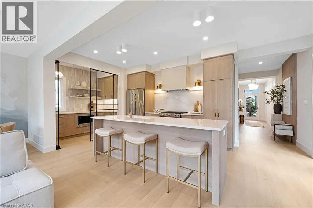 Erb Street W to Westhaven Street Experience thoughtful design and quality finishes in this 2,297 sq. ft. new build. This home features 4 spacious bedrooms, 2.5 modern bathrooms, 9 ft ceilings, and a double car garage, providing practical space for everyday living. The custom kitchen includes quartz countertops, included appliances, and a functional butlerâs kitchen separated by a stylish glass partition. A custom fireplace with textured tile and wood-tone paneling creates a warm focal point in the main living area, while a second fireplace with a Micro cement finish adds character to the upper-level flex space. Upgrades continue throughout the home, with engineered hardwood on the main floor, carpet-free laminate upstairs, and premium fixtures and hardware throughout. A convenient side entrance opens into a thoughtfully designed mudroom with custom built-in bench seating, hooks, and integrated storage, creating an organized and welcoming transition into the home. The primary suite includes a balcony, perfect for a quiet morning coffee, and a spa-inspired ensuite with elevated finishes. The basement features 9 ft ceilings, providing excellent potential for a bright future living space, recreation area, or home gym. Large windows invite natural light into every corner, and the landscaped exterior with a concrete pad creates a ready-to-enjoy outdoor space. Conveniently located near Ira Needles and The Boardwalk shopping area, this home offers easy access to cafés, shops, and more. This home delivers thoughtful upgrades, functionality, and a modern feel across every level. (id:27476)