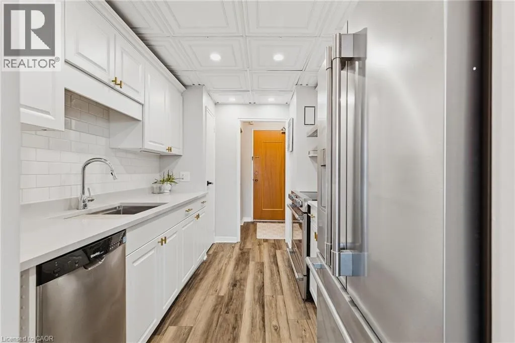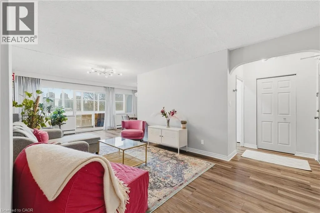 Erb or University Ave to Westmount Rd Welcome to 45 Westmount Road N, Unit 302, a spacious, beautifully designed condo in one of Waterlooâs most walkable, connected, and vibrant pockets, just steps to Waterloo Park, Westmount Plaza, and both UW and Laurier. Itâs a standout opportunity for a first-time buyer, investor, or downsizer who still wants real space, square feet and plenty of storage. Enjoy big-city convenience with small-town comfort with parks, trails, transit, shops, amenities and takeout all right outside your door. Inside, youâre welcomed by an open-concept layout, charming rounded doorways, and an entry closet for coats and boots. The flow from kitchen to dining to living is effortless, perfect for game nights, dinner parties, or family get-togethers. Large windows and an enclosed balcony bring in tons of natural light, while the living room is built for entertaining with custom built-ins, a beautiful countertop feature, and a beverage fridge. Gold-toned accents and updated lighting add warmth and style throughout this one of a kind condo. The kitchen is designed with cooks in mind, featuring a large fridge, stainless steel appliances, custom pull-out storage, a pantry, and a workstation sink. Updated ceilings, a feature wall, and tasteful upgrades make the whole unit pop. The bedroom offers extra-large windows and enough space for a king-size bed plus side tables and a dresser and still room for activities. The full bathroom is gorgeous with beautiful tile flooring and stunning features. Best of all, the condo fee includes heat, hydro, water, exterior parking, and storage which means no utility bills. An additional underground parking spot is also available to lease for $50/month. This could be your opportunity, come see this beautiful home today (id:27476)