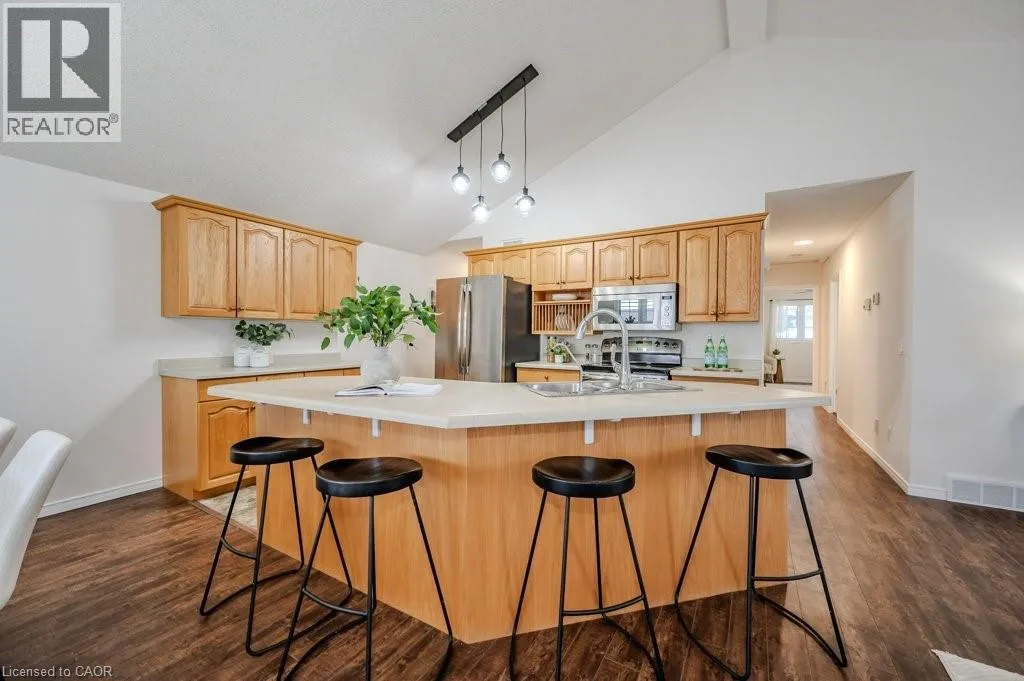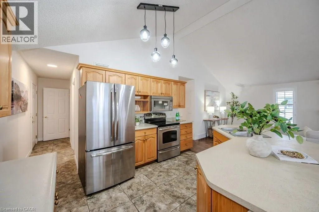 King St. N to east on Martin Grove Rd - left on Wesley Cresc, then immediate left again to 185 Wesley. (across King from the St Jacob's Market) OPEN HOUSE SATURDAY FEB 7 - 2:00pm - 4:00pm! Charming DETACHED BUNGALOW with SOARING ceiling and TANDEM GARAGE in QUIET ADULT LIFESTYLE community of Martin Grove Village. Open concept layout with double vaulted ceiling and lots of natural light. Central kitchen with island and great counter space. You'll love the separate workspace/beverage area with additional cupboards and countertop. Spacious living room with gas fireplace and lovely windows with California shutters. Large primary bedroom with amazing walk-in closet. Second bedroom with double closet is spacious as well--this room could also be a great office or craft room. Large main floor bathroom has 2 sinks, large vanity, separate shower and amazing premier walk-in tub for your convenience! Main floor laundry with lots of storage and laundry sink. And there's more! Basement has a 3 pc bathroom, plus a finished bonus room which could be nice office, hobby room, workout area, etc. The rest of the basement provides a huge amount of storage space or so many possibilities for your personal touch. You'll love relaxing or visiting with family and friends on your private back deck--it spans almost the width of the house, has a gas line for barbeque, and lovely open space behind--no back neighbours! Do you have a motorcycle or extra stuff? You'll love the extra long garage--can fit 2 cars tandem, or one large vehicle and lots of extra storage space/workshop, recreational vehicle storage, etc. Fantastic location--quiet area, minutes from the St. Jacob's Market, Highway 85, Conestoga Mall and all that Waterloo has to offer! Low overall cost of living and live in style! Come see this hidden gem! (id:27476)