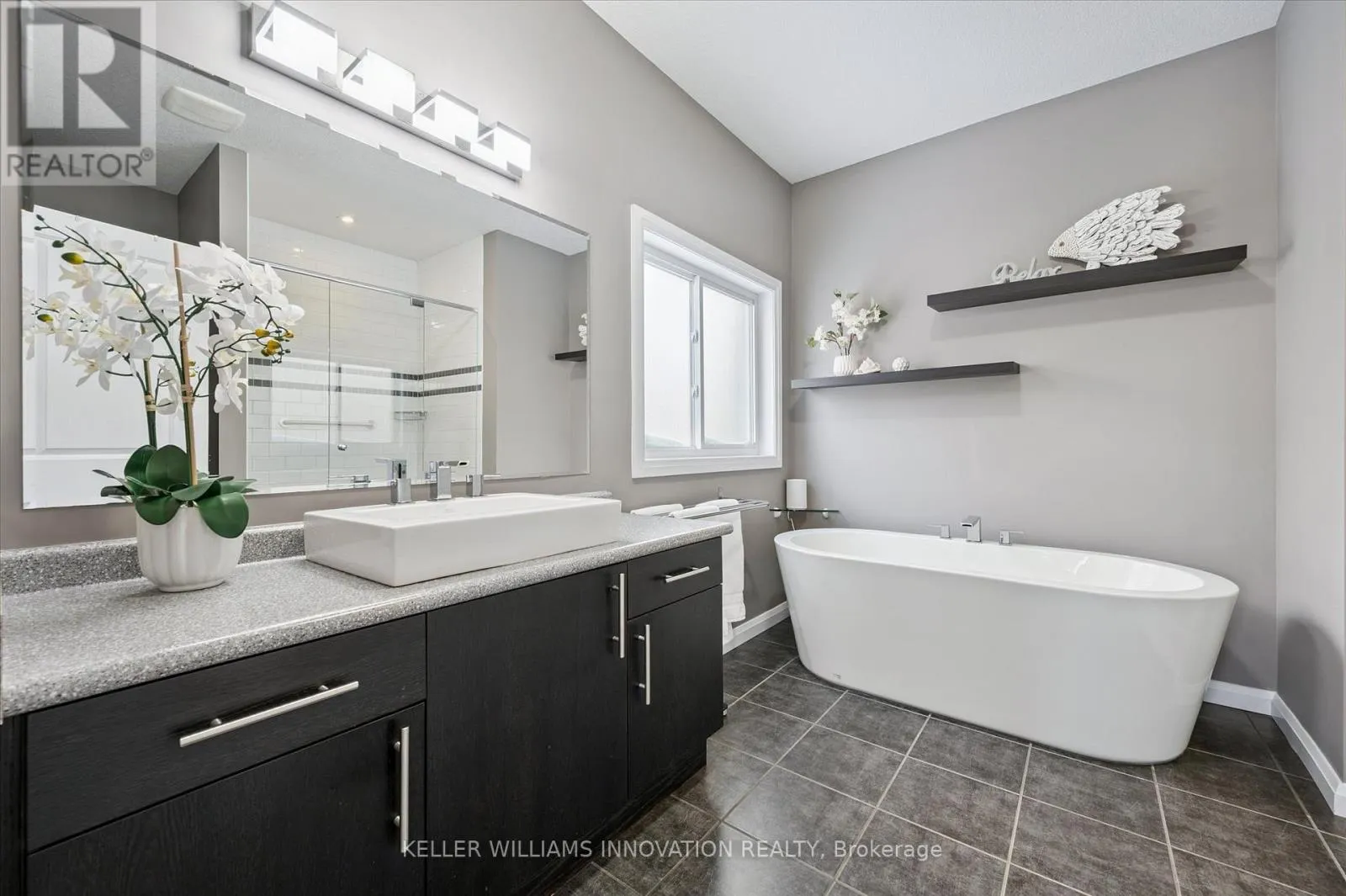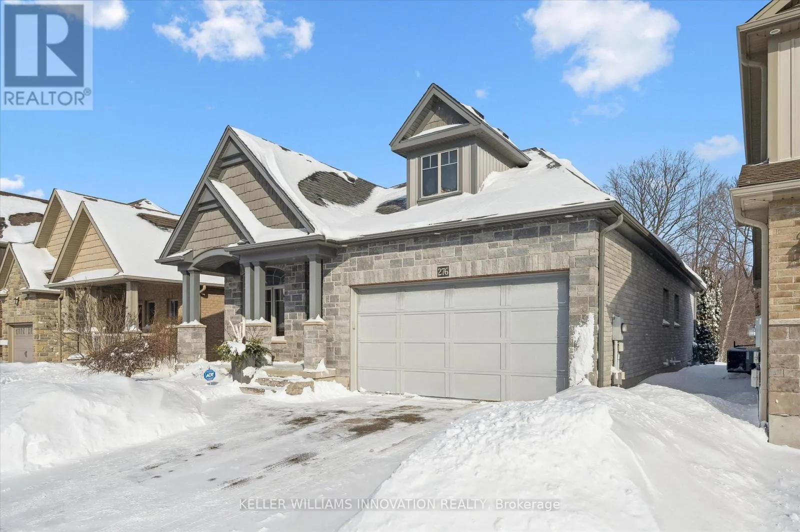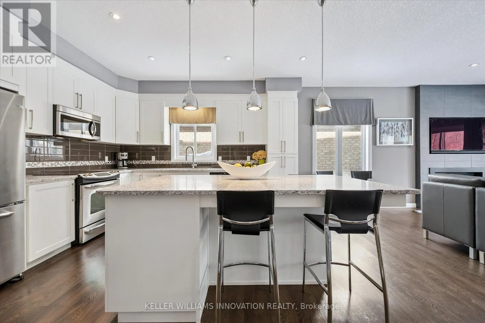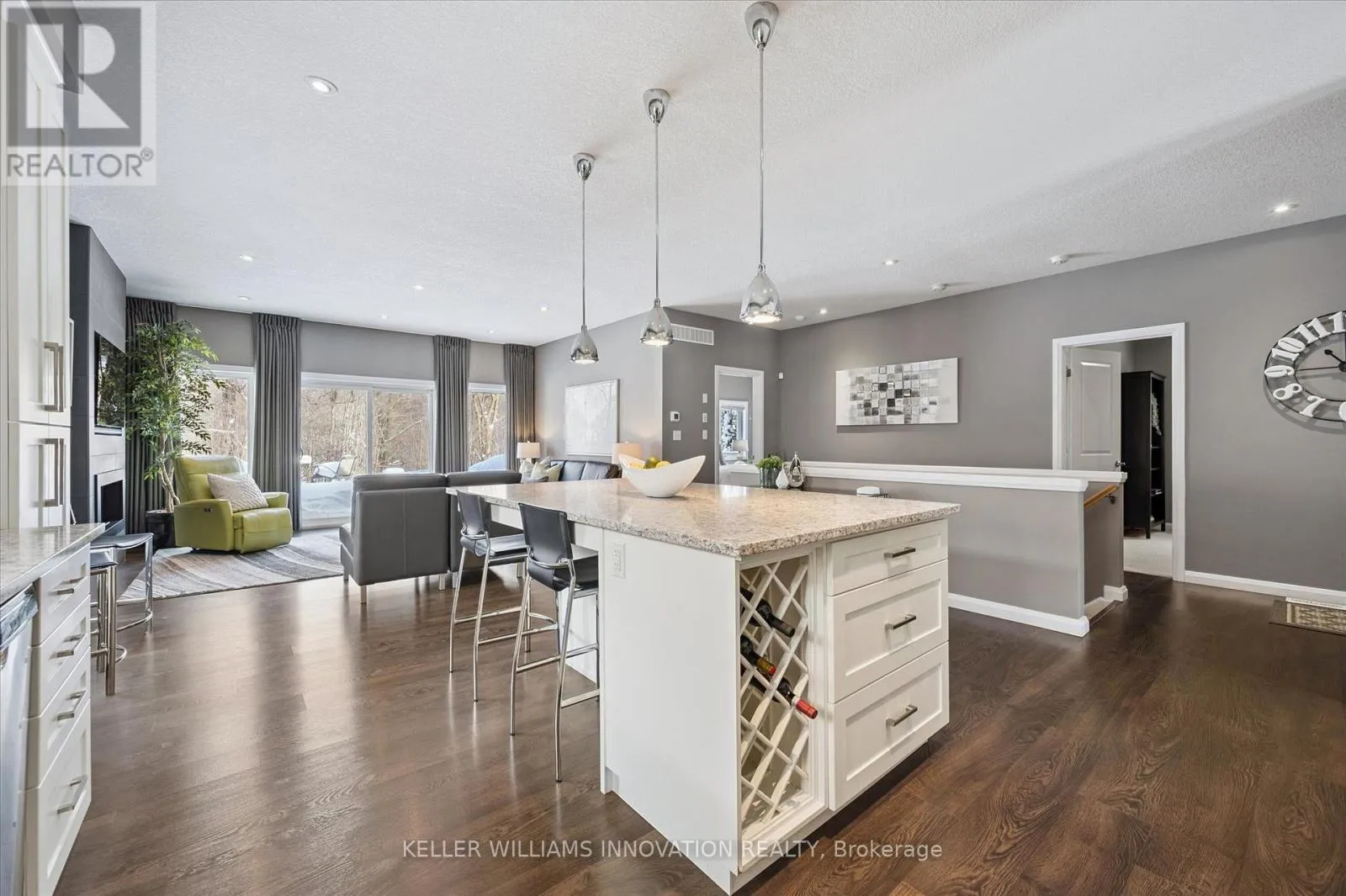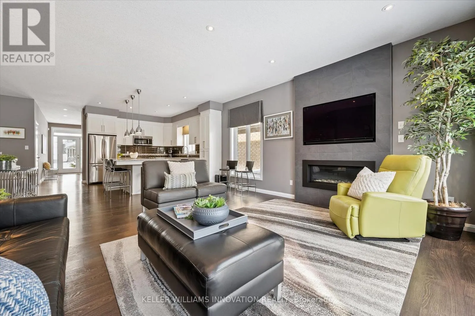 Ladyslipper Drive This beautiful stone and brick, 2+1 bedroom bungalow backs onto a protected forest and offers more than 1754 sq ft of total finished living space. Enter through the front foyer, with an adjacent formal dining room with an extra large window looking out onto the front porch. Don't need a formal dining room? This would be a perfect home office or living room. Head past the 2 piece powder room and into the modern open concept kitchen and great room. The kitchen's ample cupboard space, wine rack, oversized island and built-in appliances, makes this space the heart of the home. The great room features plenty of natural light and an impressive custom gas fireplace. The rear sliding doors lead out to the backyard, overlooking the private green garden and trees. The large 2 tiered back deck has a BBQ line and is perfect for those summer family gatherings! The main floor primary bedroom has 2 closets and a 4 piece ensuite with walk-in shower and a freestanding bathtub. There is one additional bedroom found on the main floor. The partially finished basement features a large bedroom and 4 piece bathroom. If you are looking for separate living quarters for additional family members, the unfinished half of this basement is the ideal opportunity to design exactly what works for your needs. Located in a great location, close to the playground at Mountain Holly Park and the Geo Time Trail. This home has easy access to The Boardwalk, Costco, HWY 8, Laurel Creek and more! (id:27476)