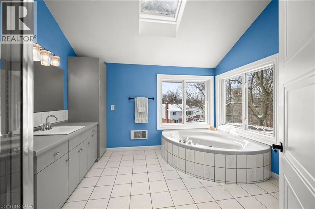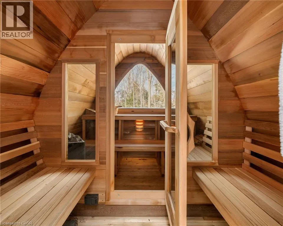 Welcome to 339 Glenridge Drive, a two-storey detached home on a rare 0.33-acre reverse pie lot backing onto a tranquil greenbelt in Waterloo East. With over 3,300 sq ft of finished living space, this 4-bedroom, 4-bathroom home offers space, privacy, and extensive upgrades. The main floor features generous rooms, a dedicated office, and a renovated 2-piece bath with heated floors. Interior improvements include upgraded doors, LED and smart lighting, smart thermostat, sound-proofing, and updated appliances. The finished walk-out basement offers in-law potential with a separate entrance, insulated gym/suite area, renovated laundry pre-plumbed for a kitchen, recreation room, 3-piece bath, and new flooring and ceilings. Outdoor living shines with replaced decks, spiral staircase, cedar sauna and tubs, landscaped yard, rainwater catchment, and fruit trees. Additional highlights: attached double garage, double-wide driveway, central air, gas heat, and most windows/doors replaced. Close to parks, trails, schools, transit, shopping, highways and a well-regarded French-Immersion elementary school with on site daycare! (id:27476)