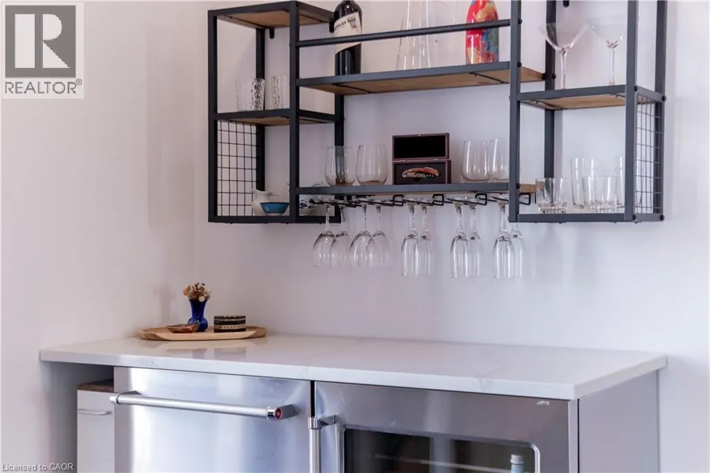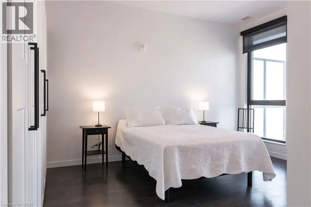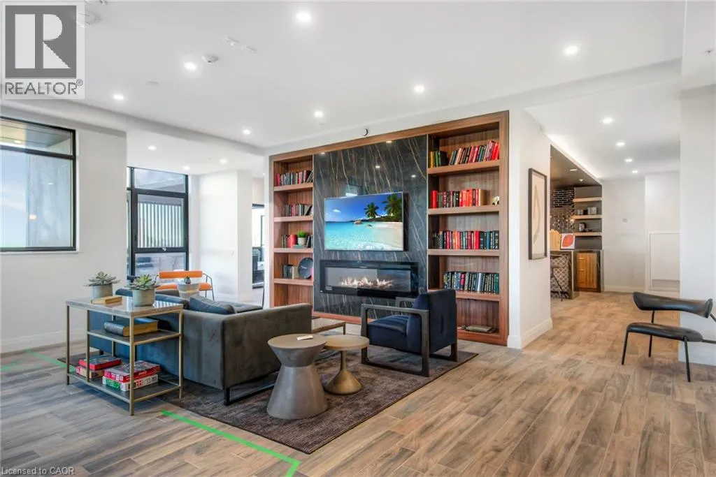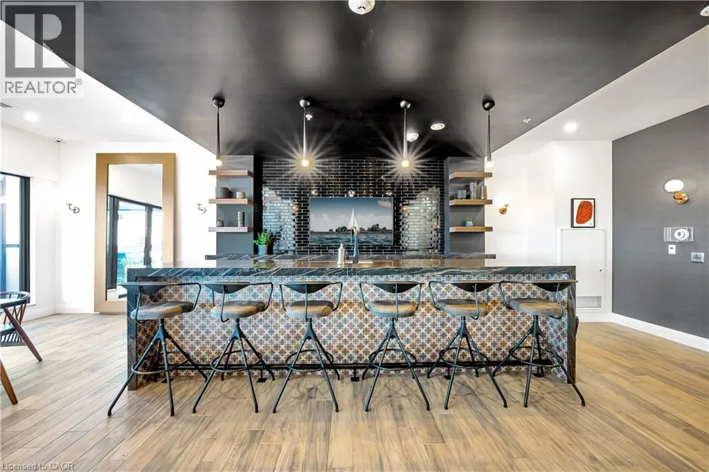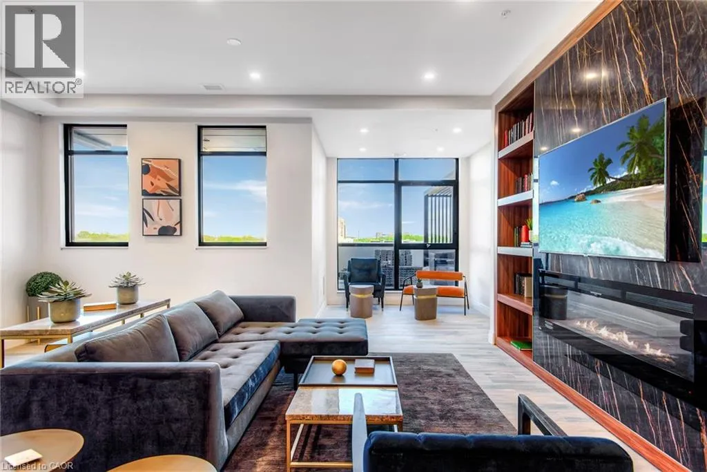 King Street S. between Allen Street W. and Caroline Street One of Uptown Waterloo's most prestigious condominium residences, Circa 1877 offers refined urban living at its best. A perfect blend of thoughtfully appointed luxurious interior living space with the convenience of 2 dedicated underground parking spaces, suite 1513 at 181 King St Waterloo checks all of the boxes. Immediately upon entry, the soaring 10 foot ceilings let you know this is not your typical 2 bedroom 2 bathroom condo. Offering 1250 square feet of interior living space, plus 2 private balconies, the north western panoramic views of the cityscape and nightly sunsets are impressive. Designed for both style and functionality, the expansive open-concept layout is filled with natural light and ideal for sophisticated entertaining. The chef-inspired kitchen features European built in appliances, quartz counters, and large kitchen island with ample seating. Flowing seamlessly into the living room and additional dining area, you are surrounded by floor to ceiling windows and premium carpet free flooring throughout the suite. Both bright and spacious bedrooms offer built-in wardrobes, commercial-grade automatic silver-screen roller sheers (throughout condo), offering additional blackout options in the bedrooms, and the primary bedroom features a 3 piece ensuite bath. Bonuses include a dedicated den space, bar area with KitchenAid beverage cooler/freezer plus wine fridge, WIFI thermostats and lighting controls for your convenience, insuite laundry, and private storage locker. Circa 1877 features unparalleled amenities including outdoor saltwater pool with cabanas and bbq, fitness centre, yoga space, co working space, and social lounge. You are able to enjoy one of Waterlooâs newest fine dining restaurants at your doorstep Lala Social House. Enjoy being steps from grocery stores including Vincenzoâs, upscale restaurants and bakeries, public transportation including the LRT, Waterloo Park, highway access, and Waterloo Town Square. (id:27476)